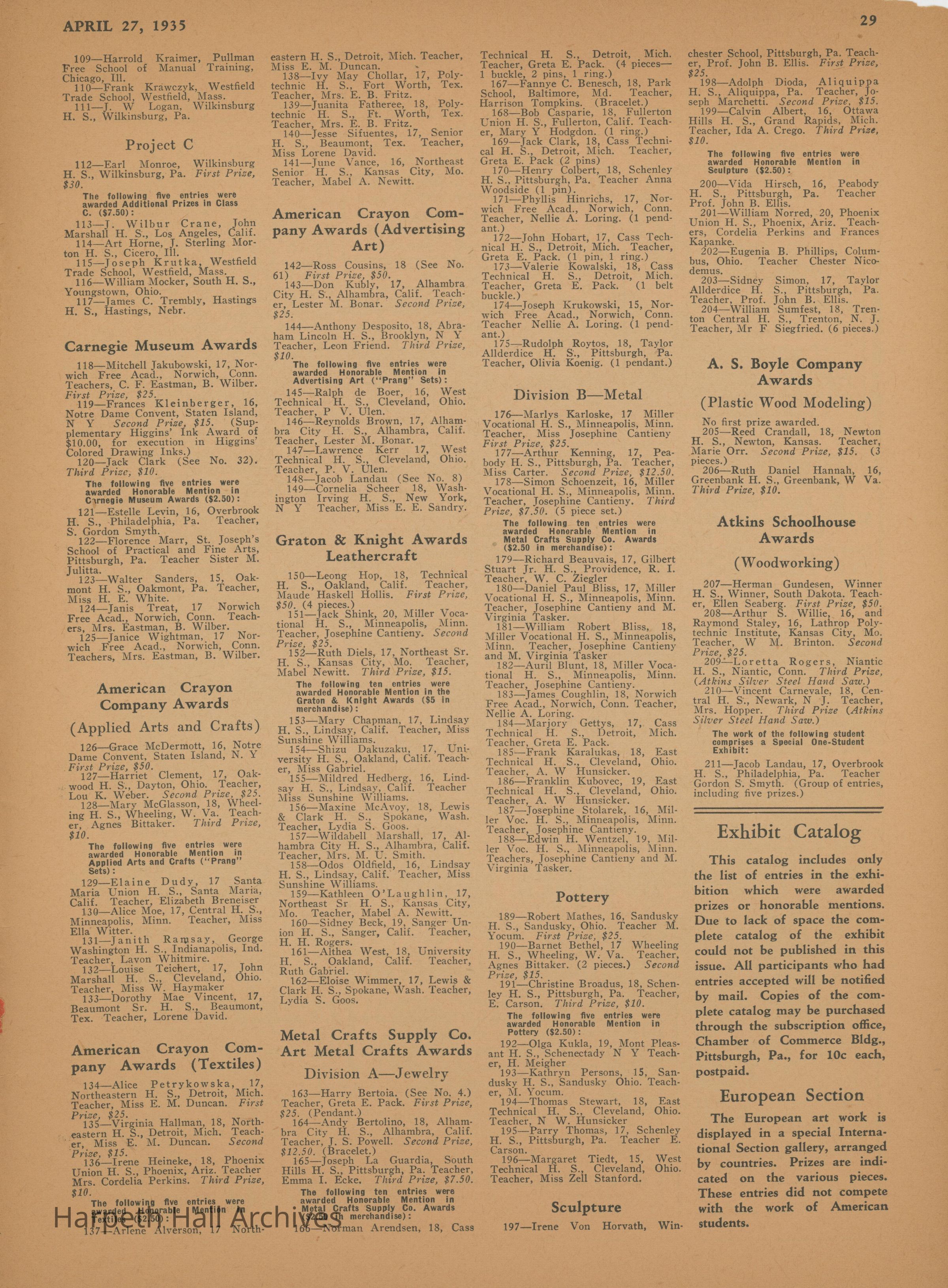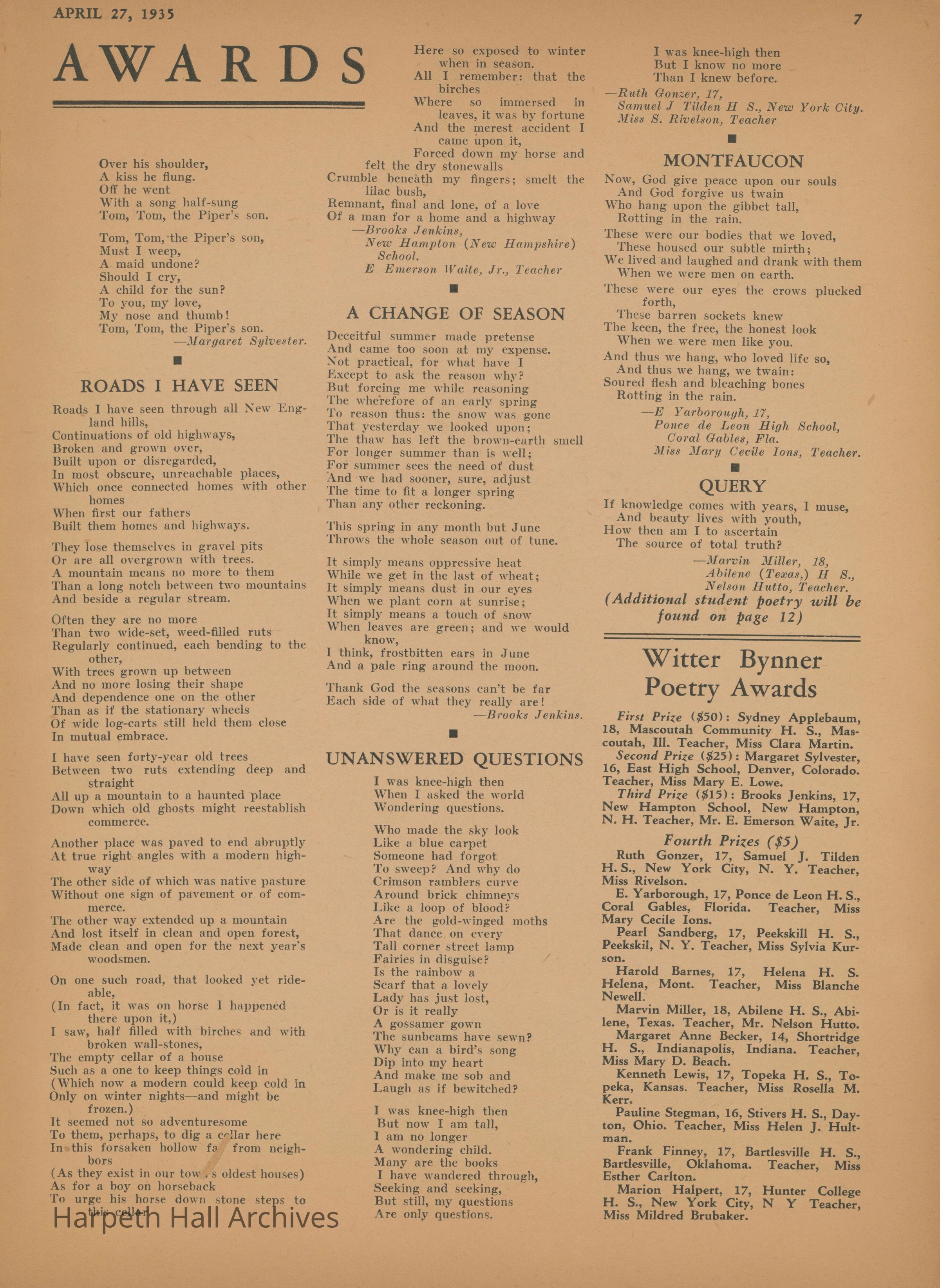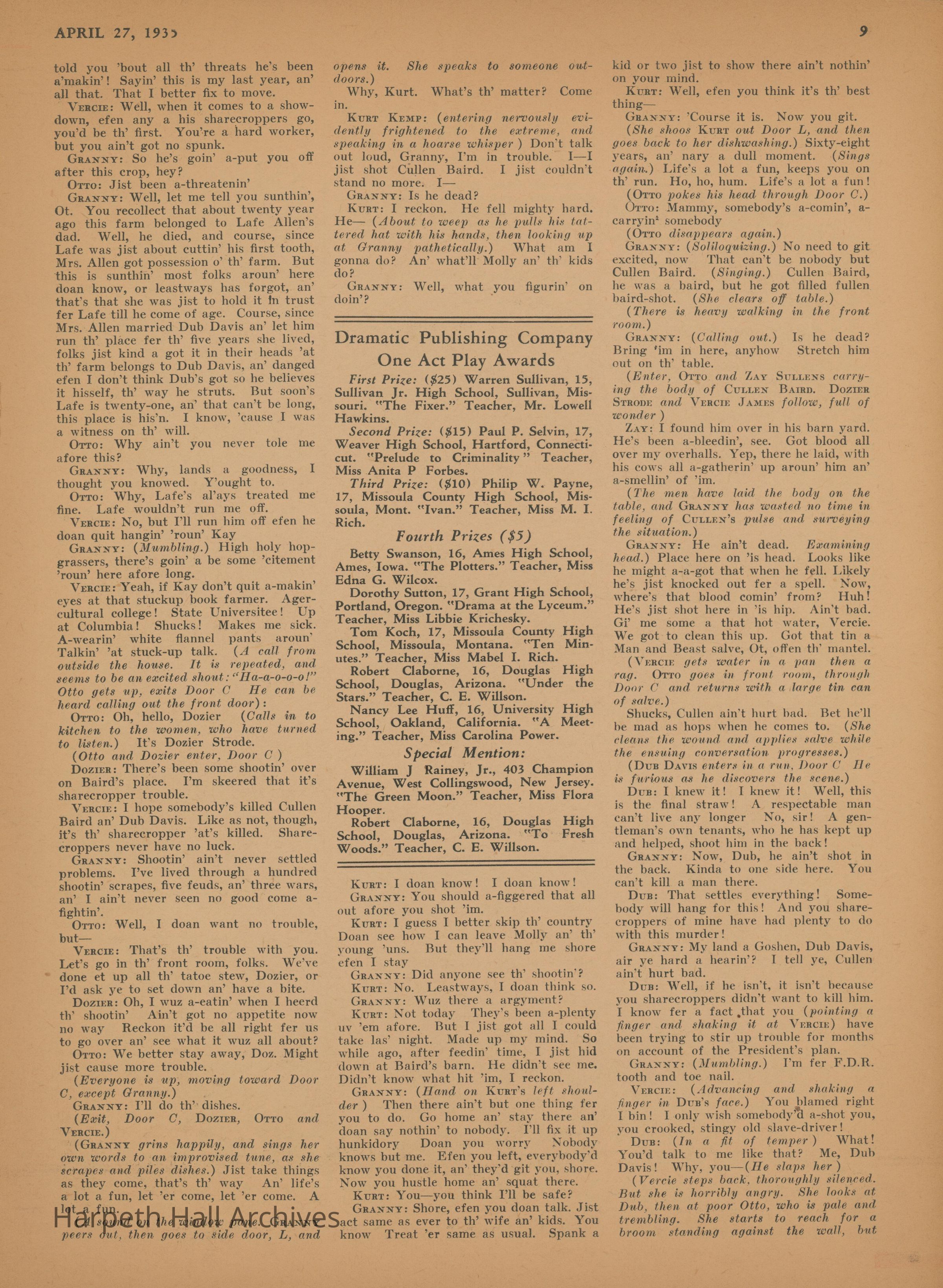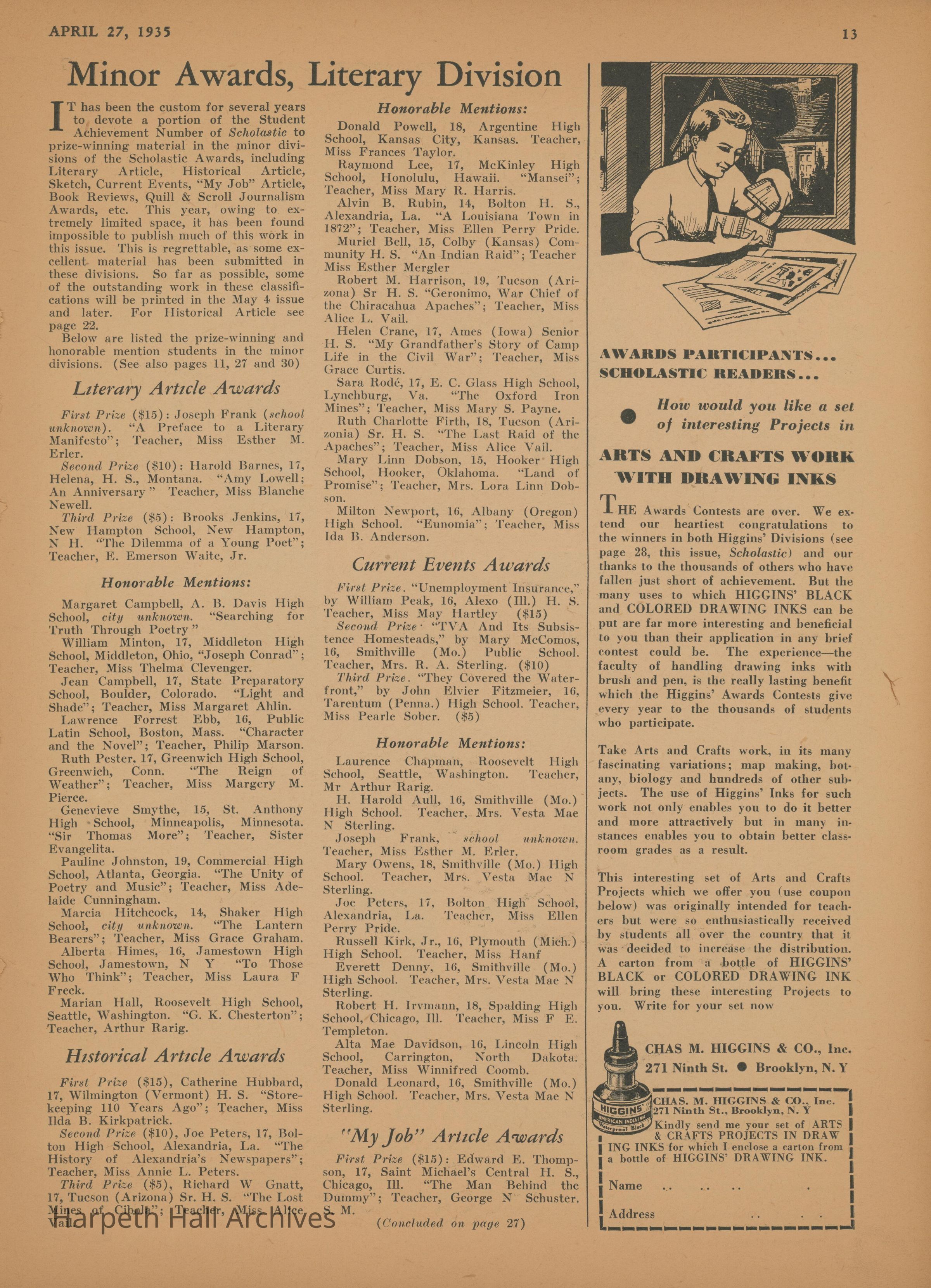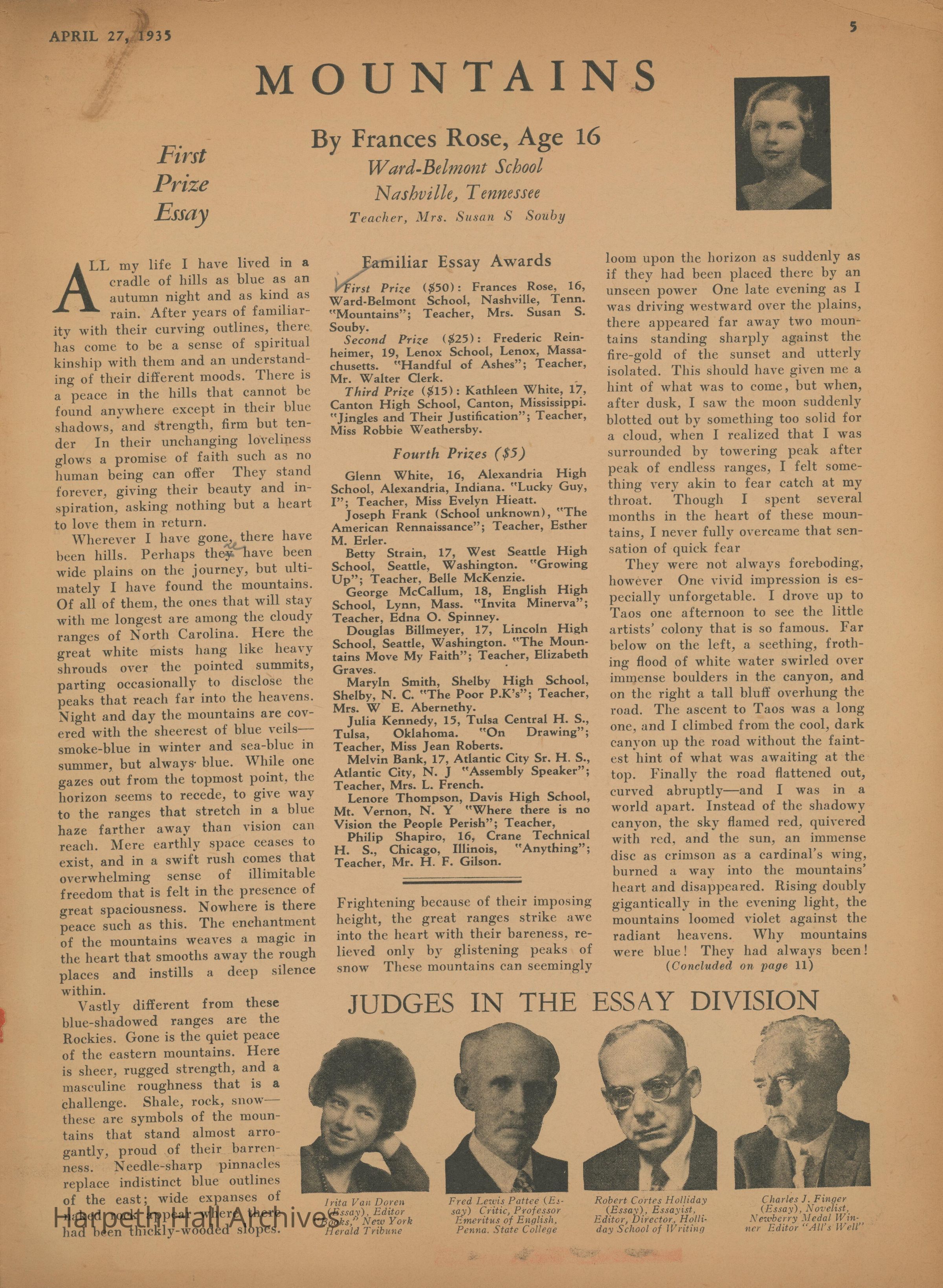 Ward-Belmont, Essays, 1935, Awards, Publications