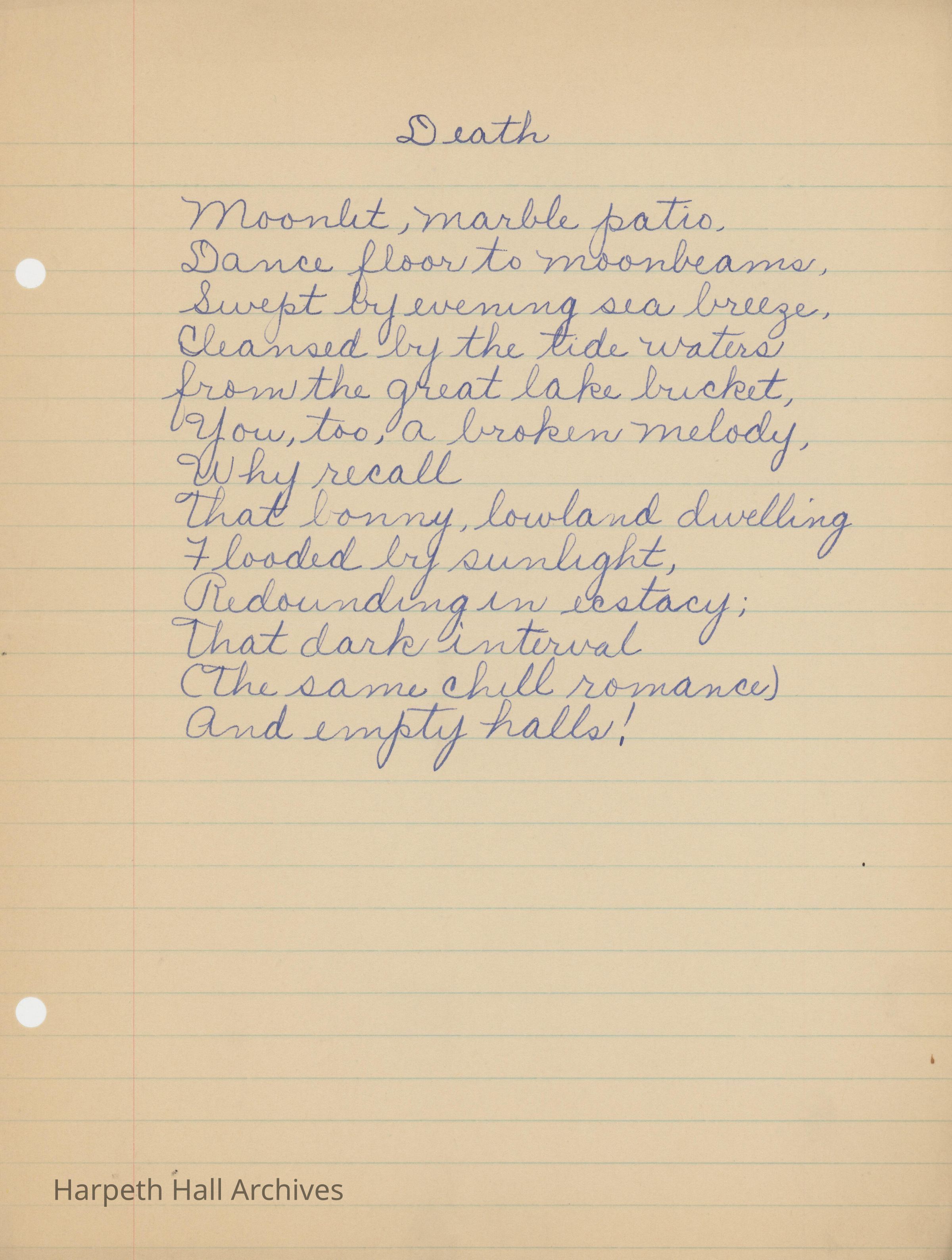 Two poems written by a Ward-Belmont student. The poems are titled, "Compensation" and "Death."