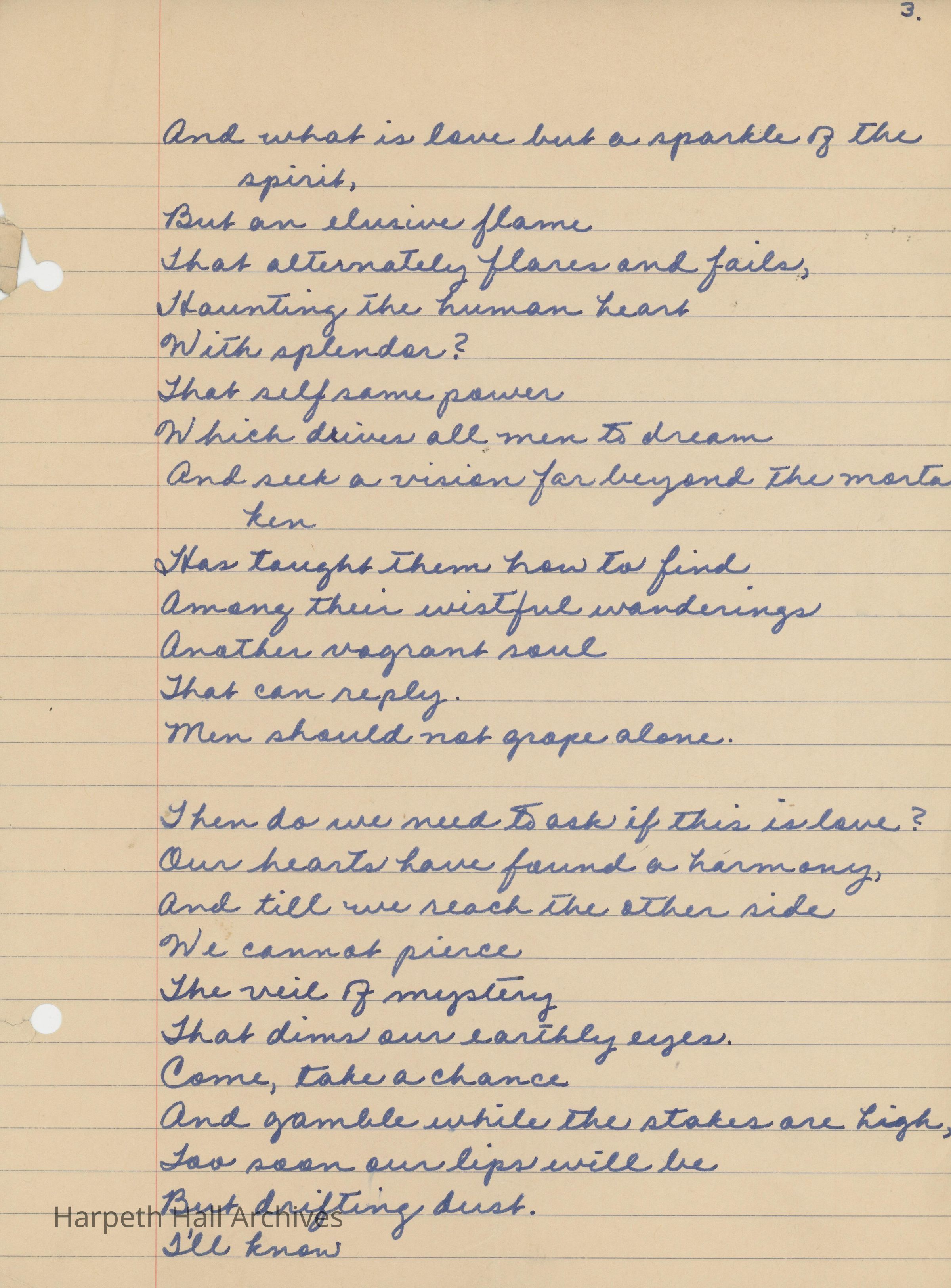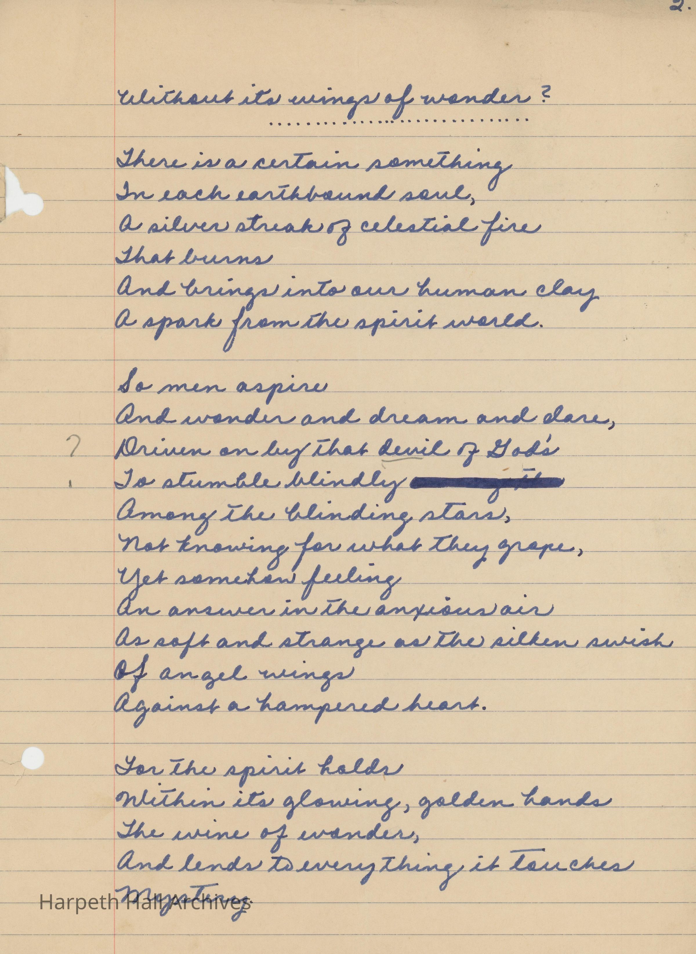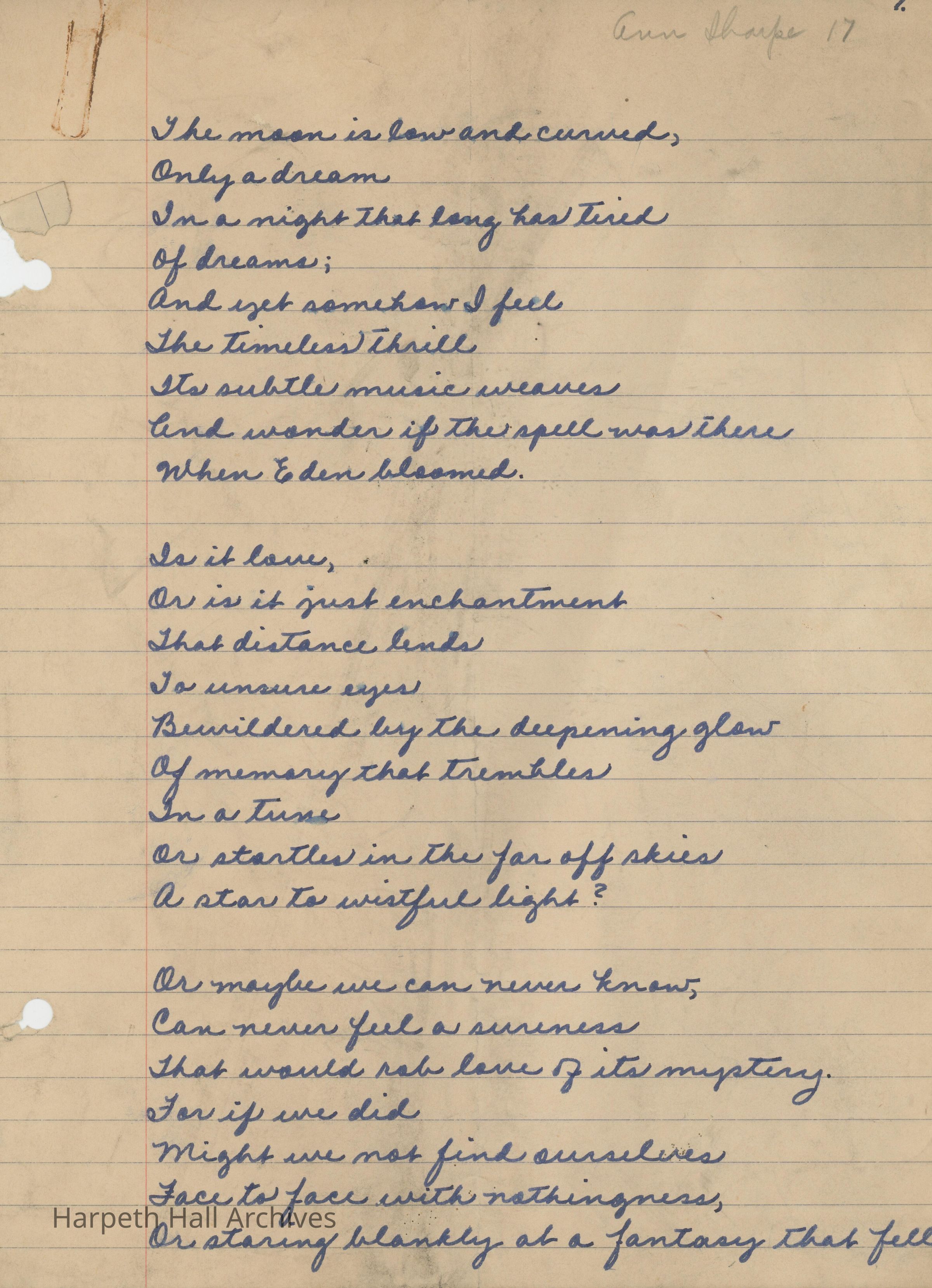 Poetry written by Ward-Belmont student, Ann Sharpe (1945).