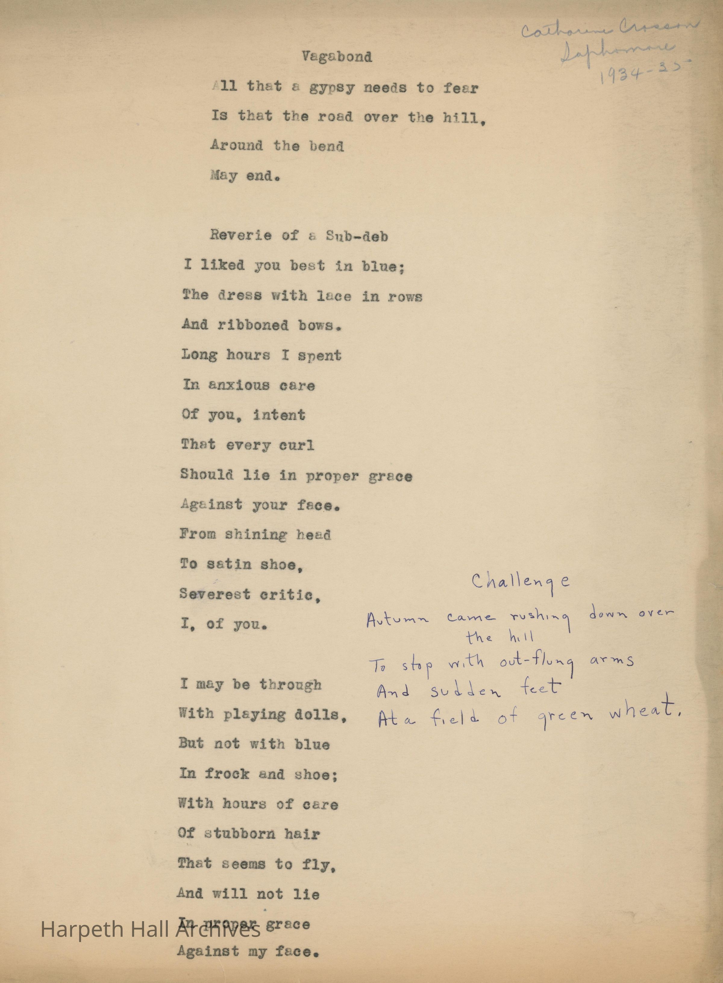 Poetry written by Ward-Belmont sophomore Catherine Crossan during the 1934-1935 school year.Collection