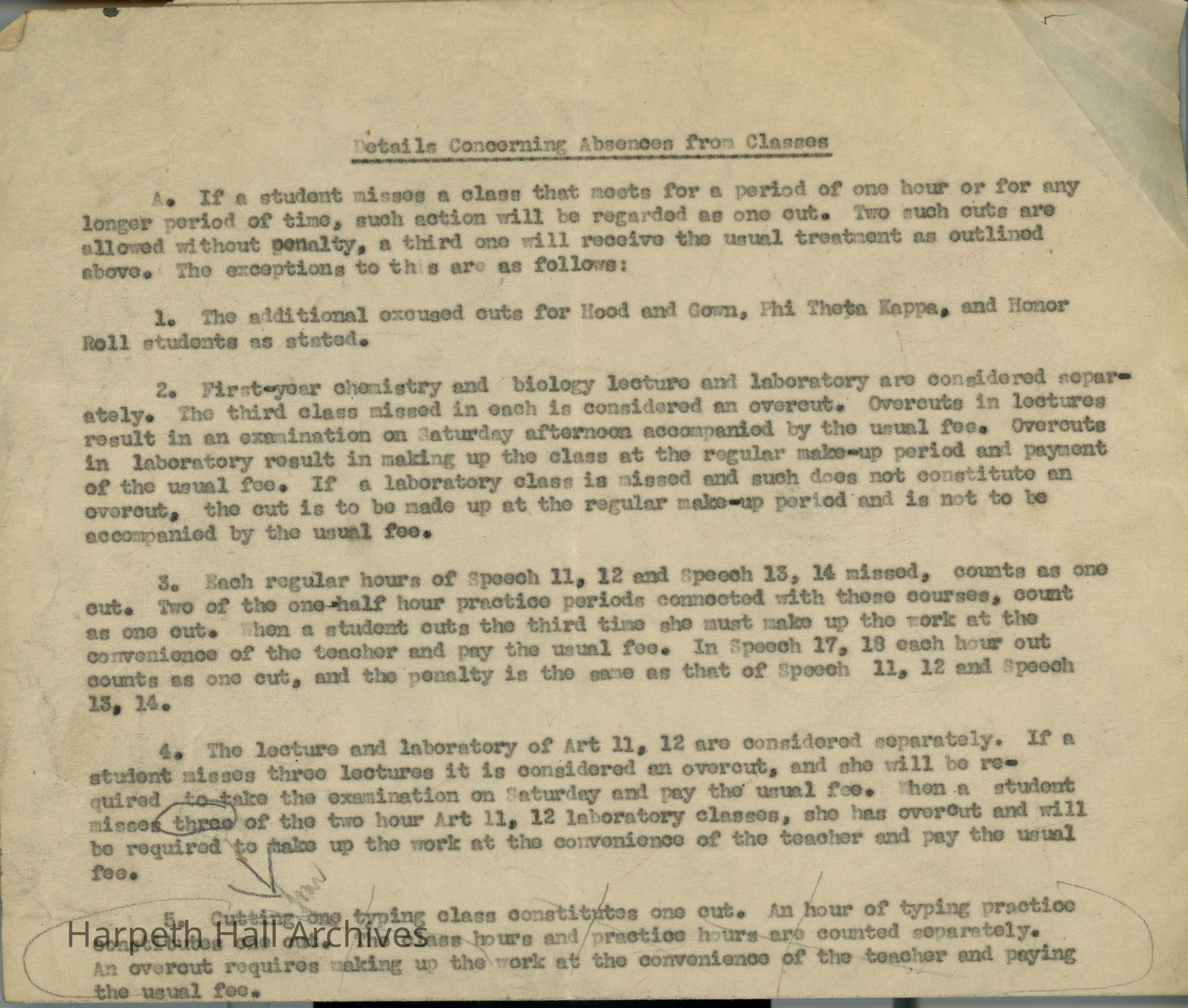 Details Concerning Absences from Classes
