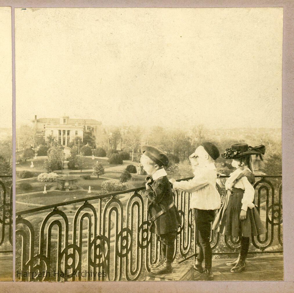Belmont College for Young Women, circa 1910. Young children on balcony looking down on campus.