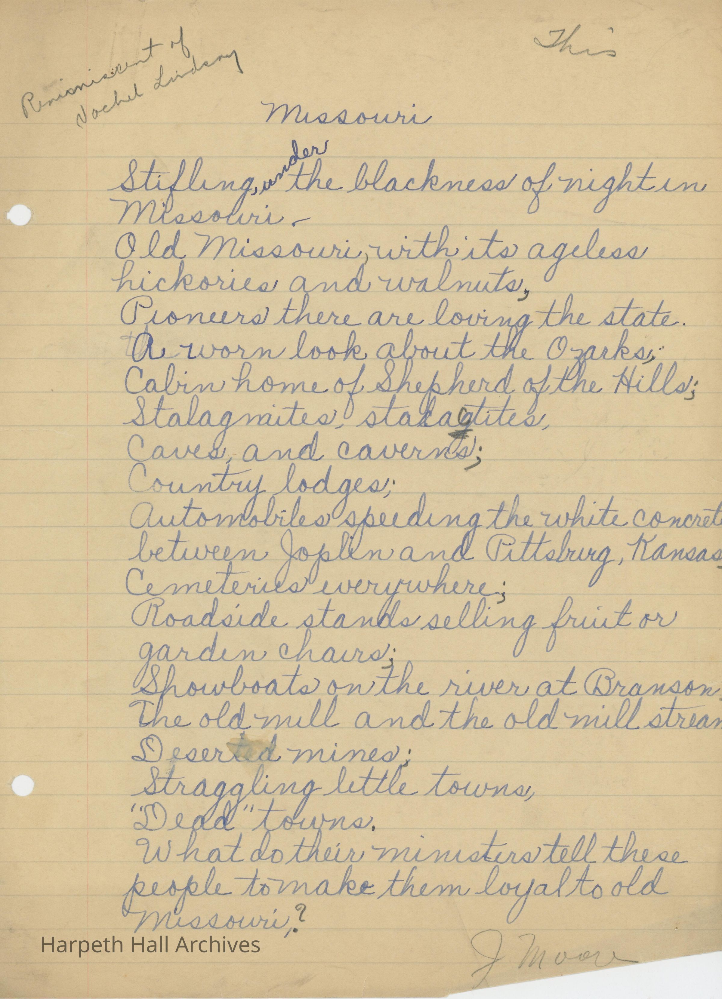 A poem entitled, "Missouri" written by Ward-Belmont student Jane Moore.