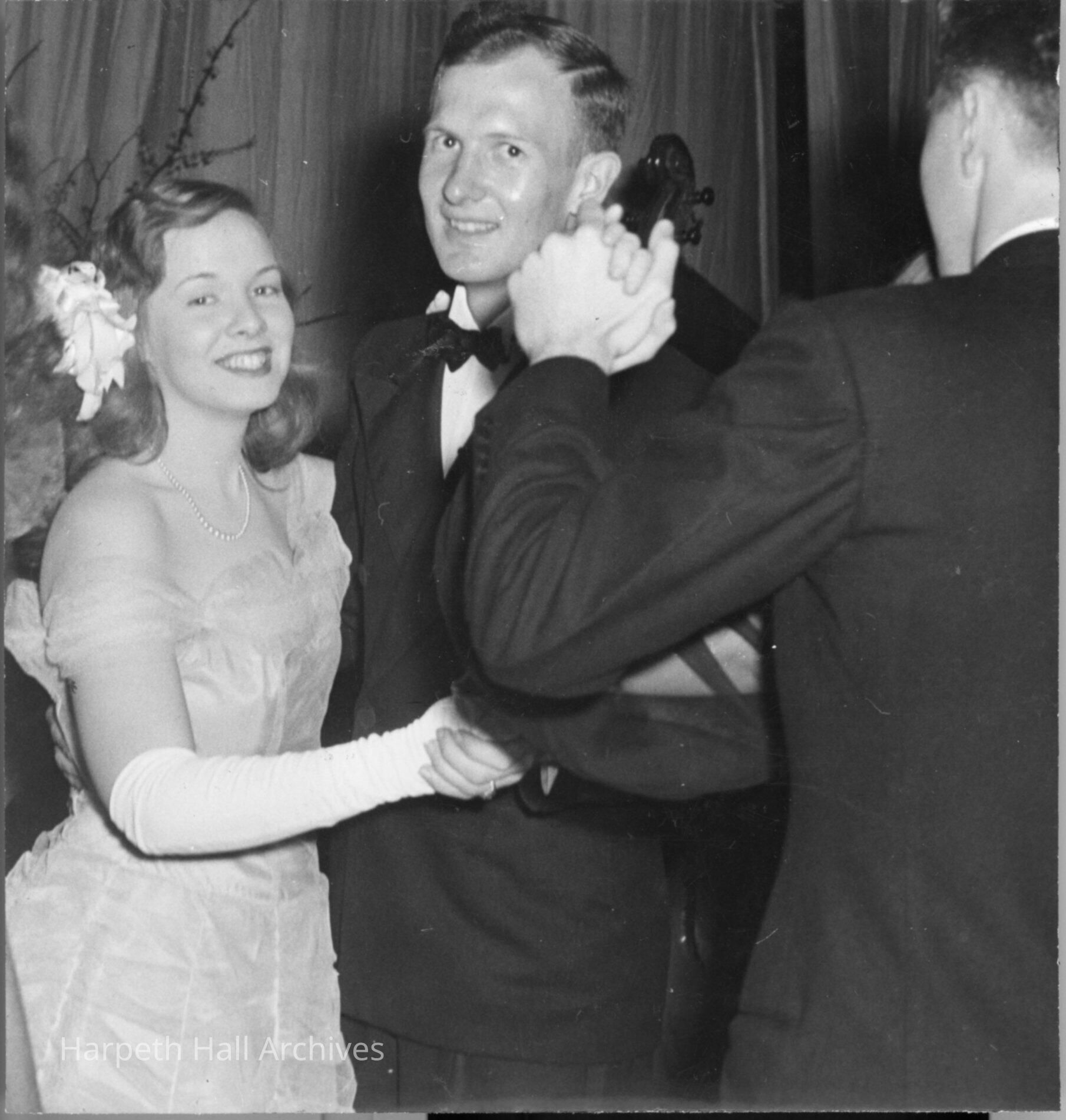 Couple at dance party. Picture appears in 1946 Milestones under caption, "Formal party fun."