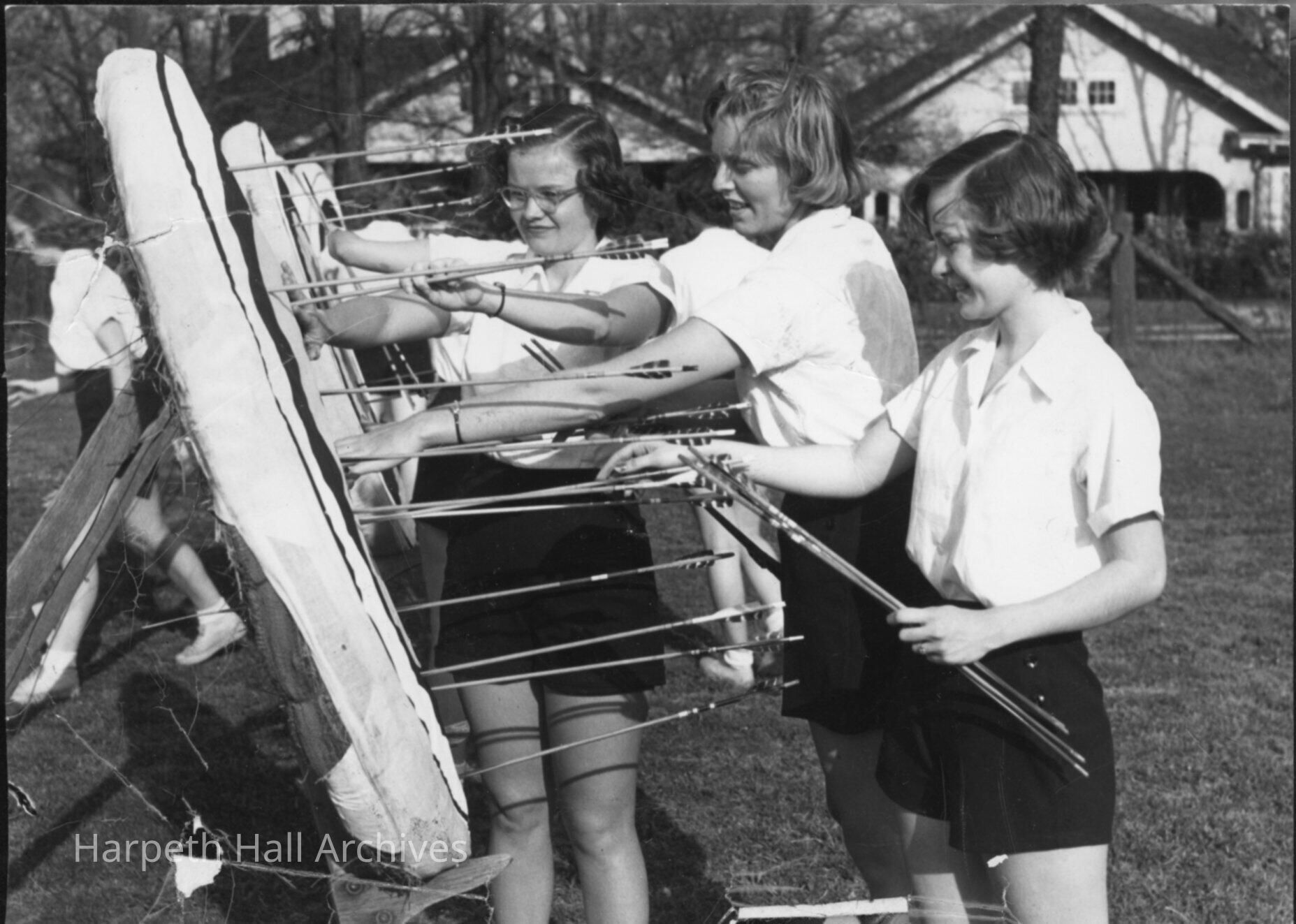 Archery practice. Picture torn and damaged from past rubber cement on back.