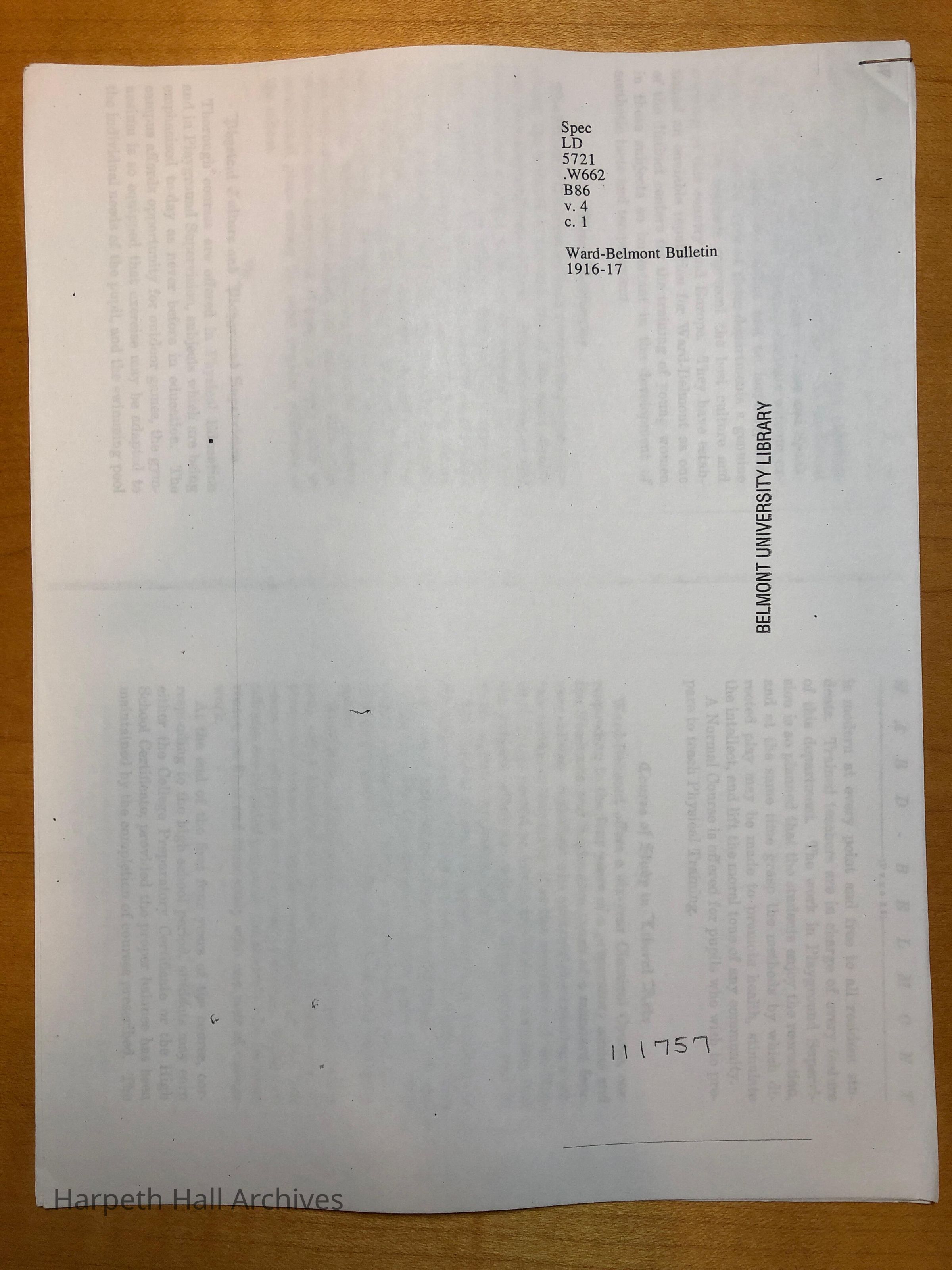 Ward-Belmont Bulletin for 1916-1917. Details class curriculums, student info, etc.