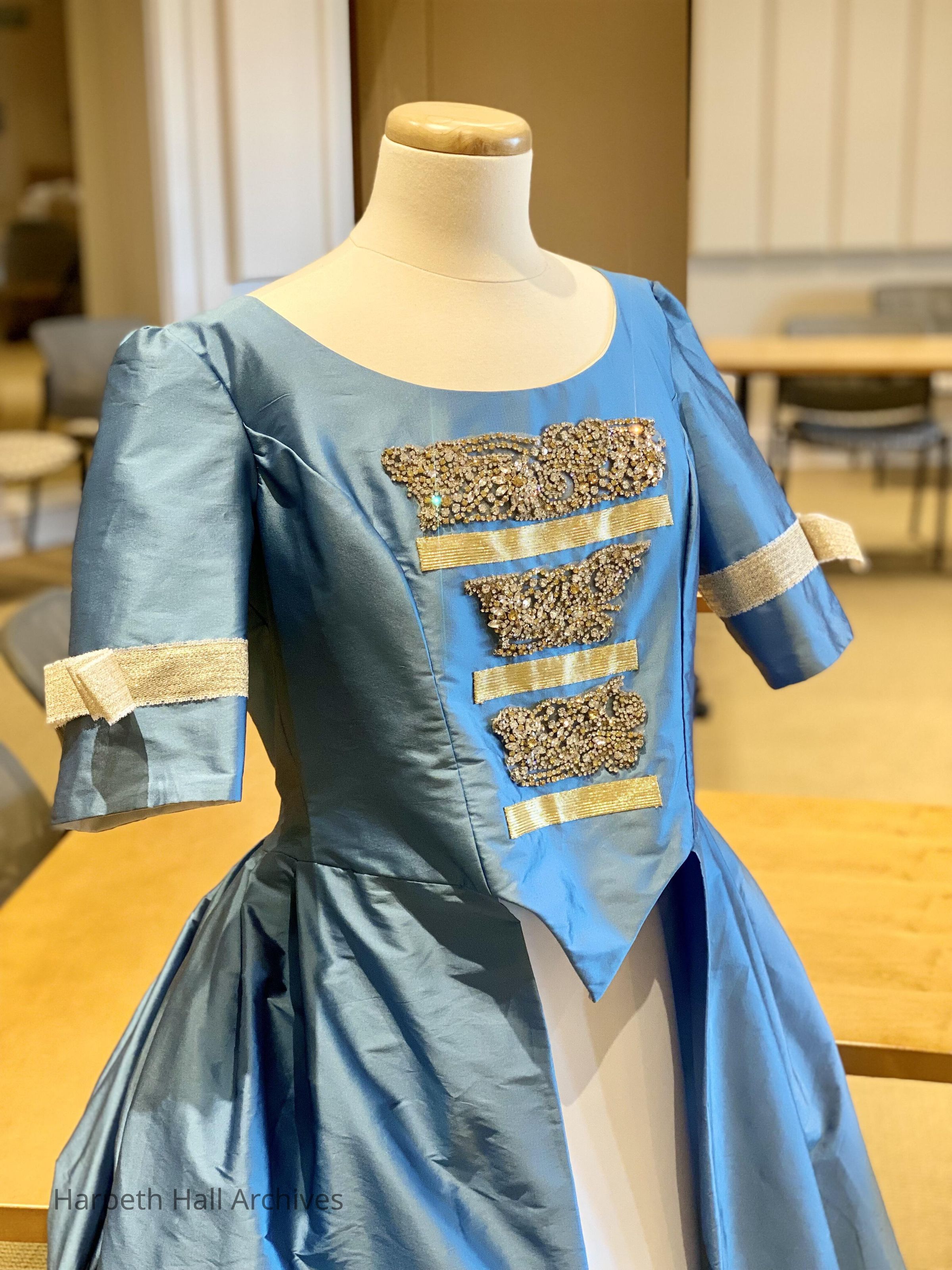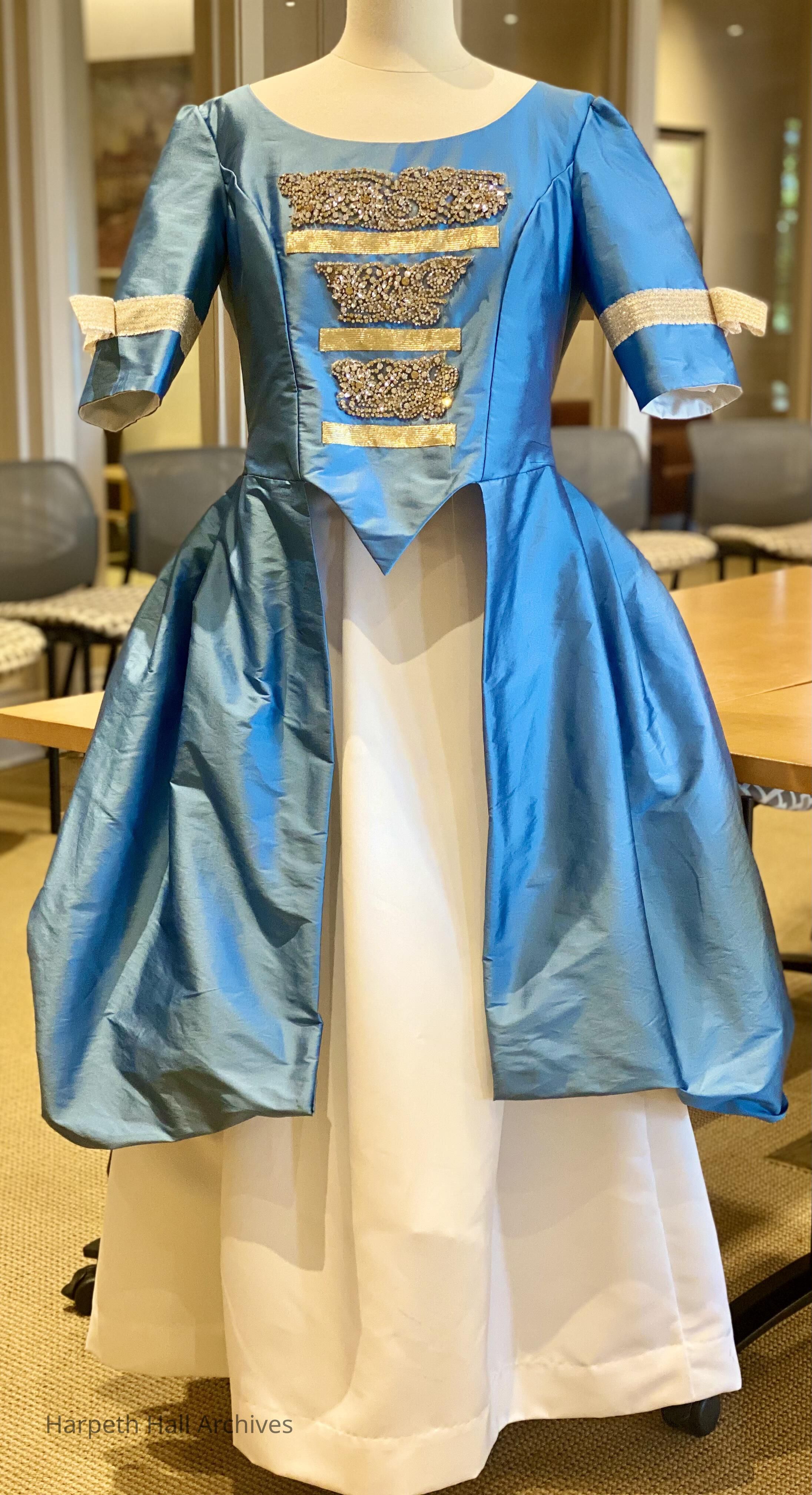A formal dress worn by students playing the role of Martha Washington in the George Washington Day Celebration. Younger students played either a solider, a sailor, or a lady or gentleman; two older students were chosen to play George and Martha Washington.Context
