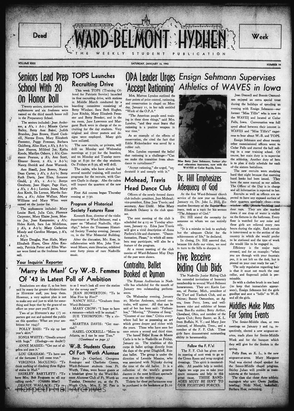 The link to see the online digitized copy of all of the Ward Belmont newspapers from 1943 is at the bottom of the page under "Web Links"!