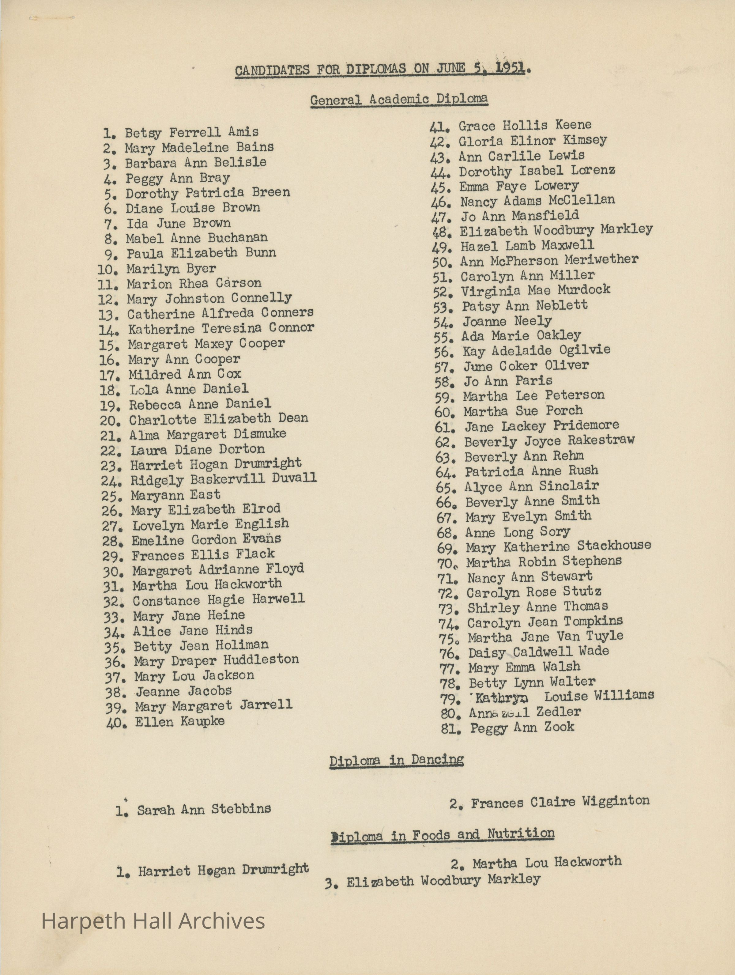 Candidates for Diplomas and Certificates, June 1951Entry/Object ID