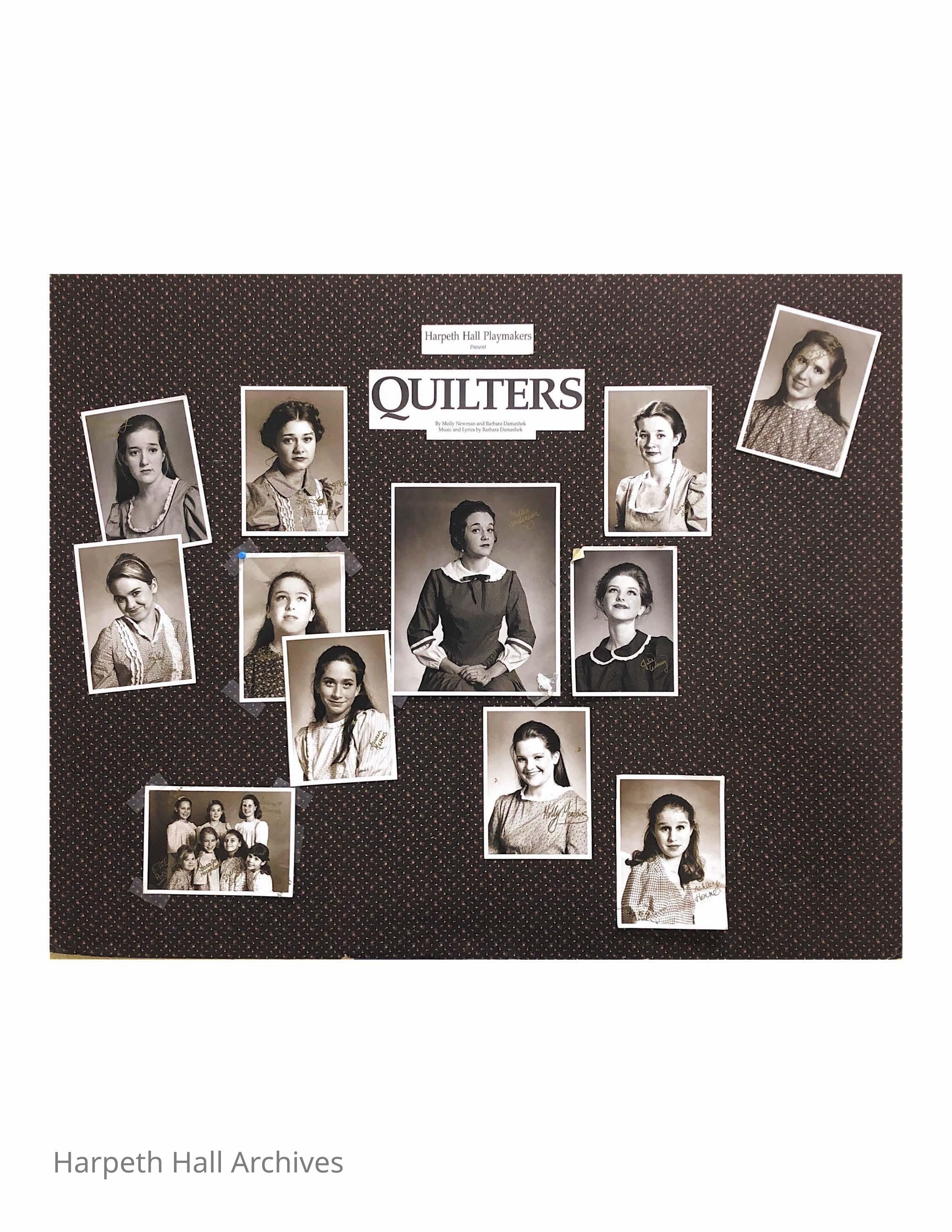 The cast board for the showing of Quilters put on by the Harpeth Hall Playmakers.