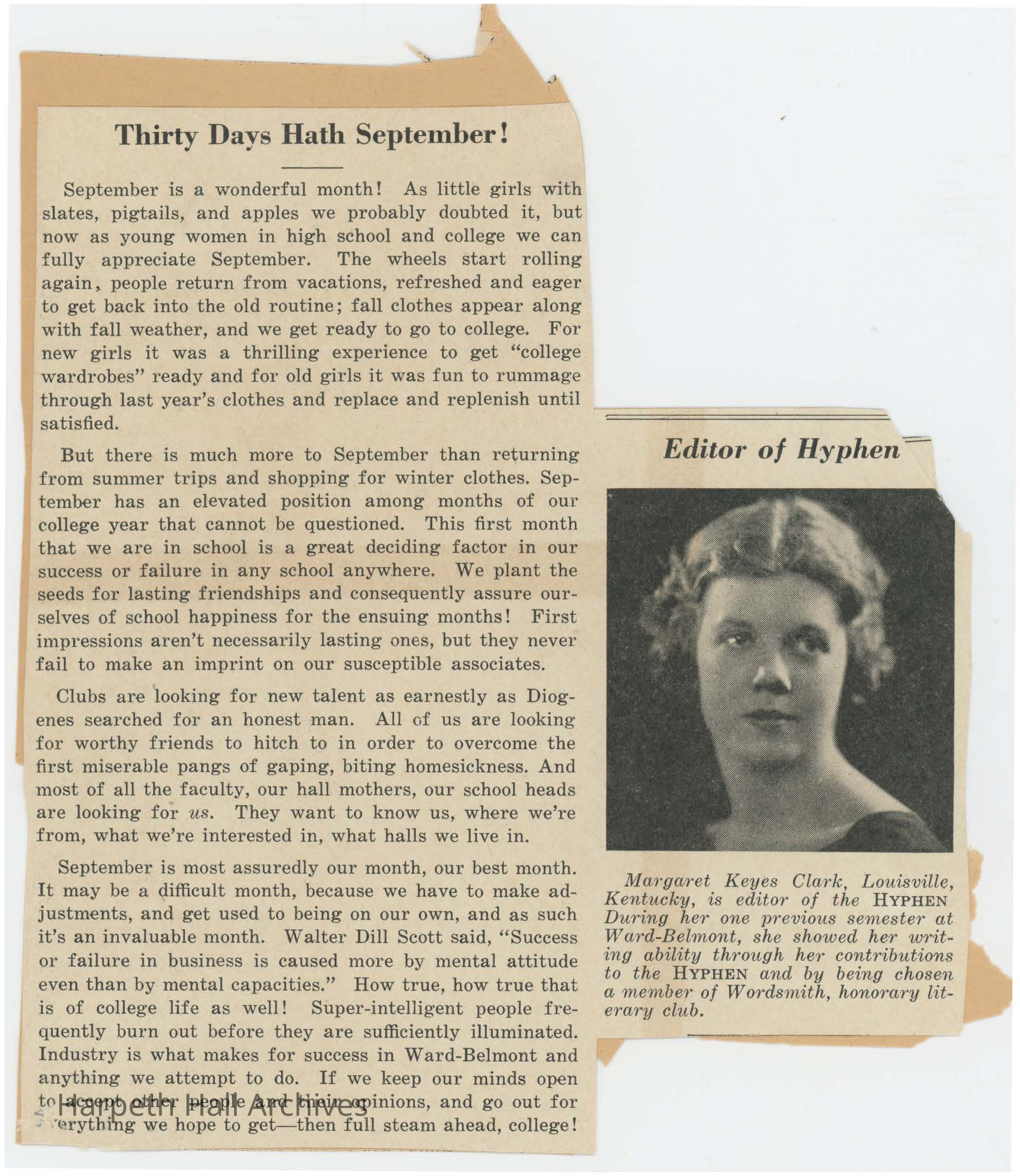 Newspaper clipping by and about Margaret Keyes Clark WB '37Relationships