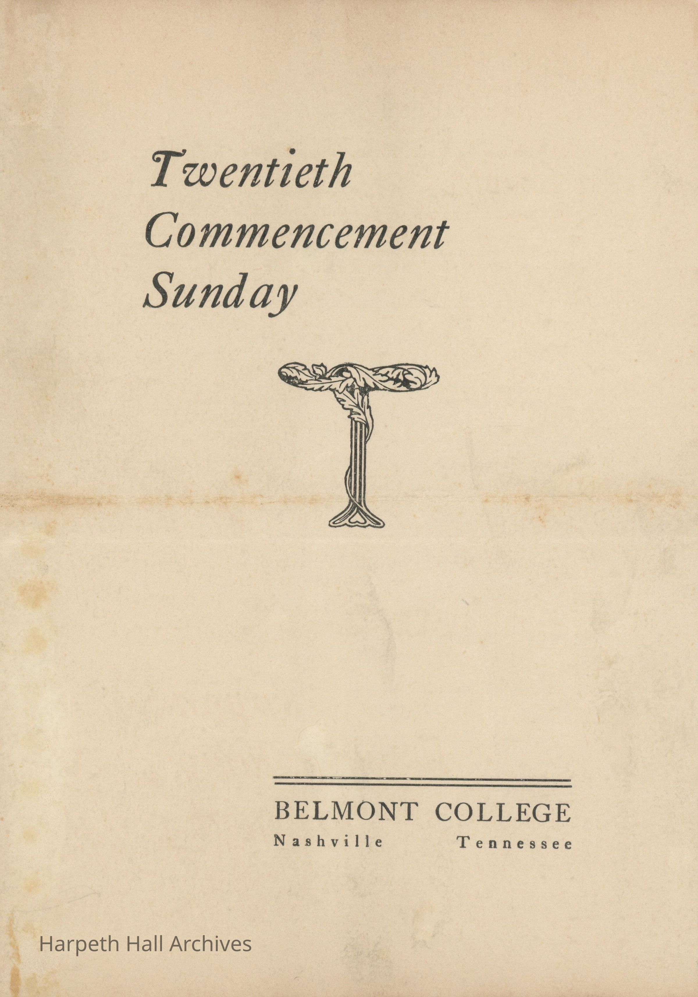 Belmont College, Sunday Commencement, Baccalaureate Sermon, Vesper Services, 1910, Belmont, Commencement, Worship, Program, Schedule, Commencement Exercises, May 22