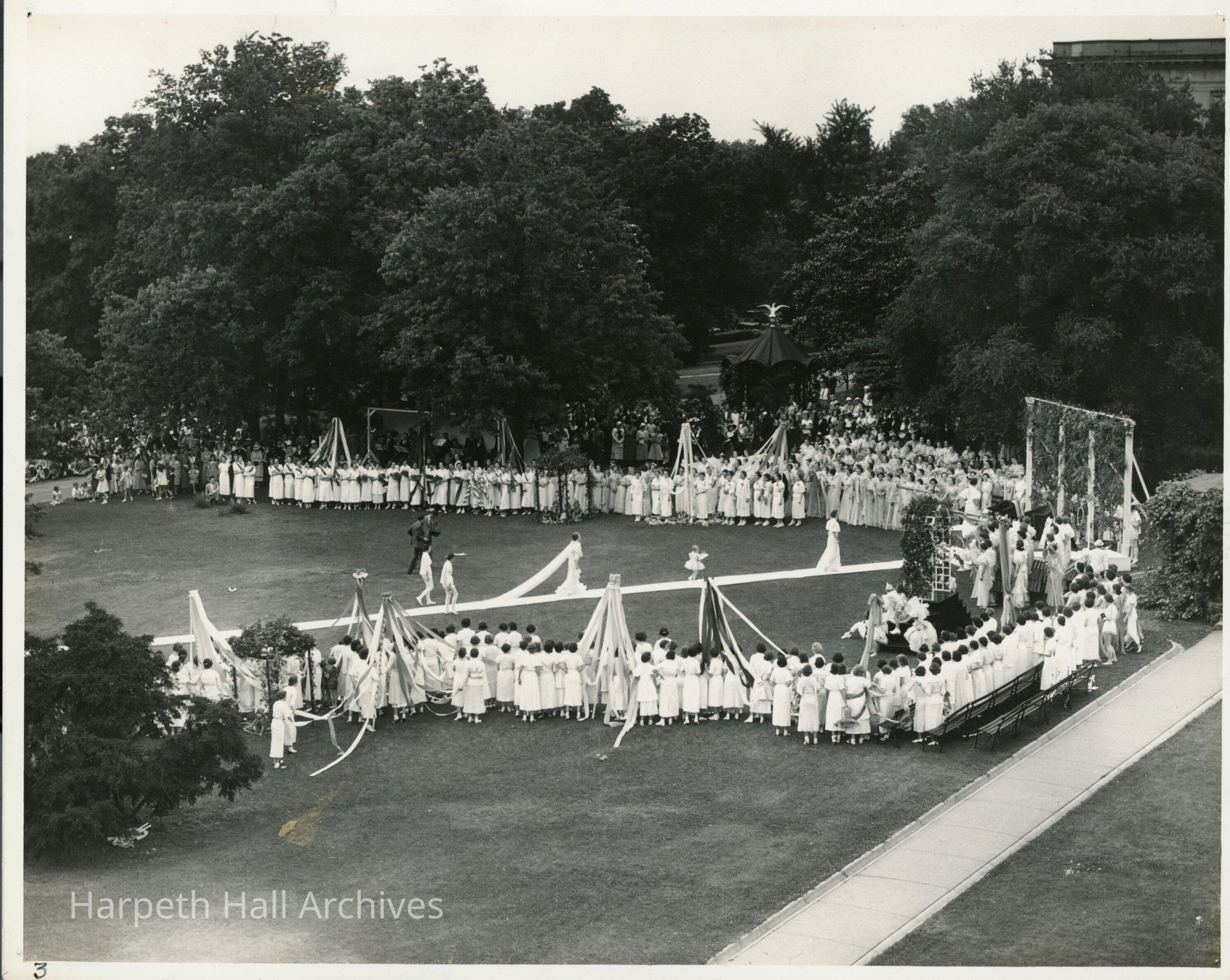 Procession, probably of May Queen at Ward-Belmont's May Day. Photo probably taken from roof.