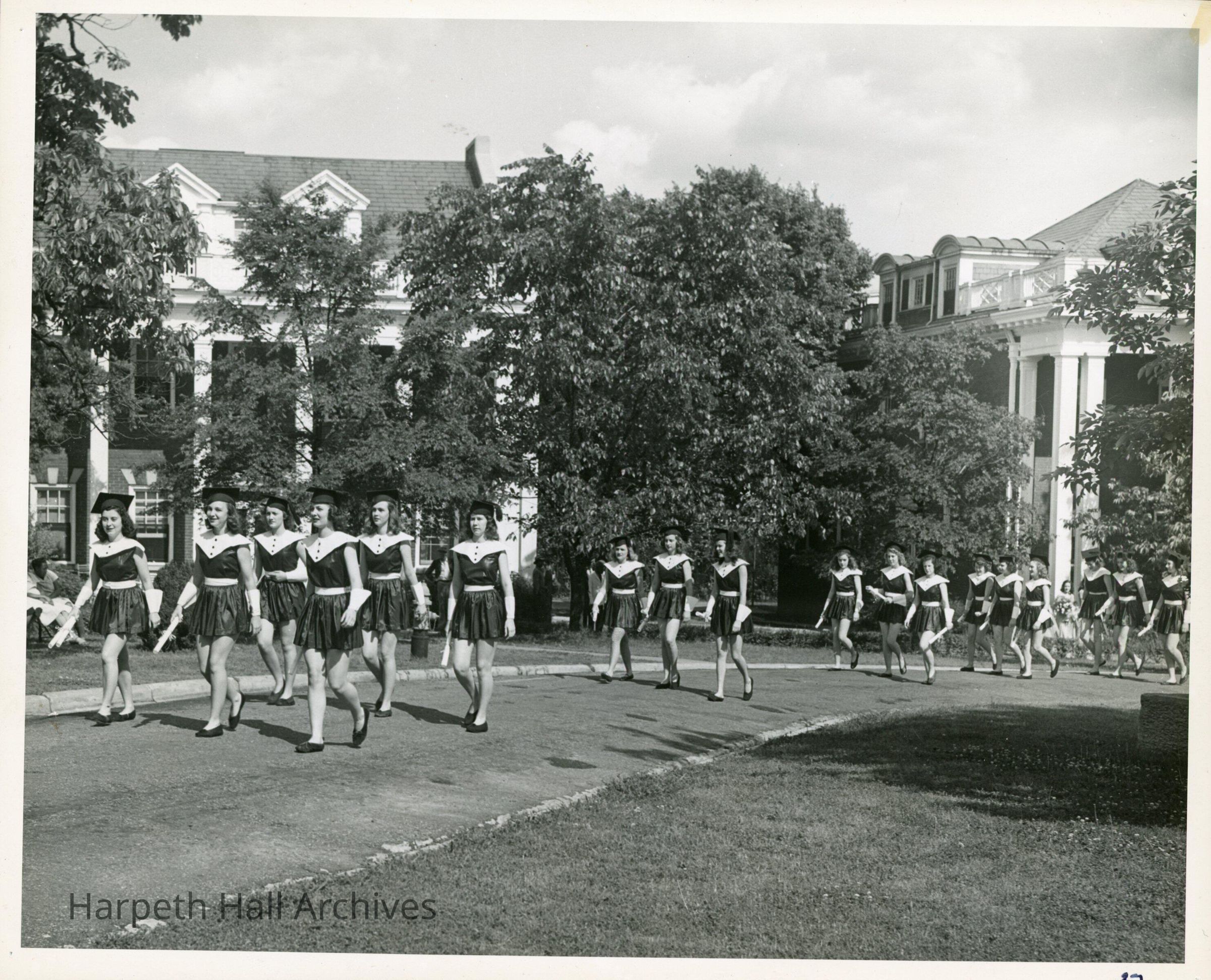 Young women in costume processing on Ward-Belmont campus, most likely May Day.