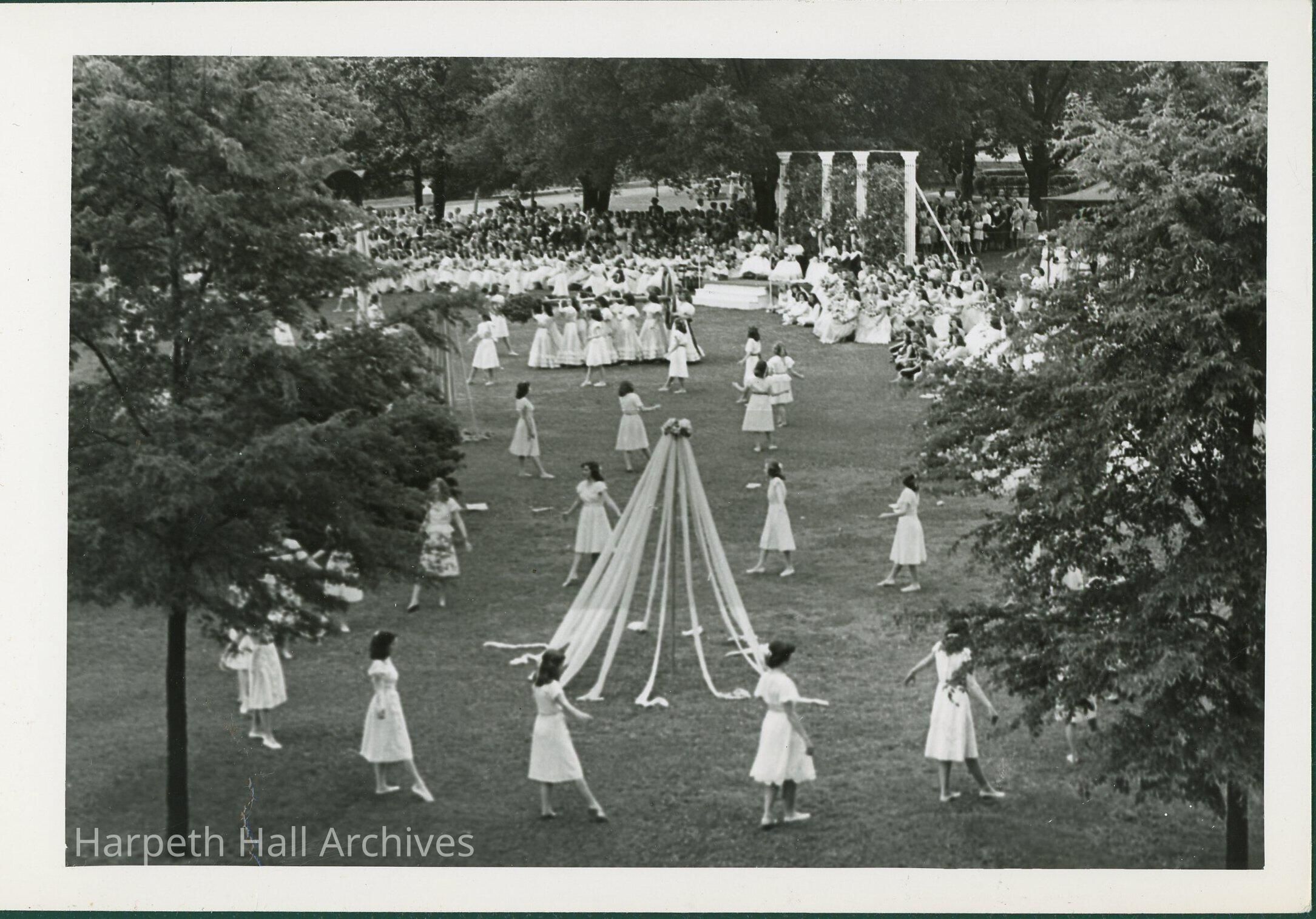 Ward-Belmont May Day May Pole Dancers The dancers are wearing knee-length white dresses.
