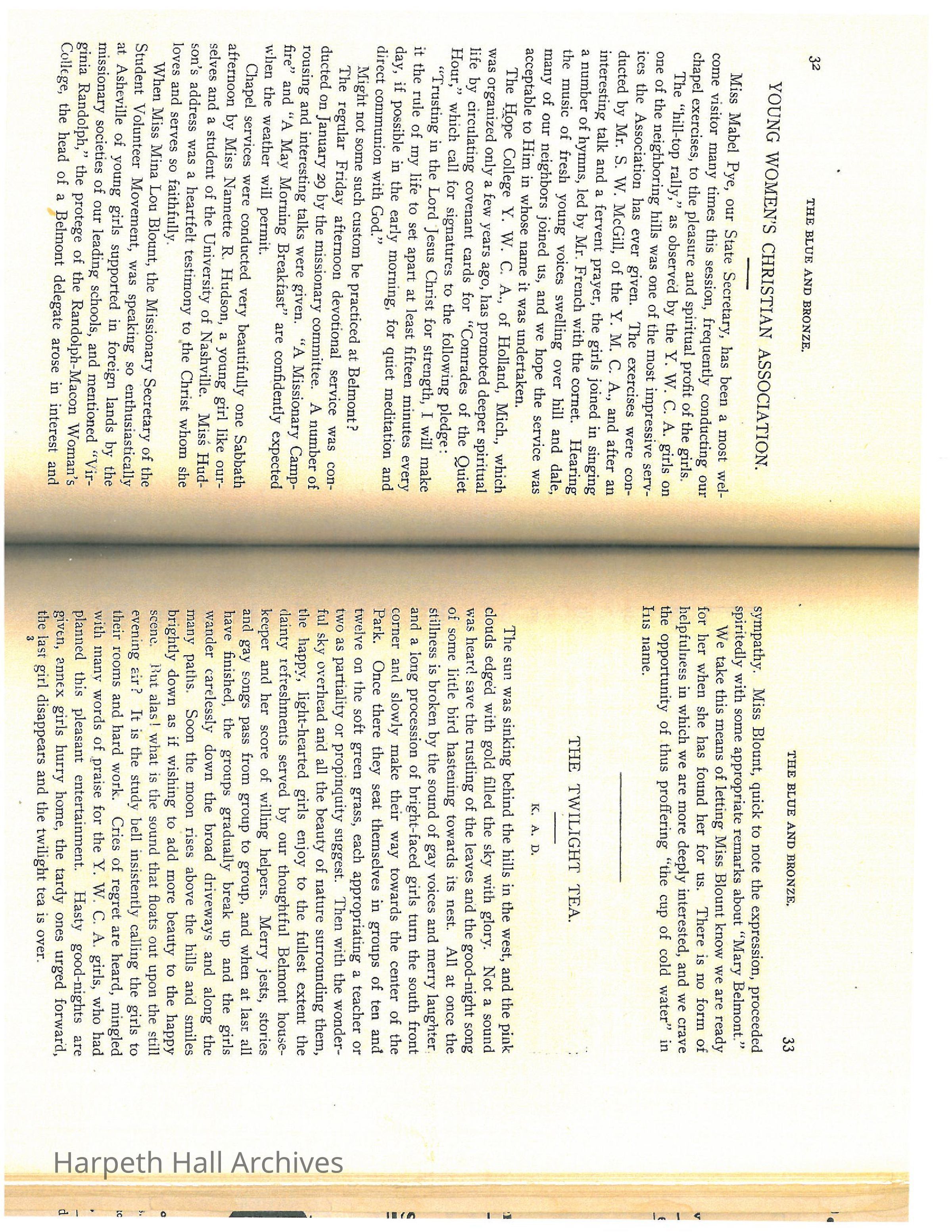 The Blue and Bronze, a literary magazine published by Belmont College for Young Women, February 1904 issue