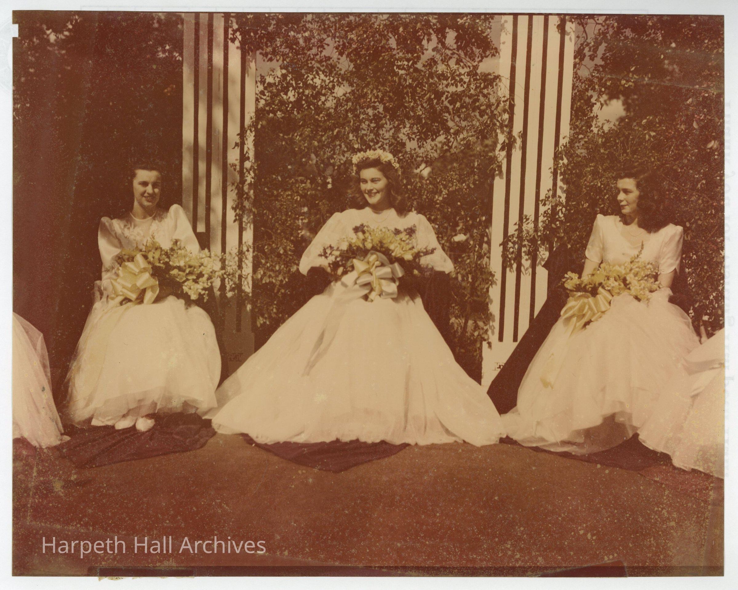 Pictured from left to right: Betty Asquith, Honor Maid; Queen Joy Roberts Christian (1946); Emmie Jackson McDonald (1944), College Attendant