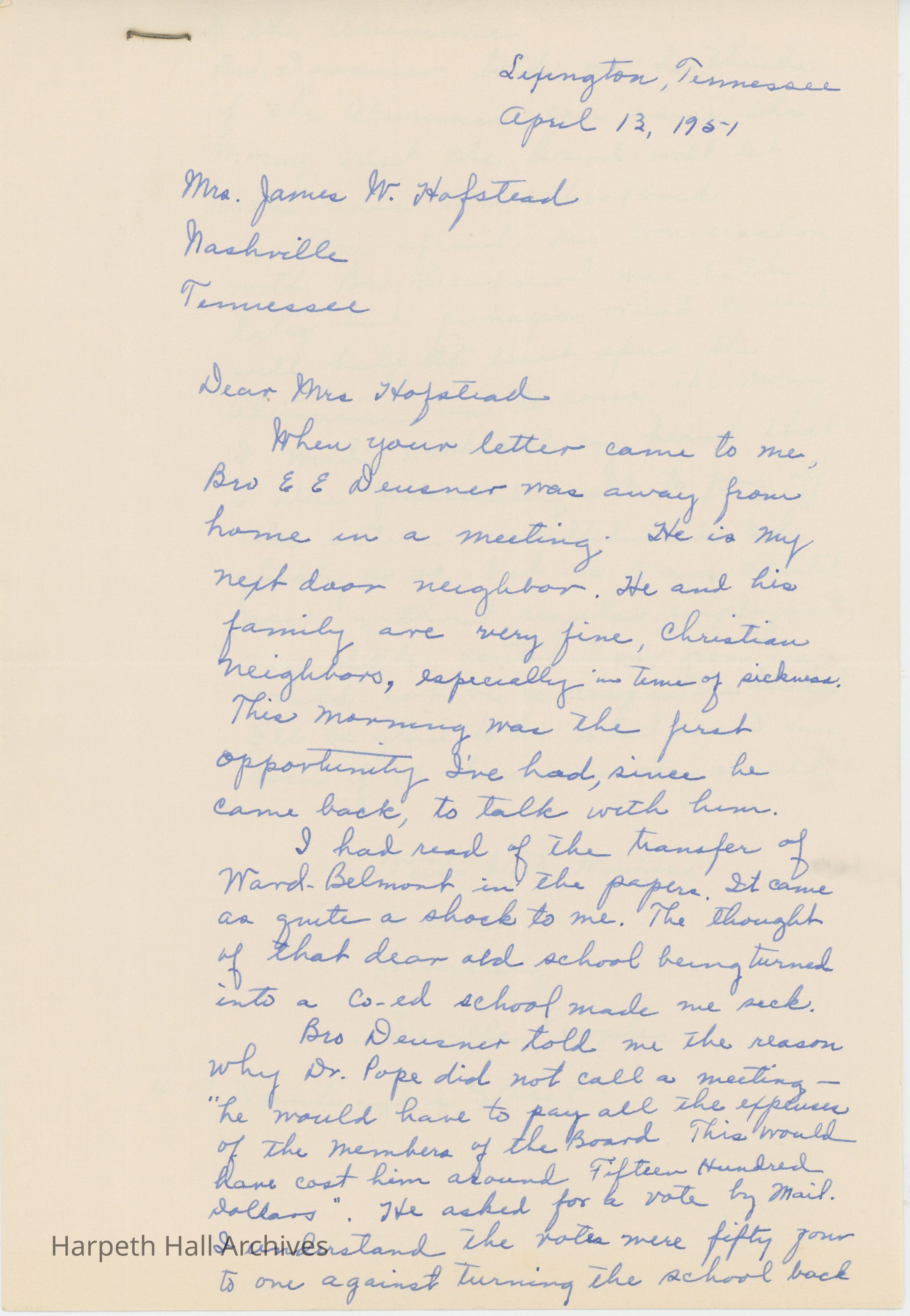 Letter to Mrs. Hofstead, April 1951