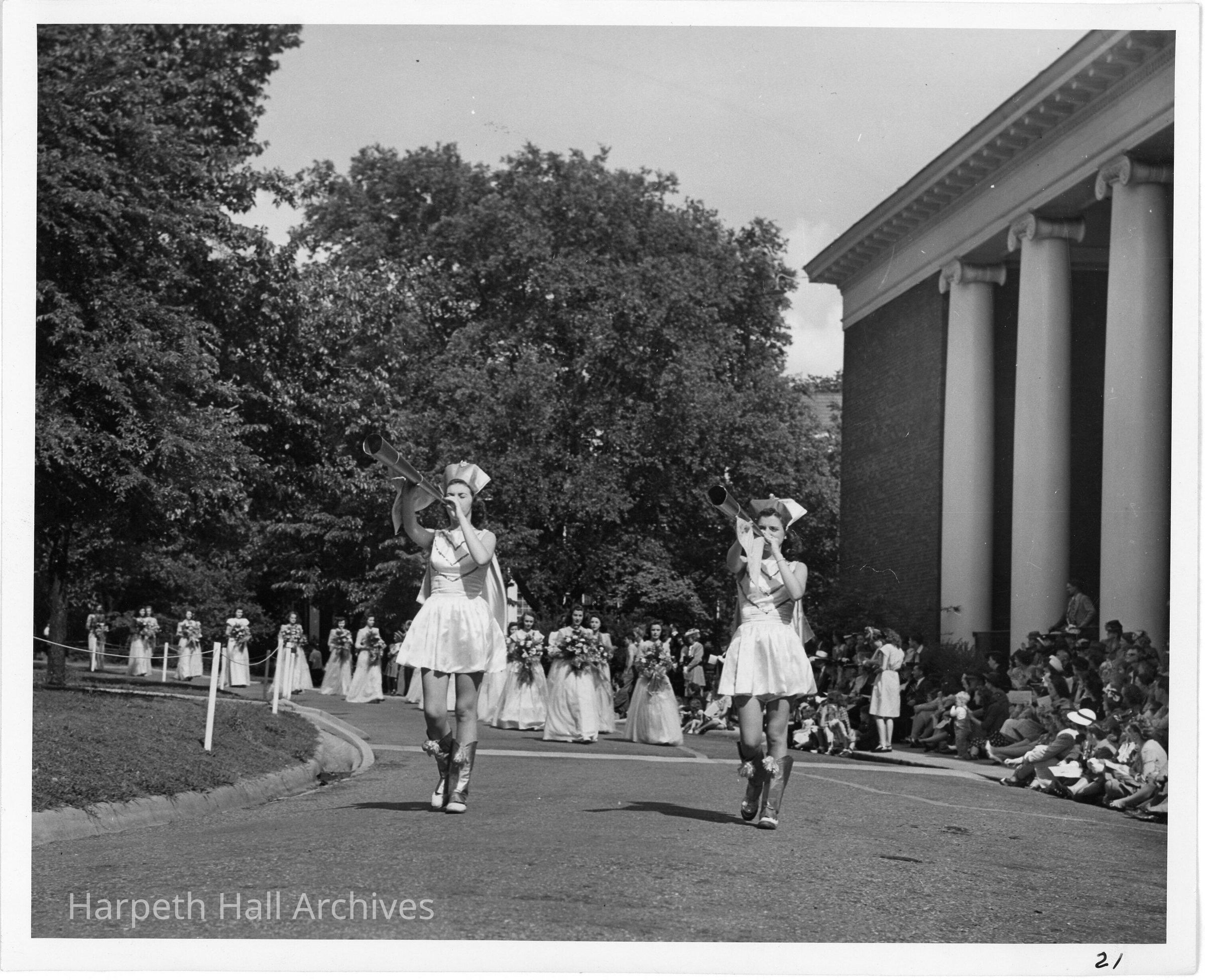 Ward-Belmont May Day Parade/Procession of the Queen and court with buglers leading the way.