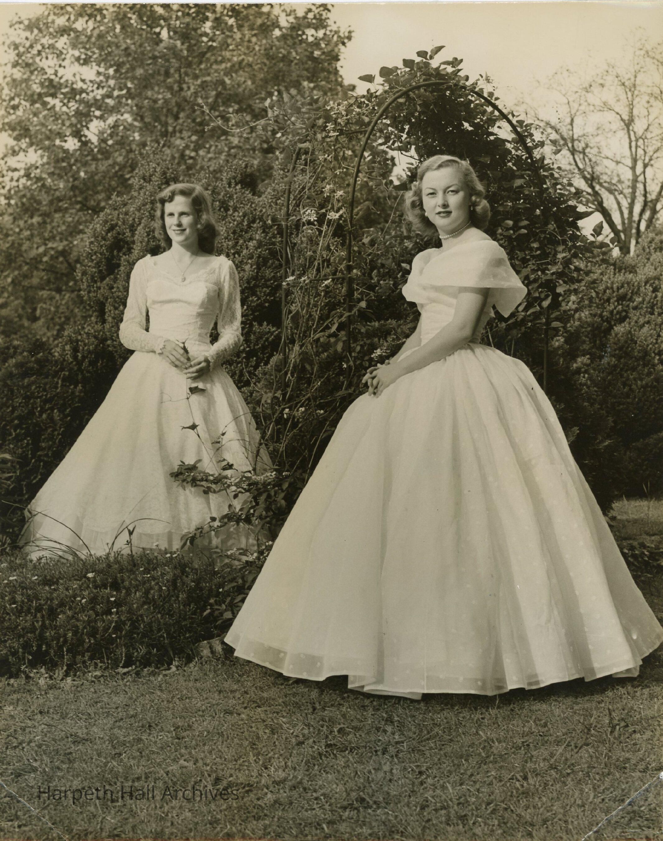 The ladies pictured left to right are Ann "Mac" McQuiddy, Preparatory Maid, and Anne White Connell (1950), Preparatory Maid.