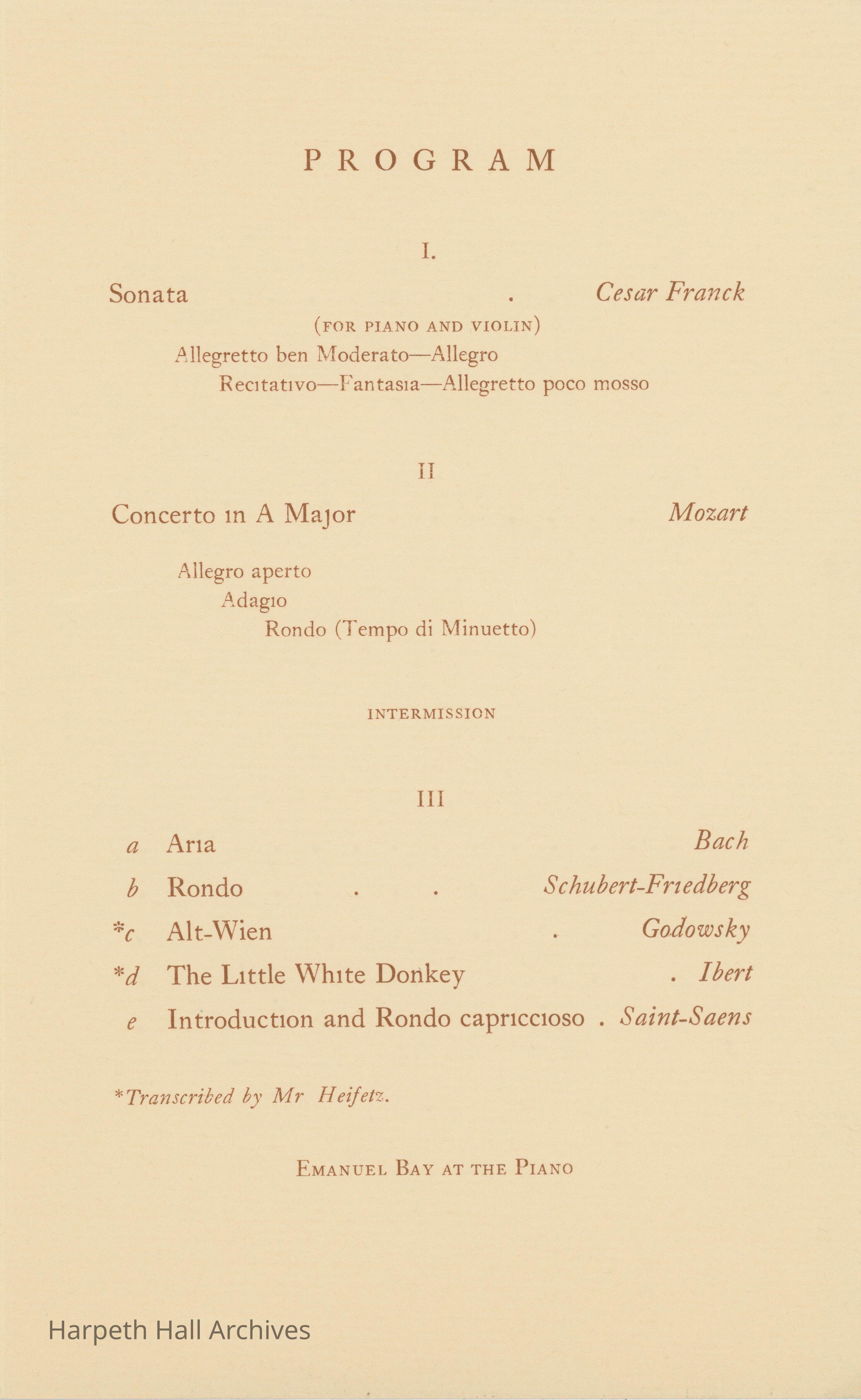 W-B Heifetz Concert Program, 1936Entry/Object ID
