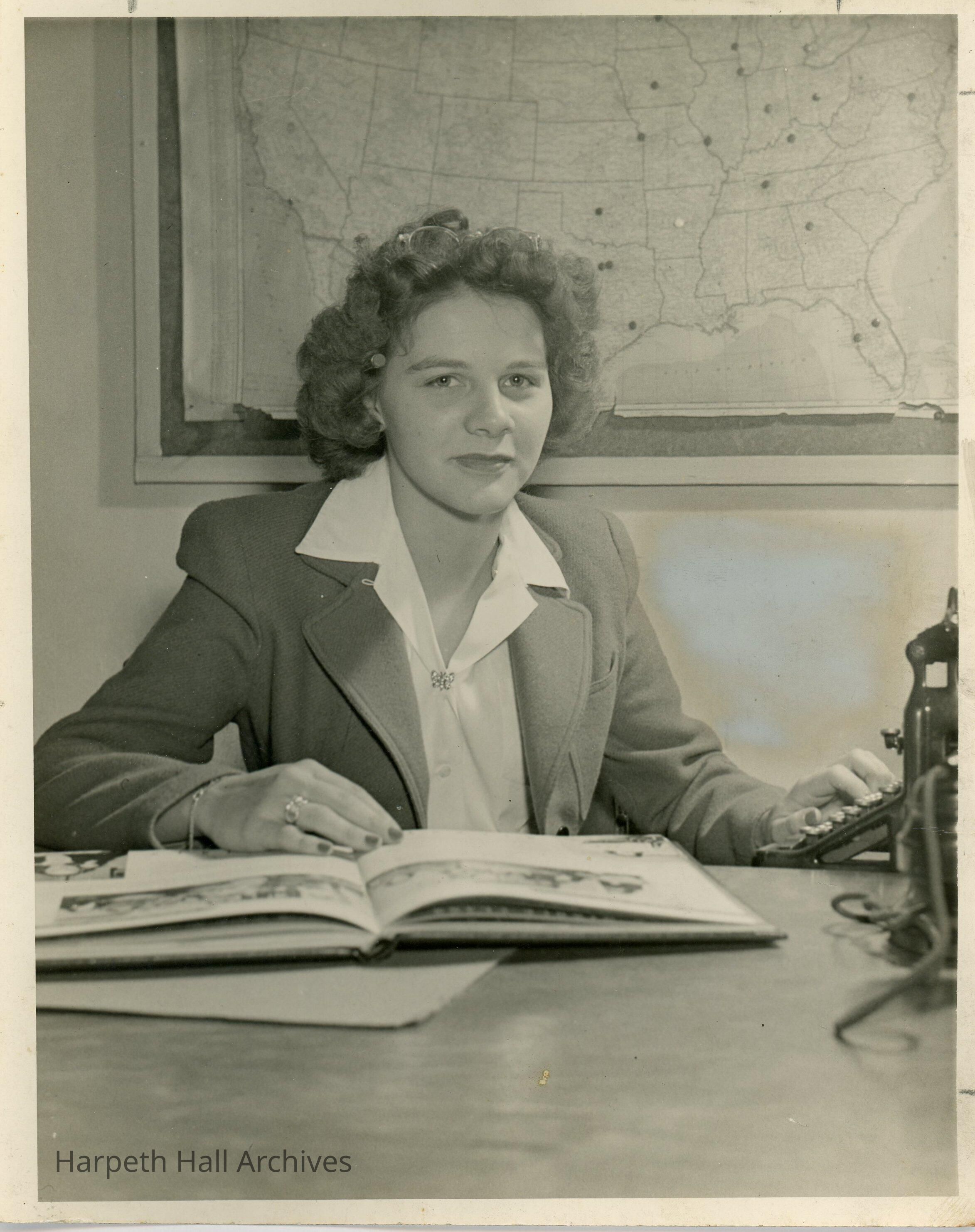 Unidentified Ward-Belmont Female History(?) Faculty or Staff Member pictured with U.S. Map in the background