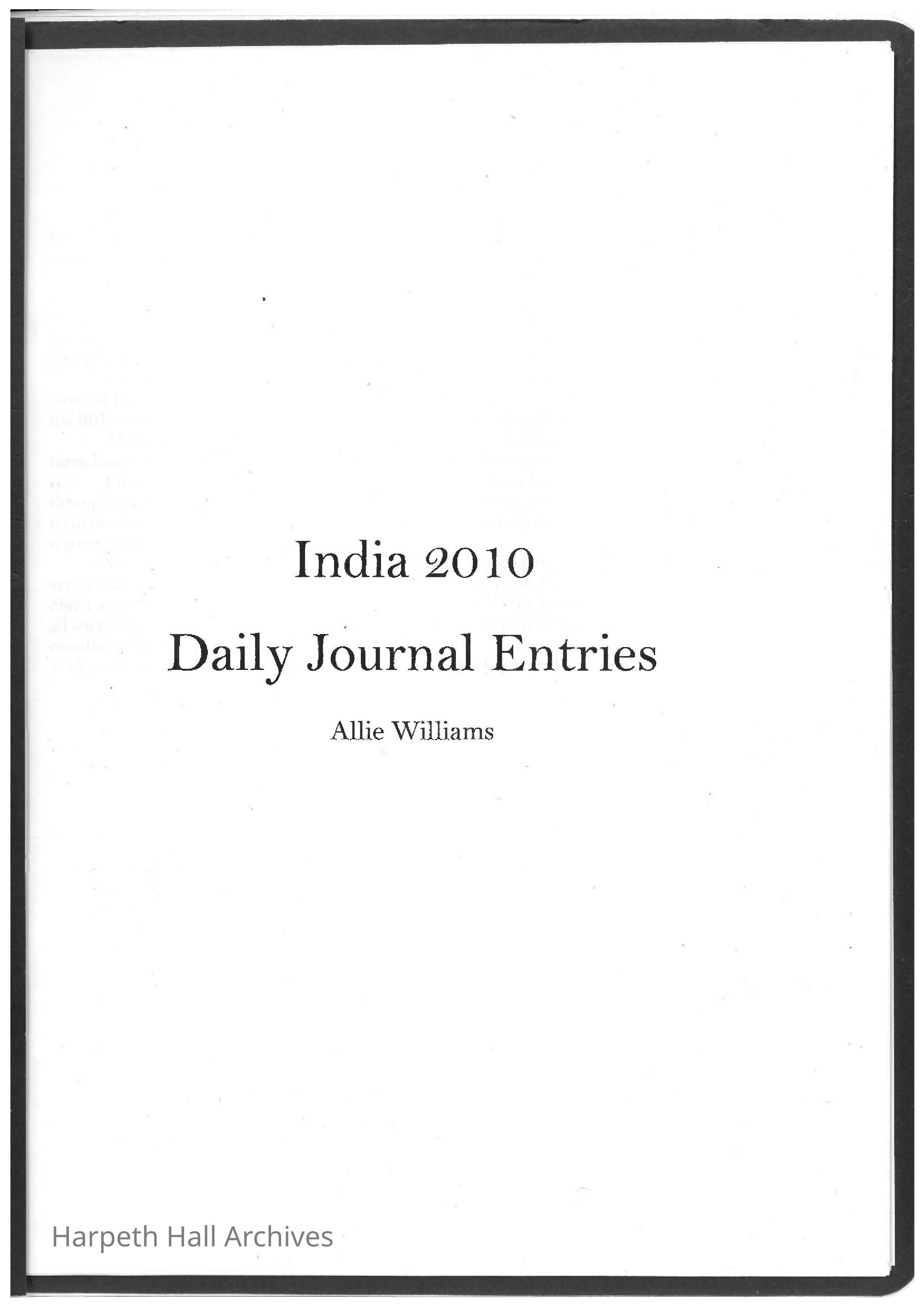 Allie Williams ('11) journal with typed daily entries describing trip to India in January 2010.