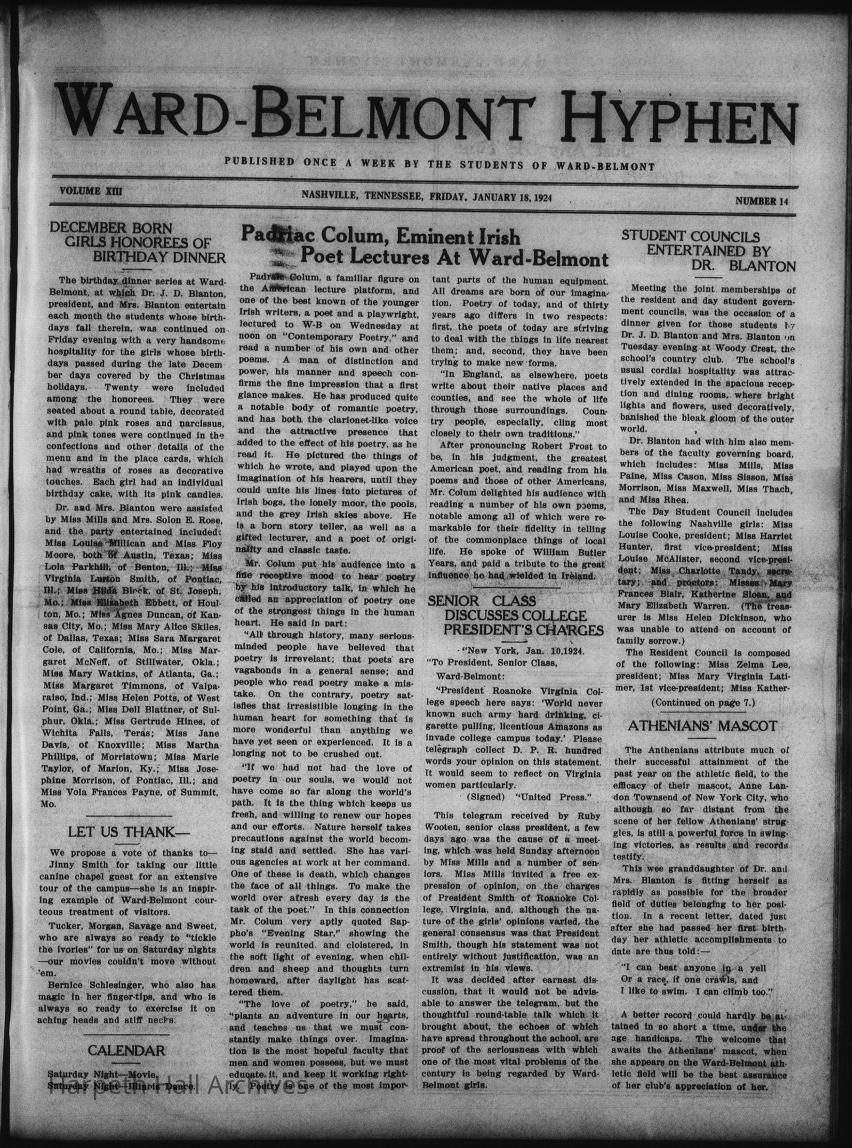 The link to see the online digitized copy of all of the Ward Belmont newspapers from 1924 is at the bottom of the page under "Web Links"!