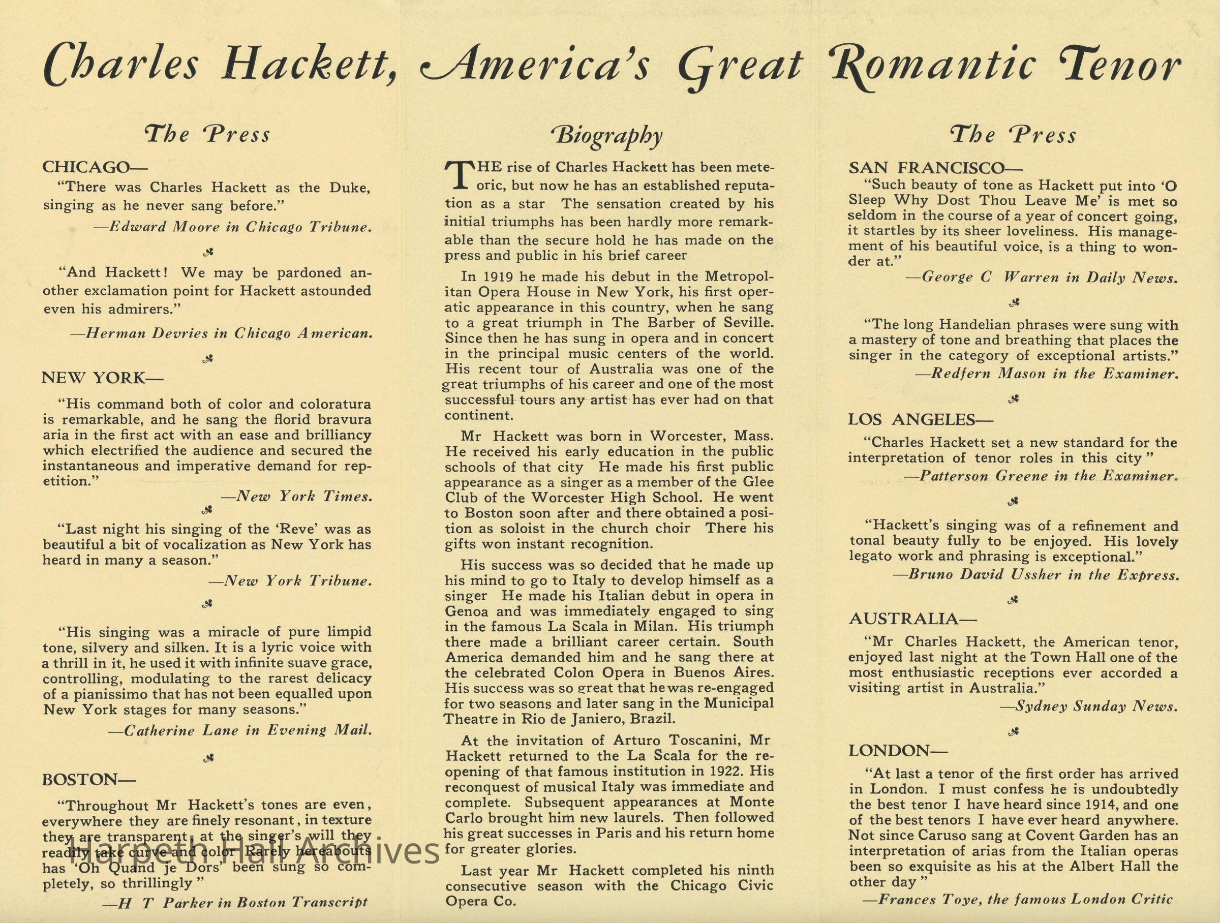 Charles Hackett Performance, 1934Entry/Object ID