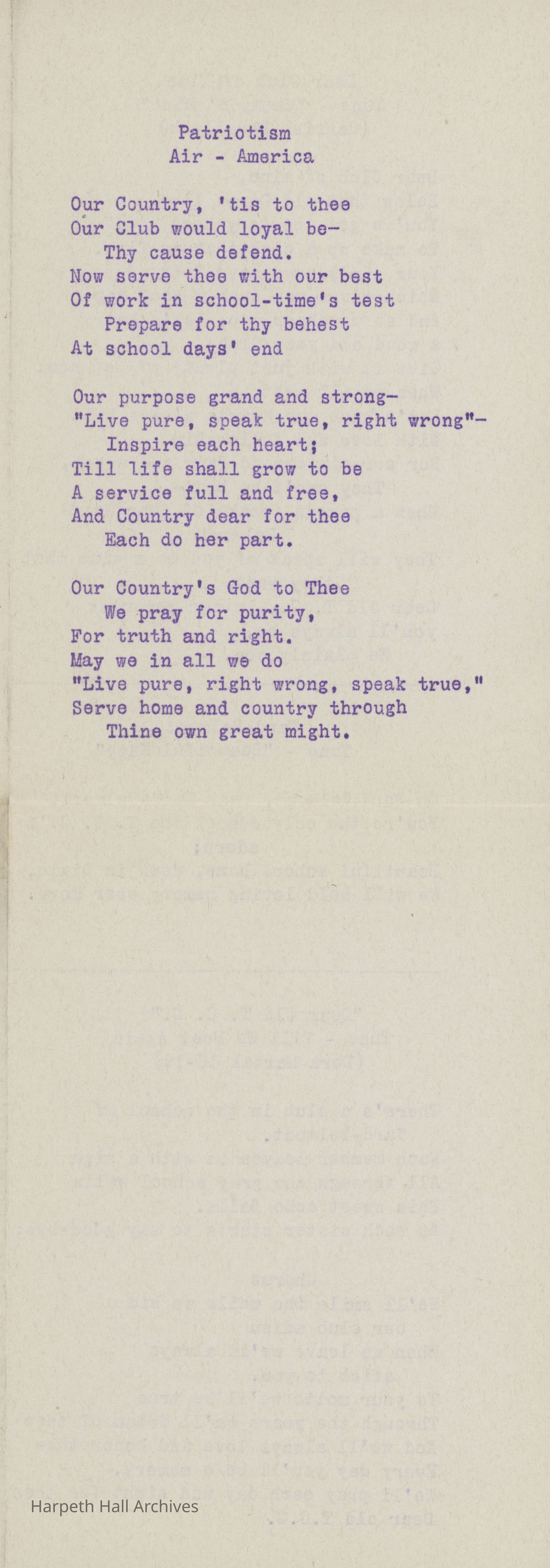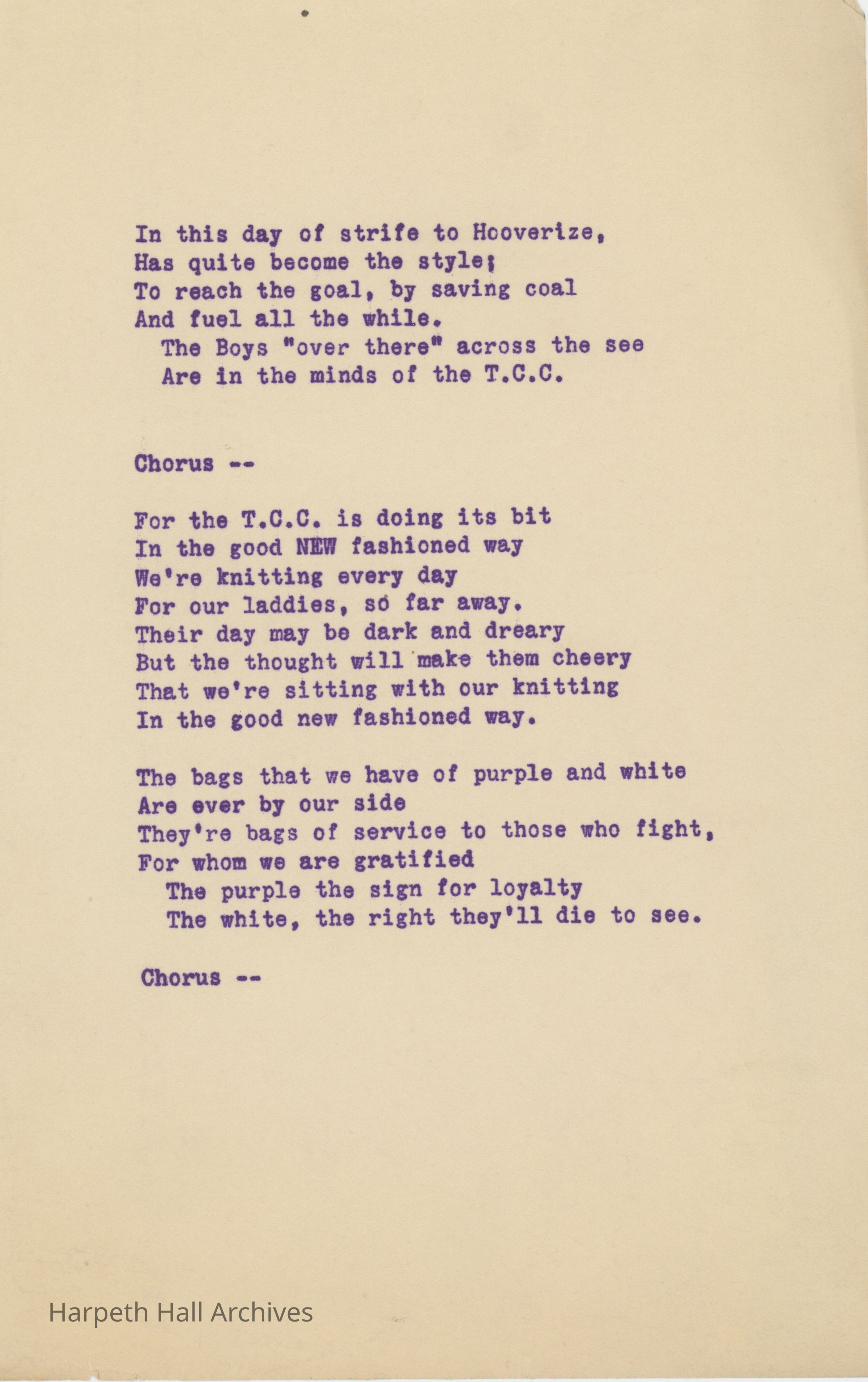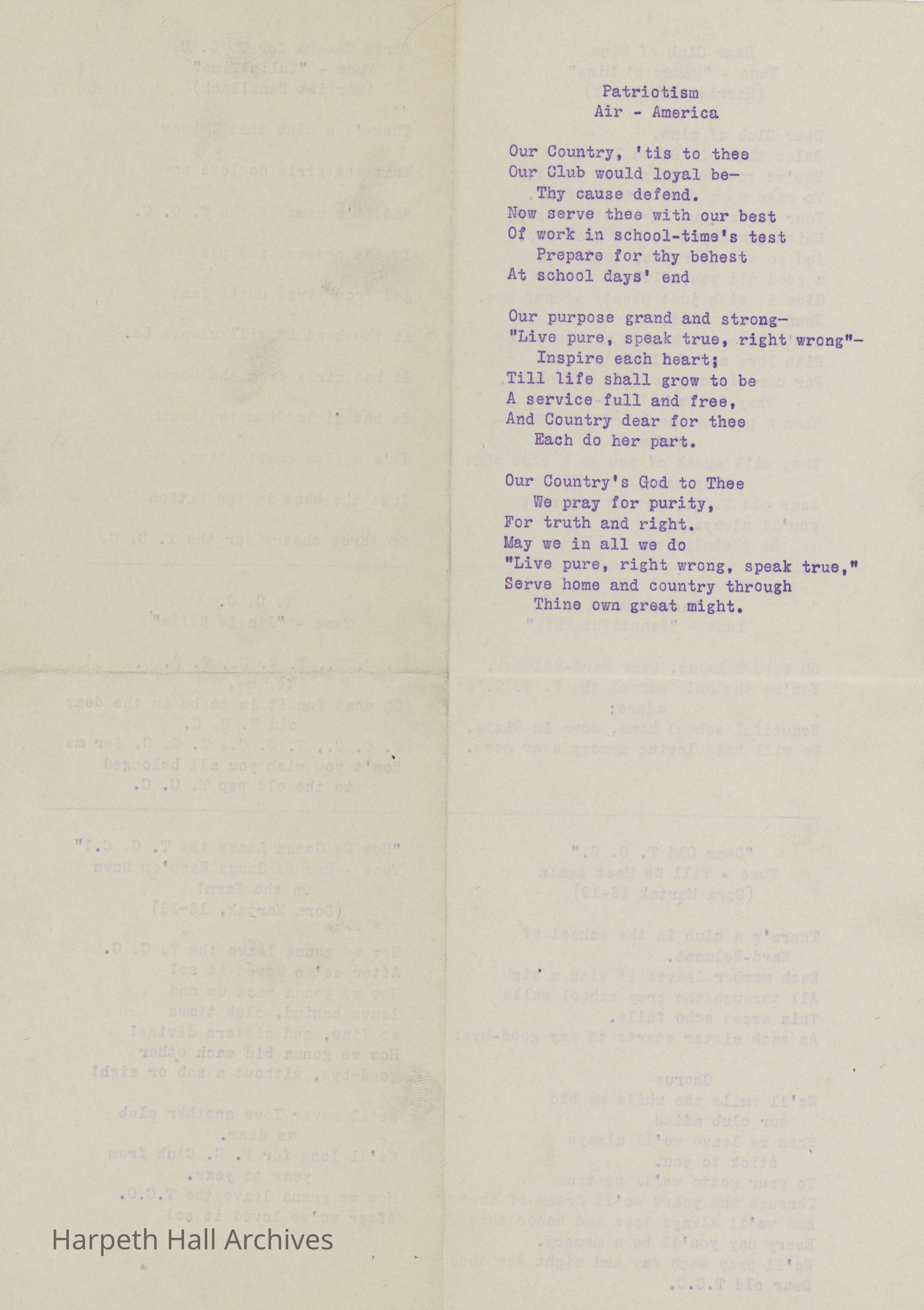 Documents detailing the lyrics and tune of various club songs for the Twentieth Century Club.Context