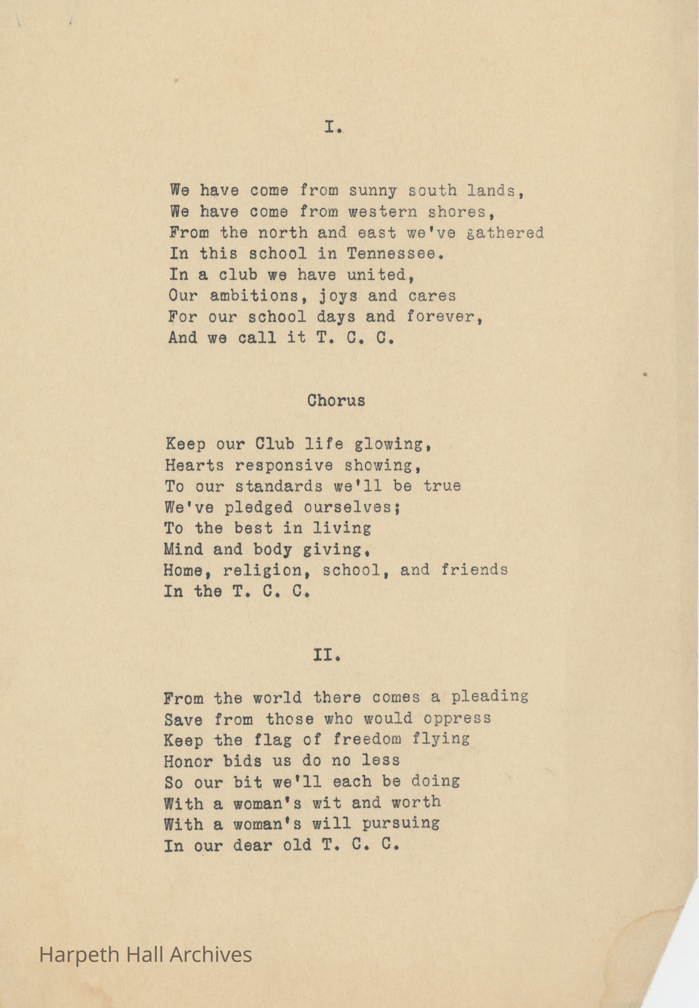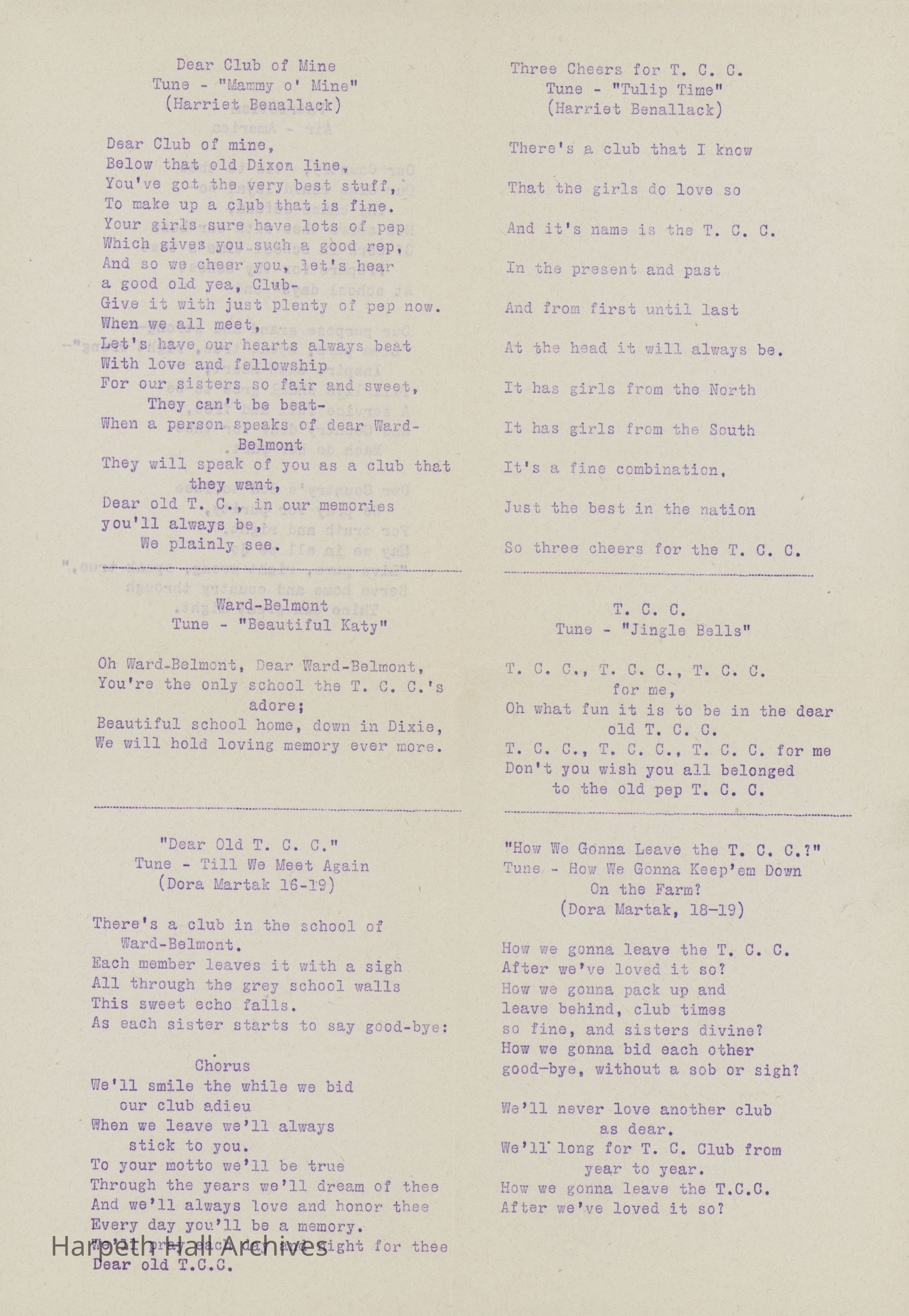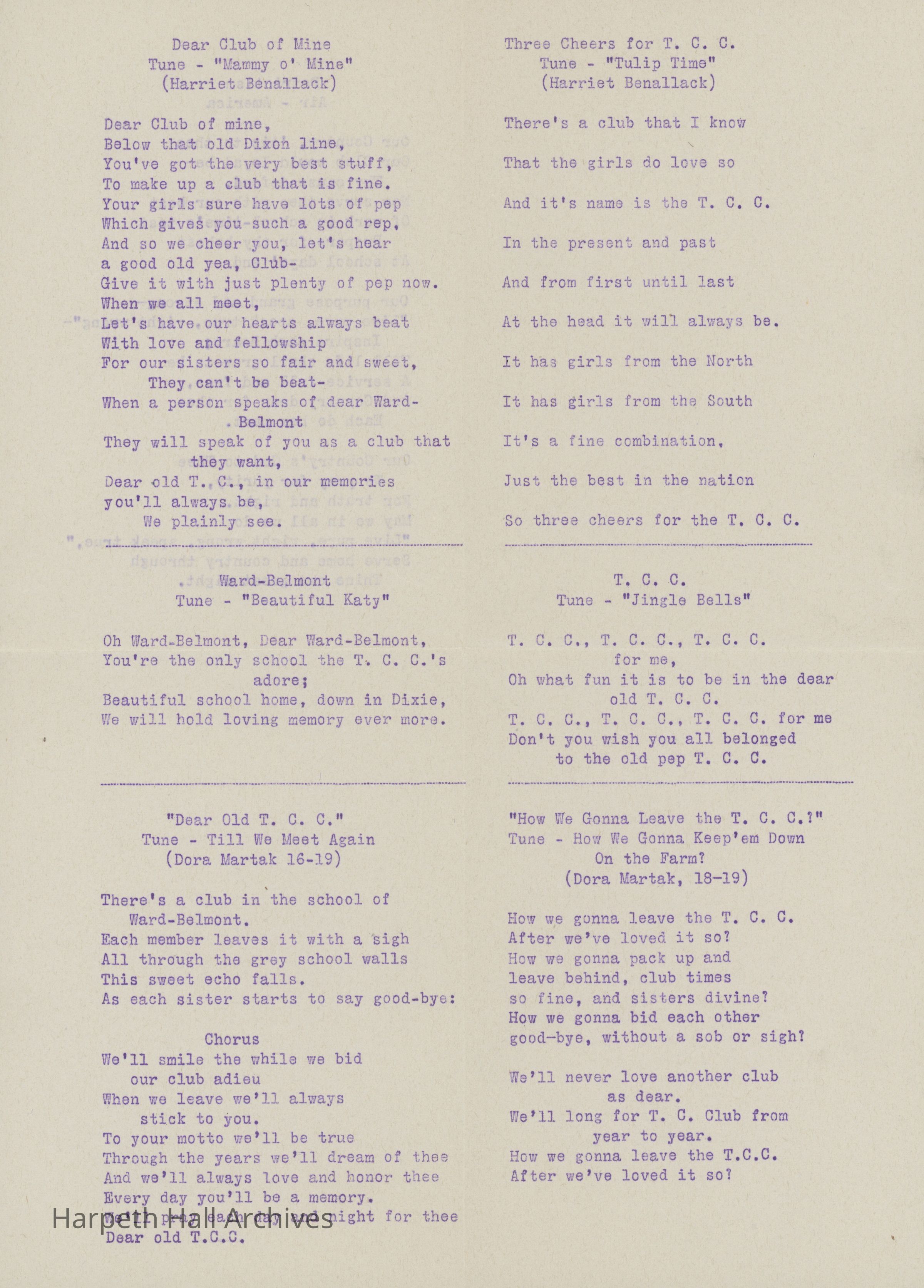 Ward-Belmont T.C.C. Club SongsEntry/Object ID