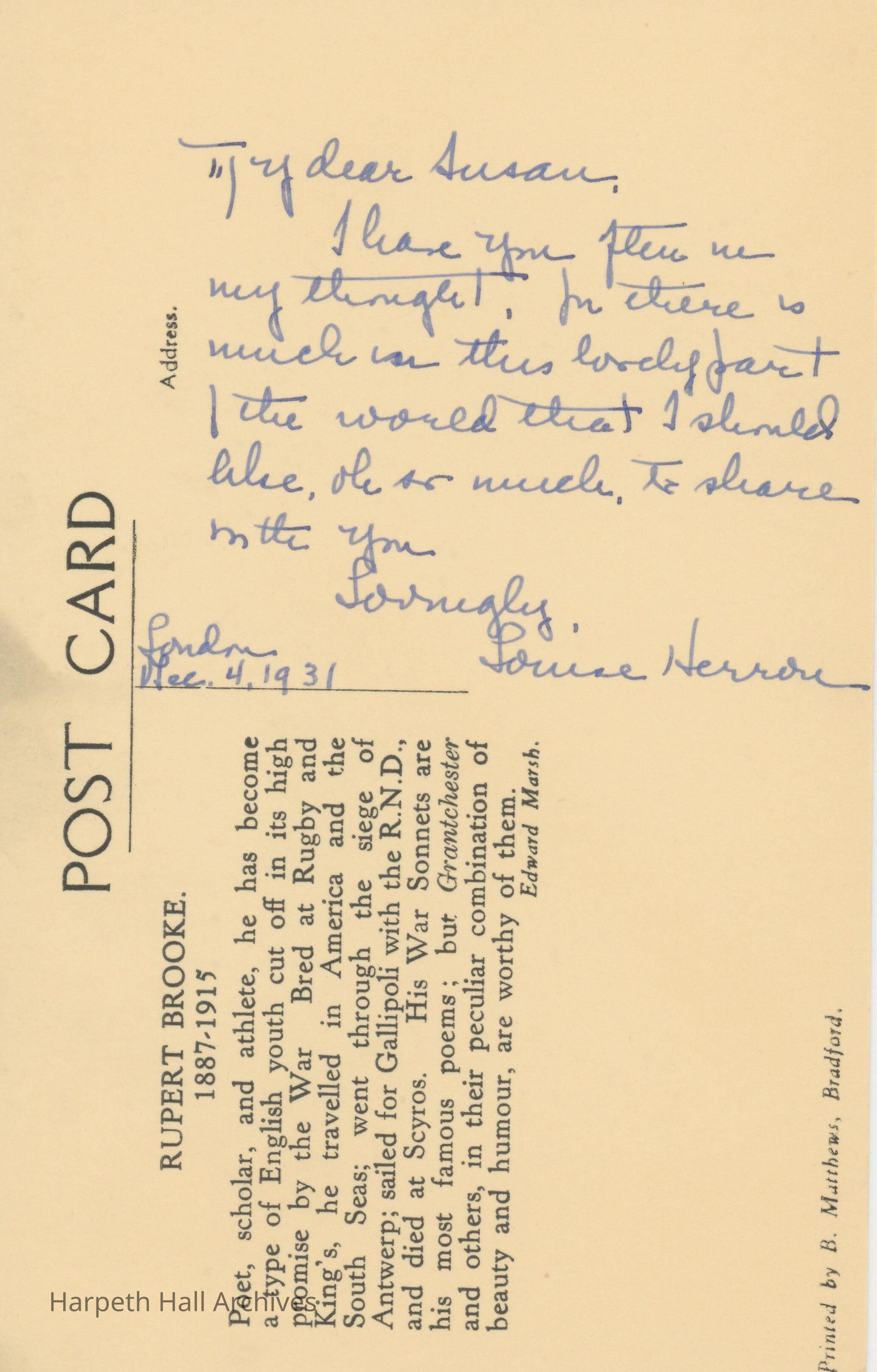 A post card addressed to Mrs. Susan Souby on December 4th, 1931.Context