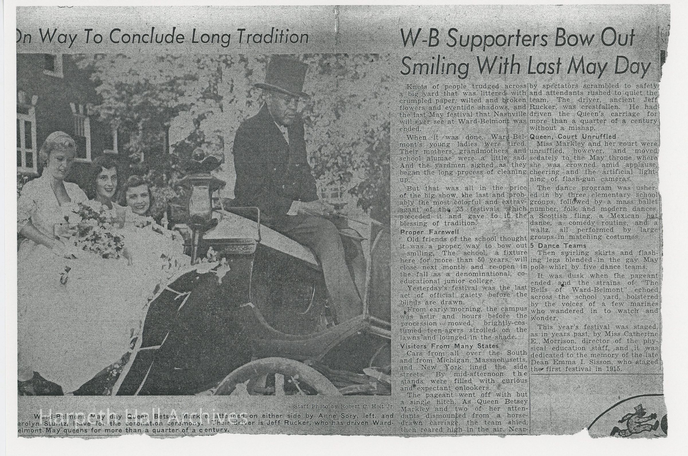 Newspaper article about Ward-Belmont's last May Day Festival.