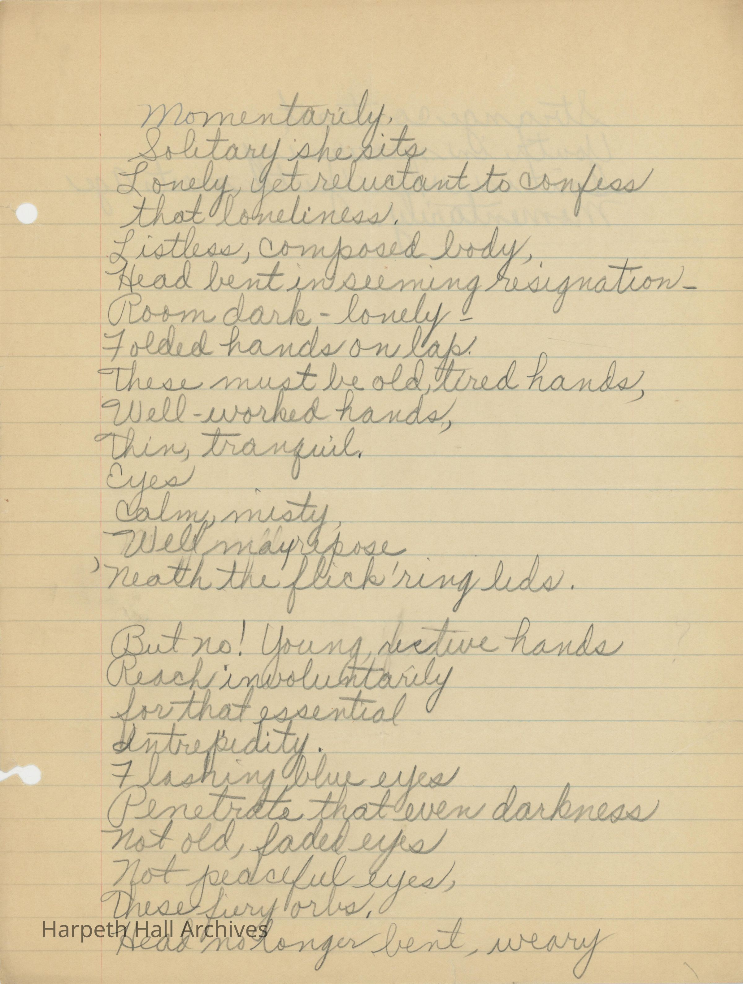 A poem entitled, "Momentarily" written by a Ward-Belmont student.