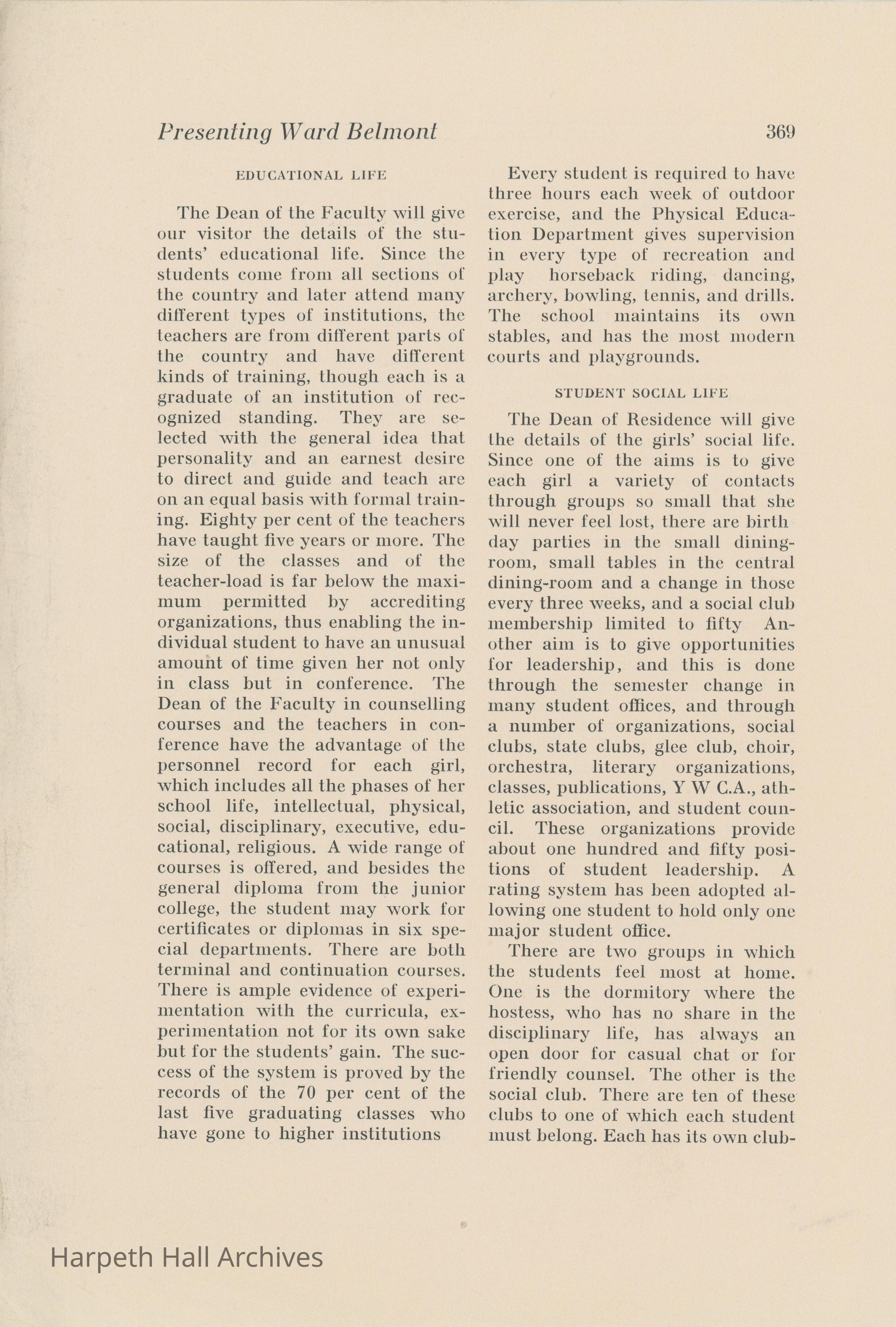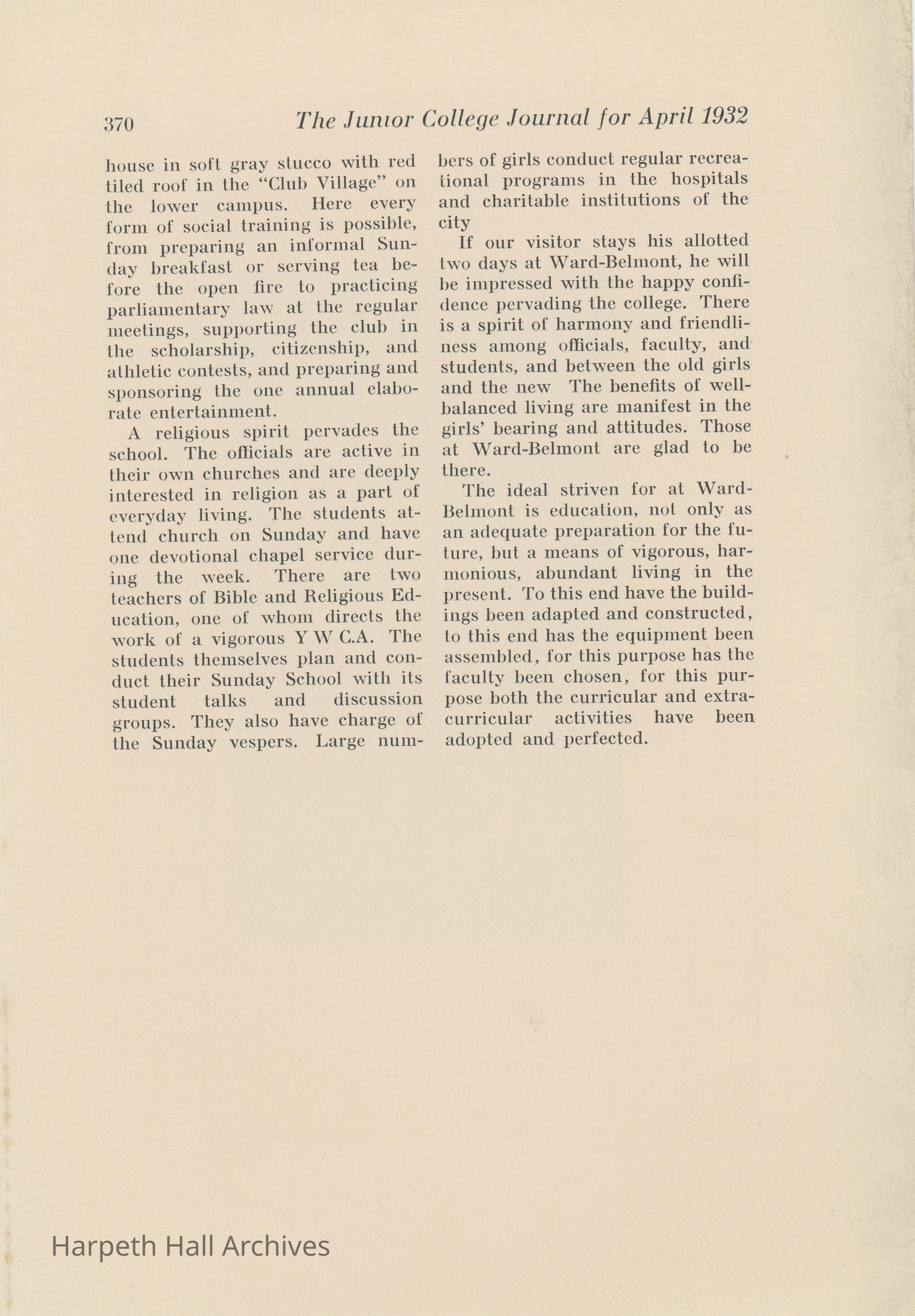 An article titled, "Presenting Ward-Belmont" written by Mary R Norris. The article was published in the Junior College Journal in April of 1932.Collection
