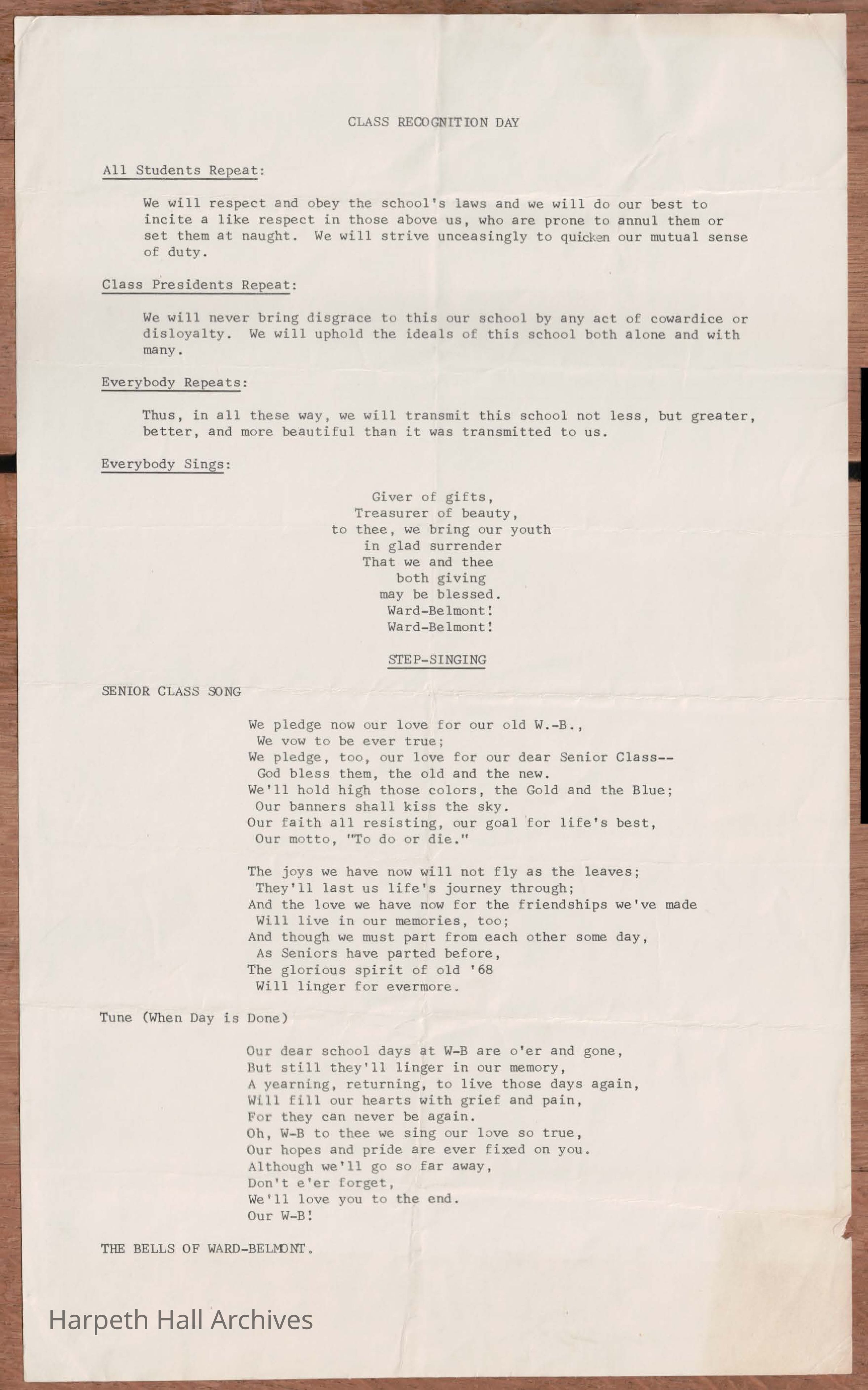 Ward Belmont Class Recognition Day ProgramContext