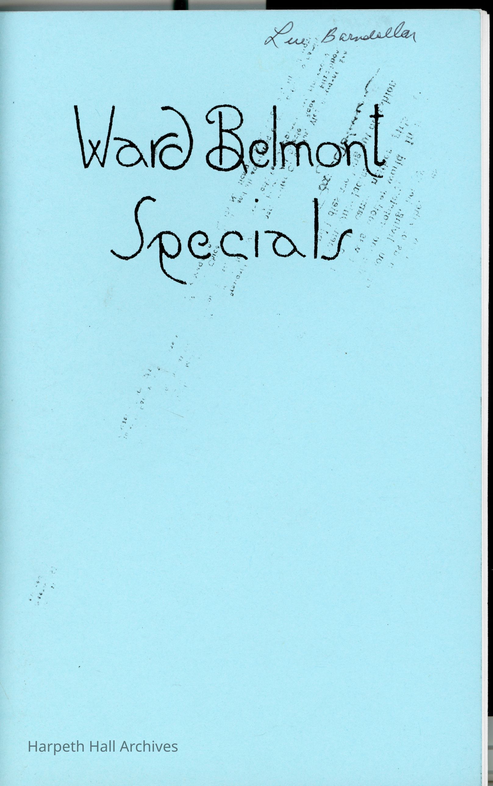 Ward Belmont Specials, 1934Entry/Object ID