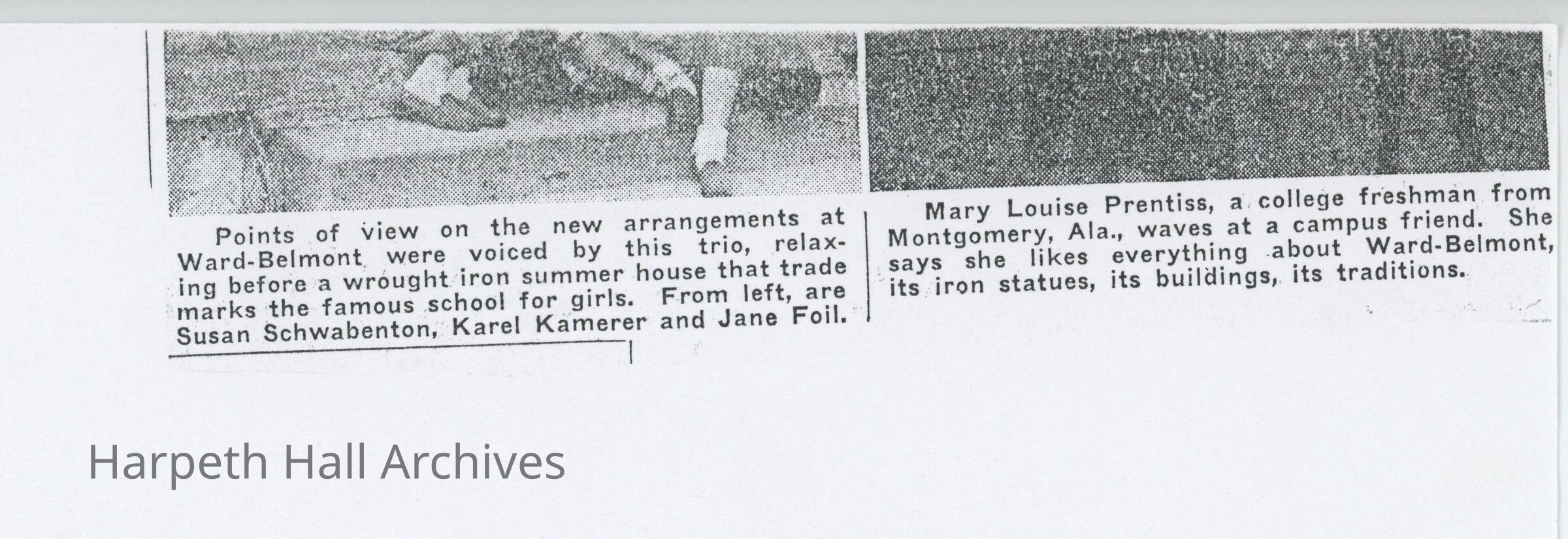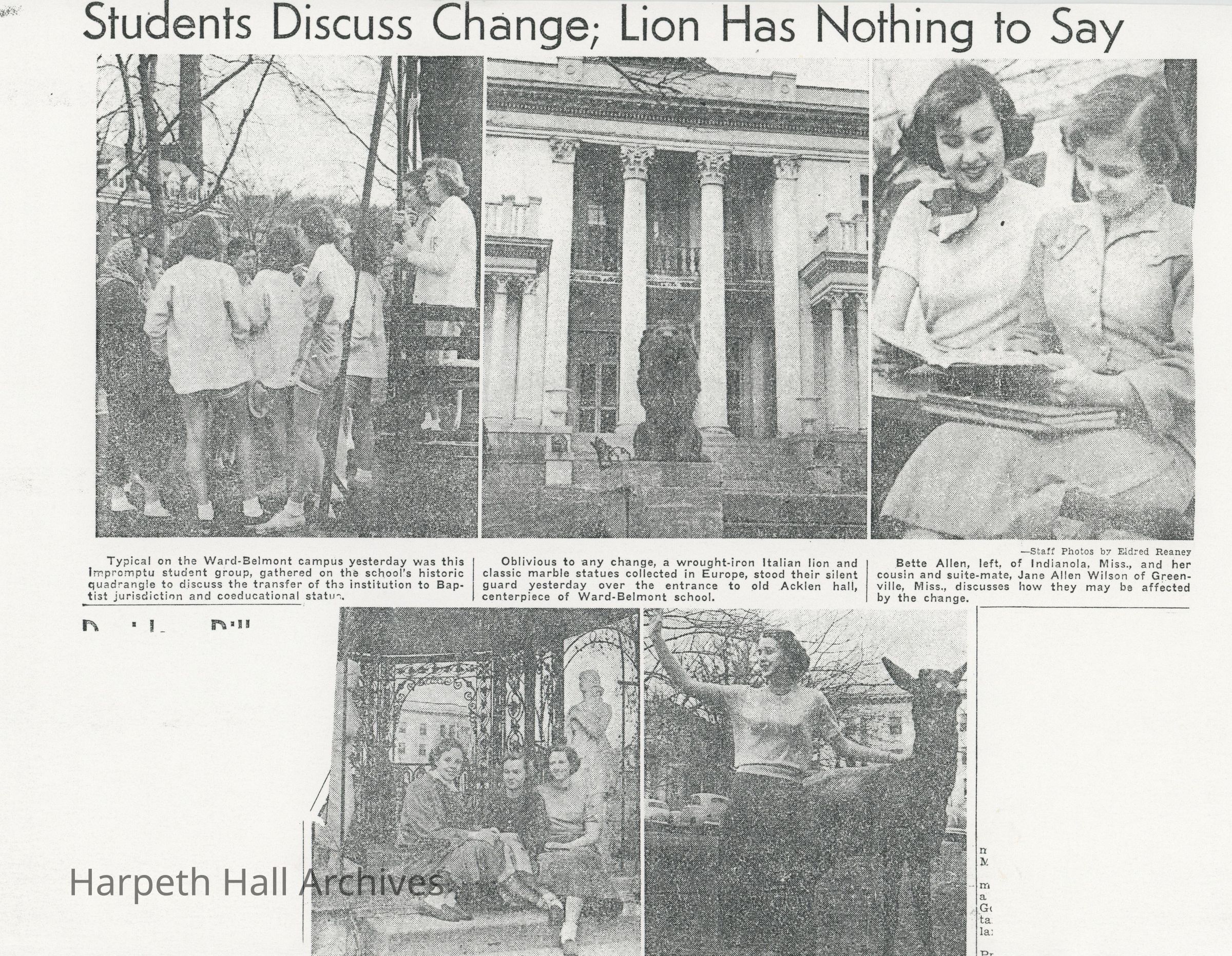 An article titled, "Students Discuss Change; Lion Has Nothing to Say." The article discusses the student's reaction to Ward-Belmont becoming coeducational.Collection