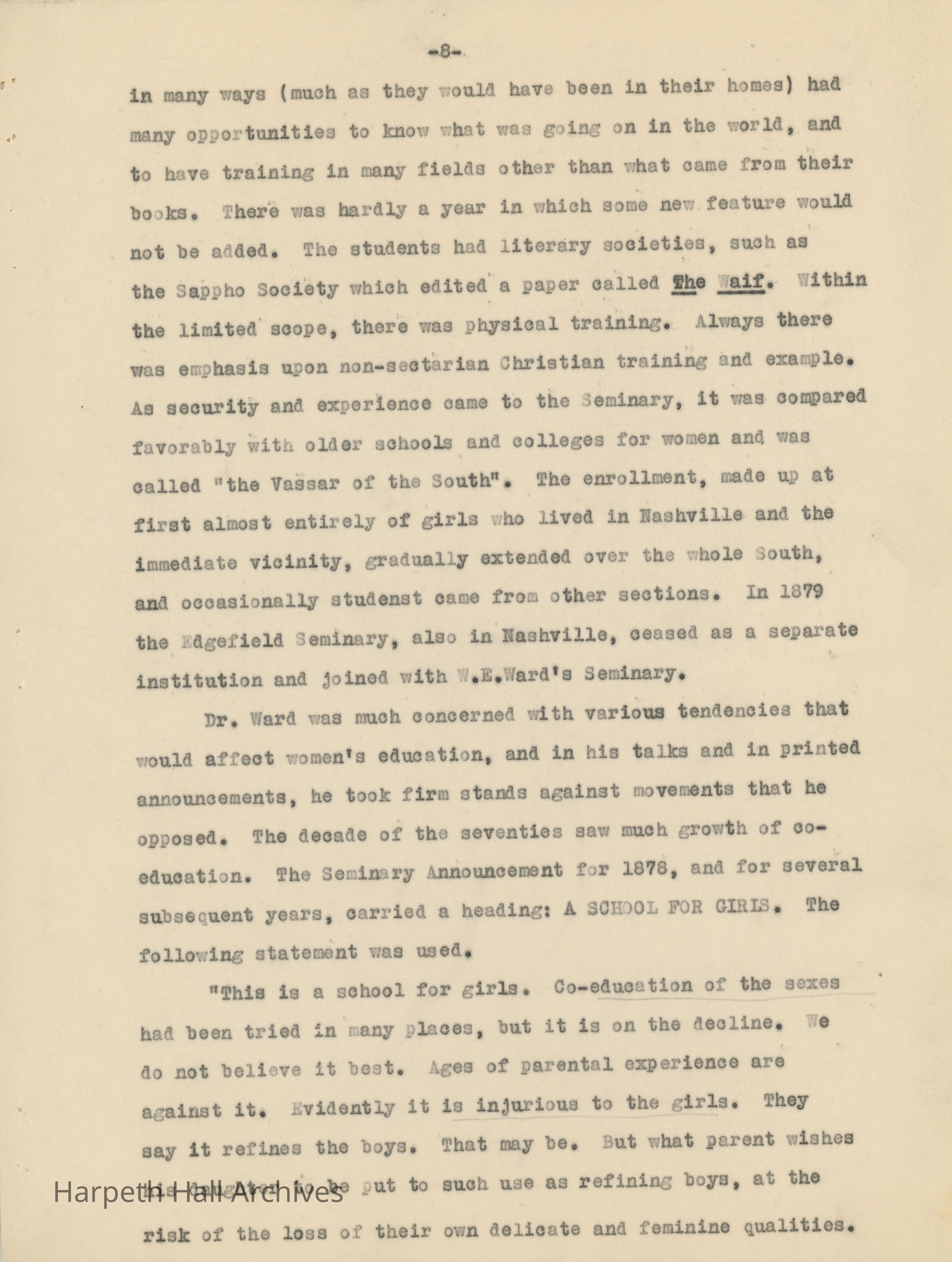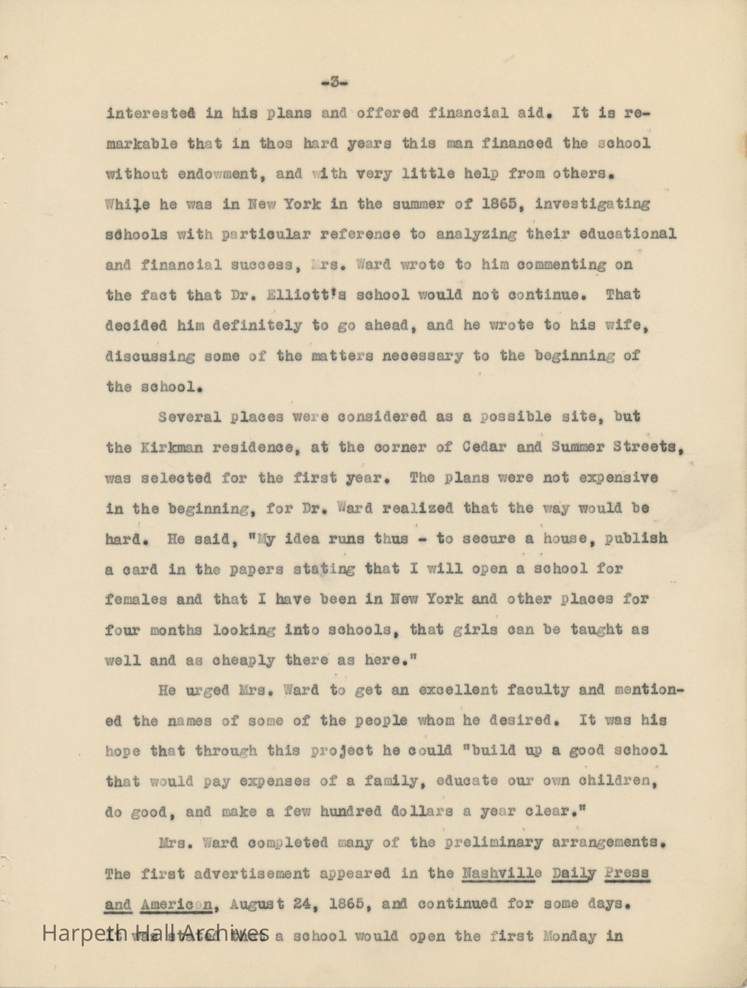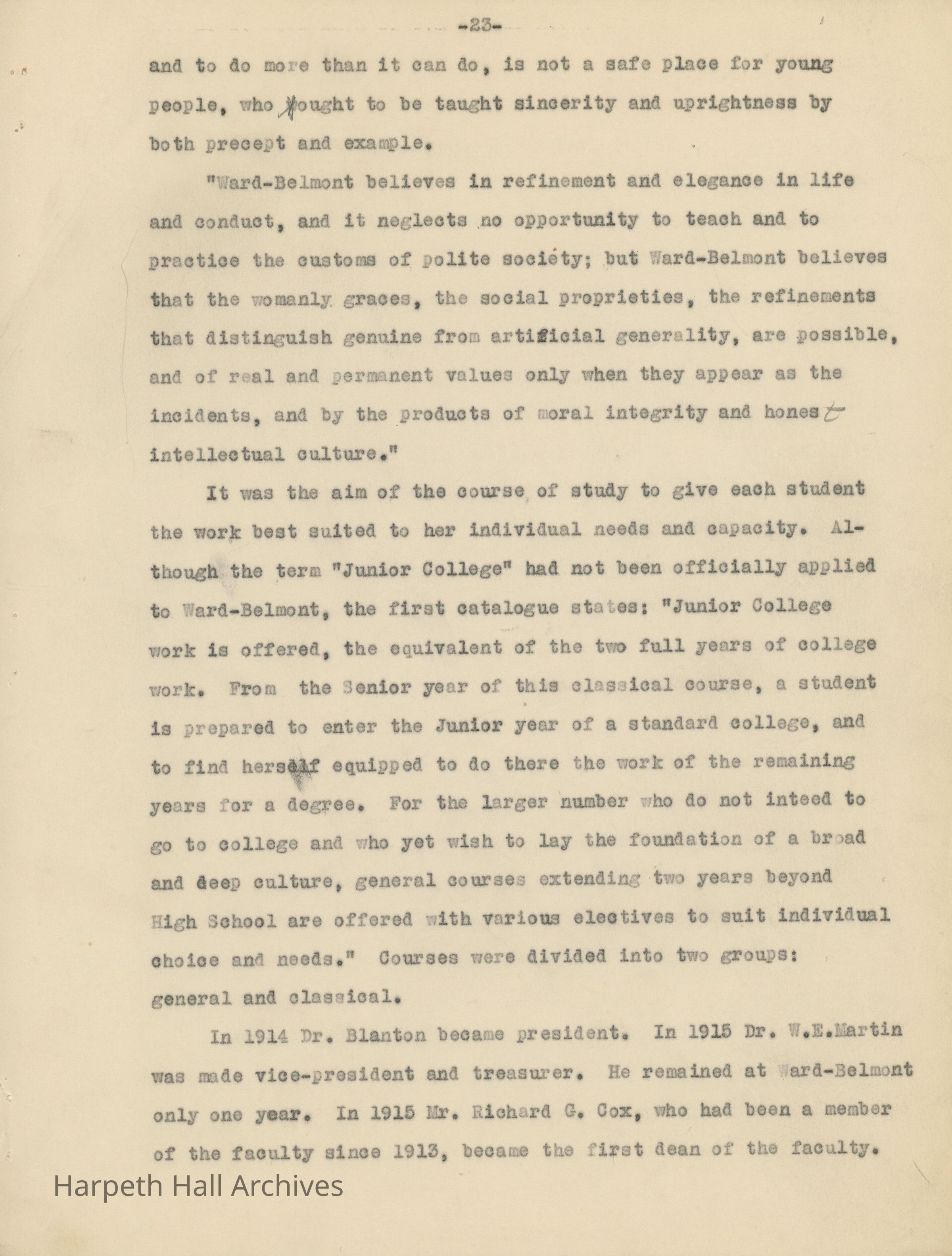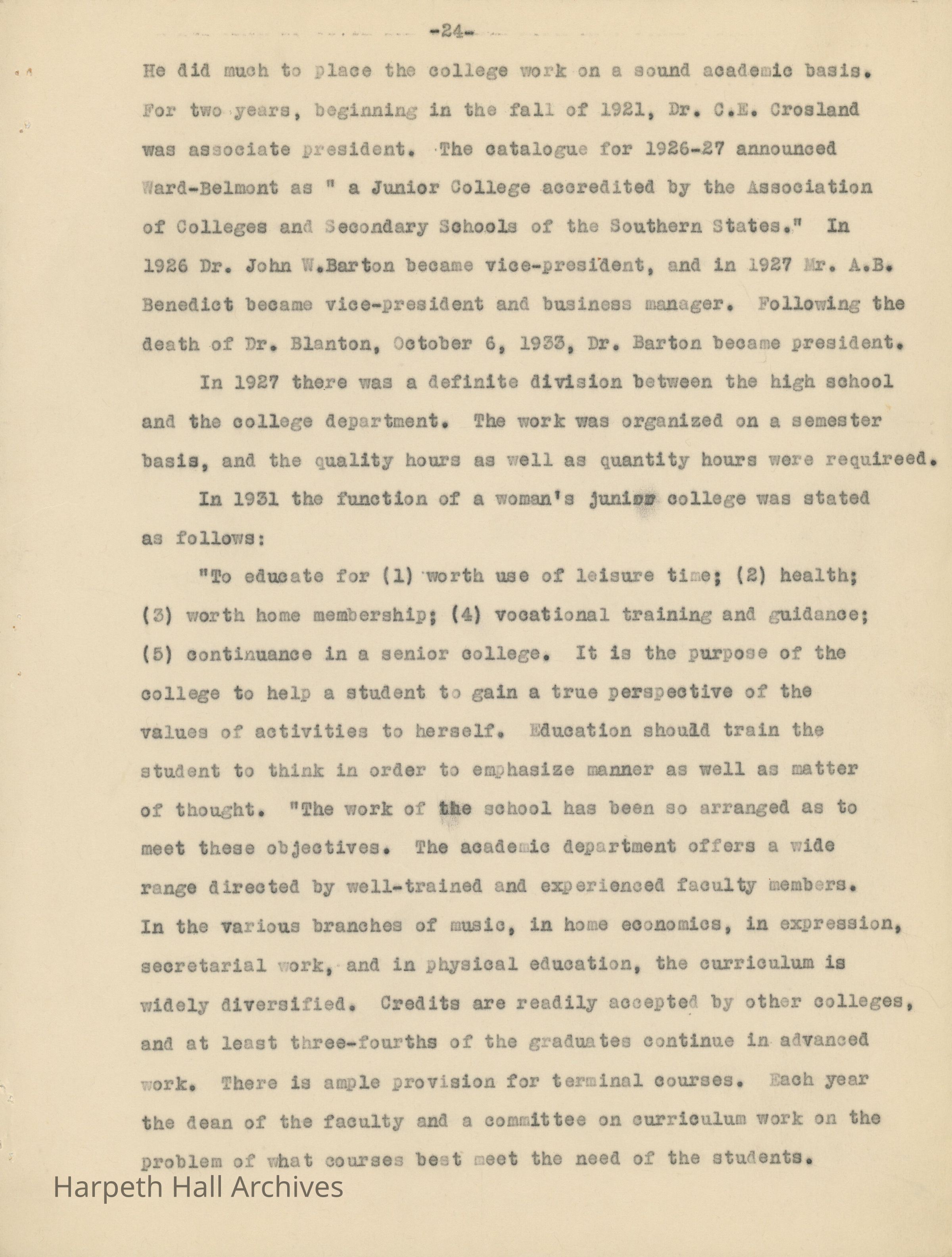 The historical sketch of Ward-Belmont School. The essay was to be completed by September 1st, 1935. The essay was submitted to the Southern Association of Colleges for Women.Collection