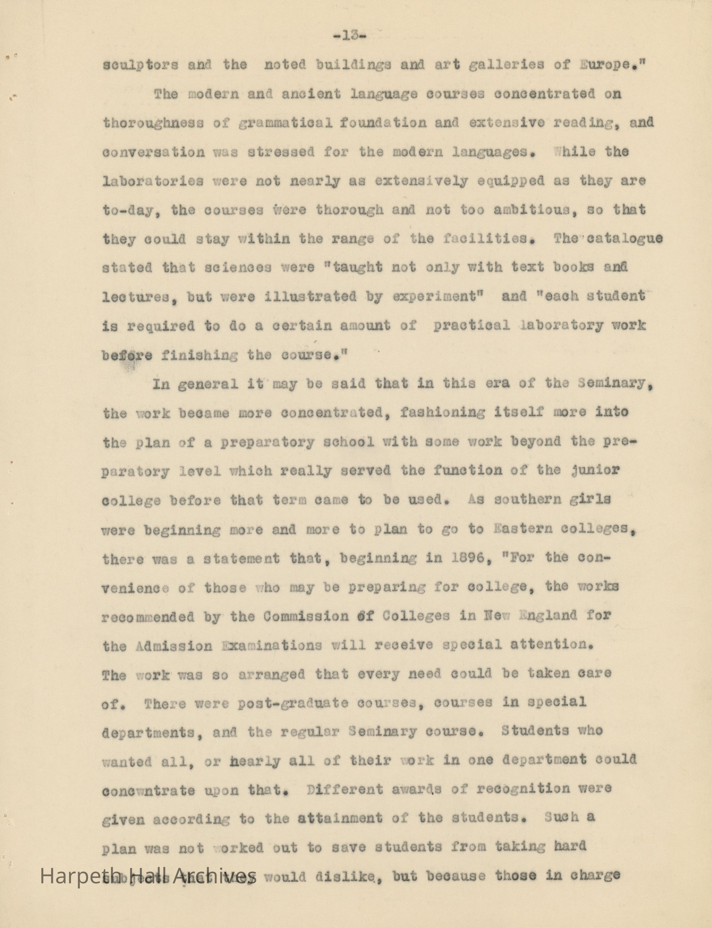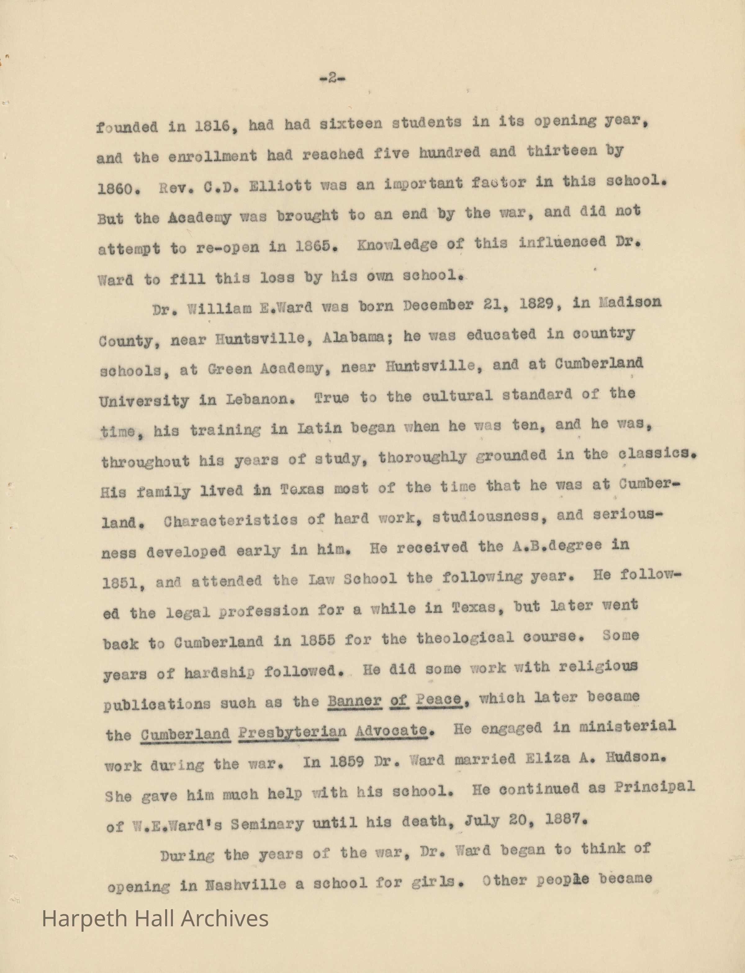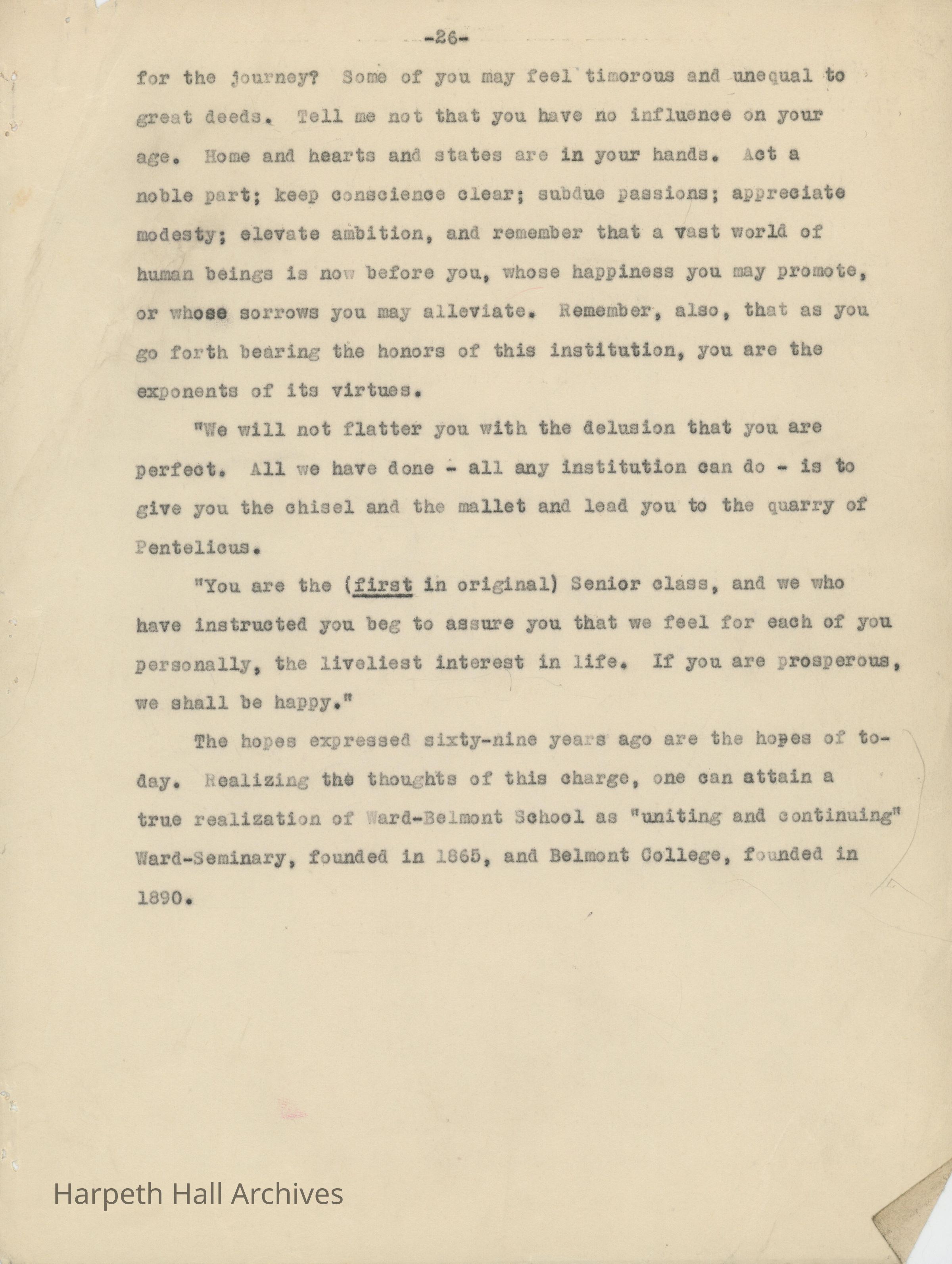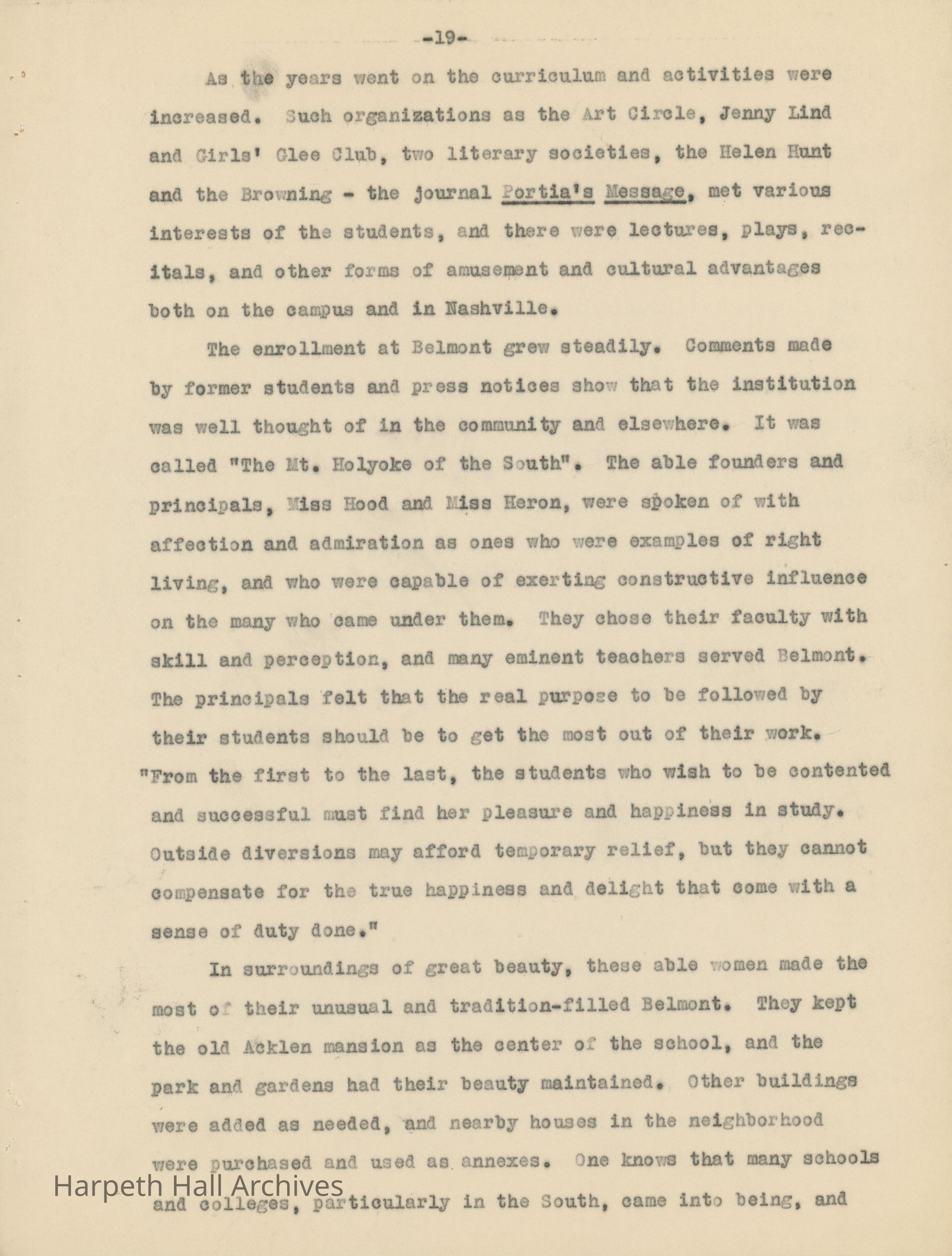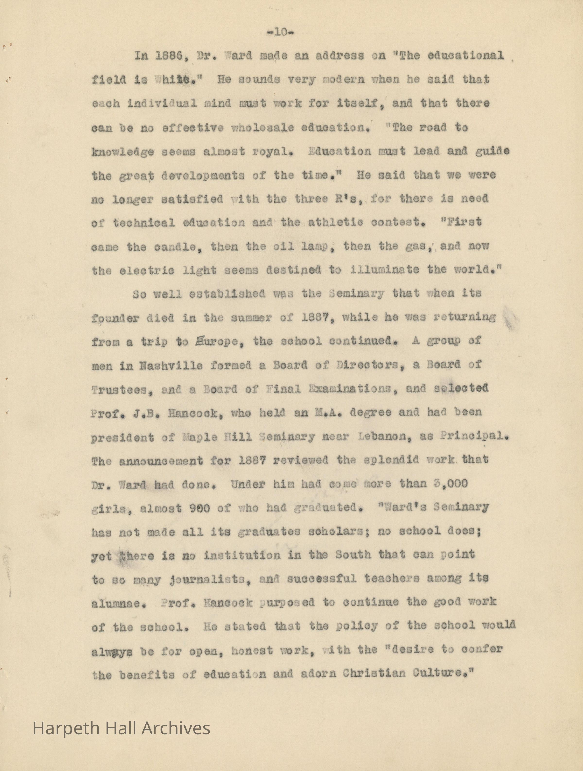 The historical sketch of Ward-Belmont School. The essay was to be completed by September 1st, 1935. The essay was submitted to the Southern Association of Colleges for Women.Collection