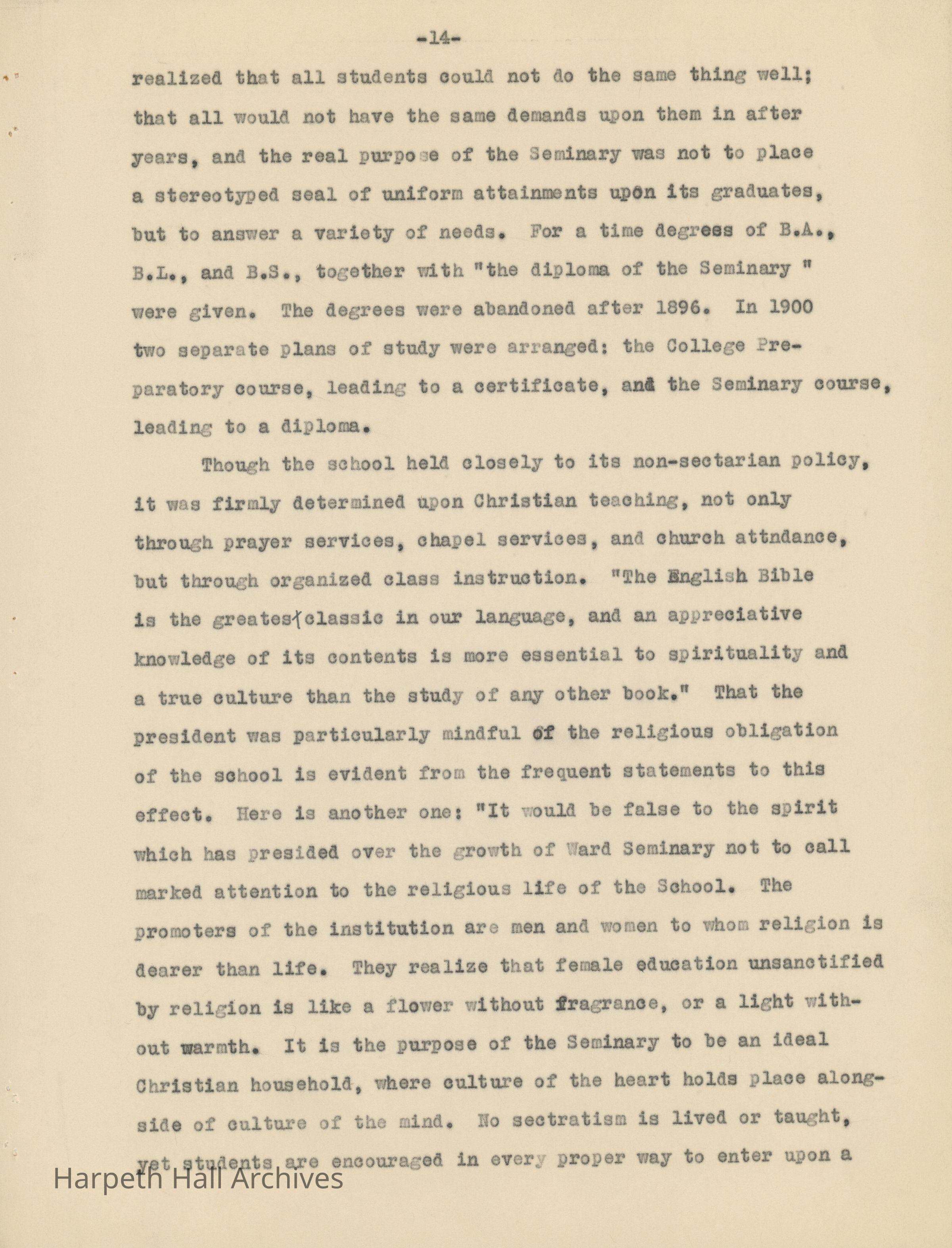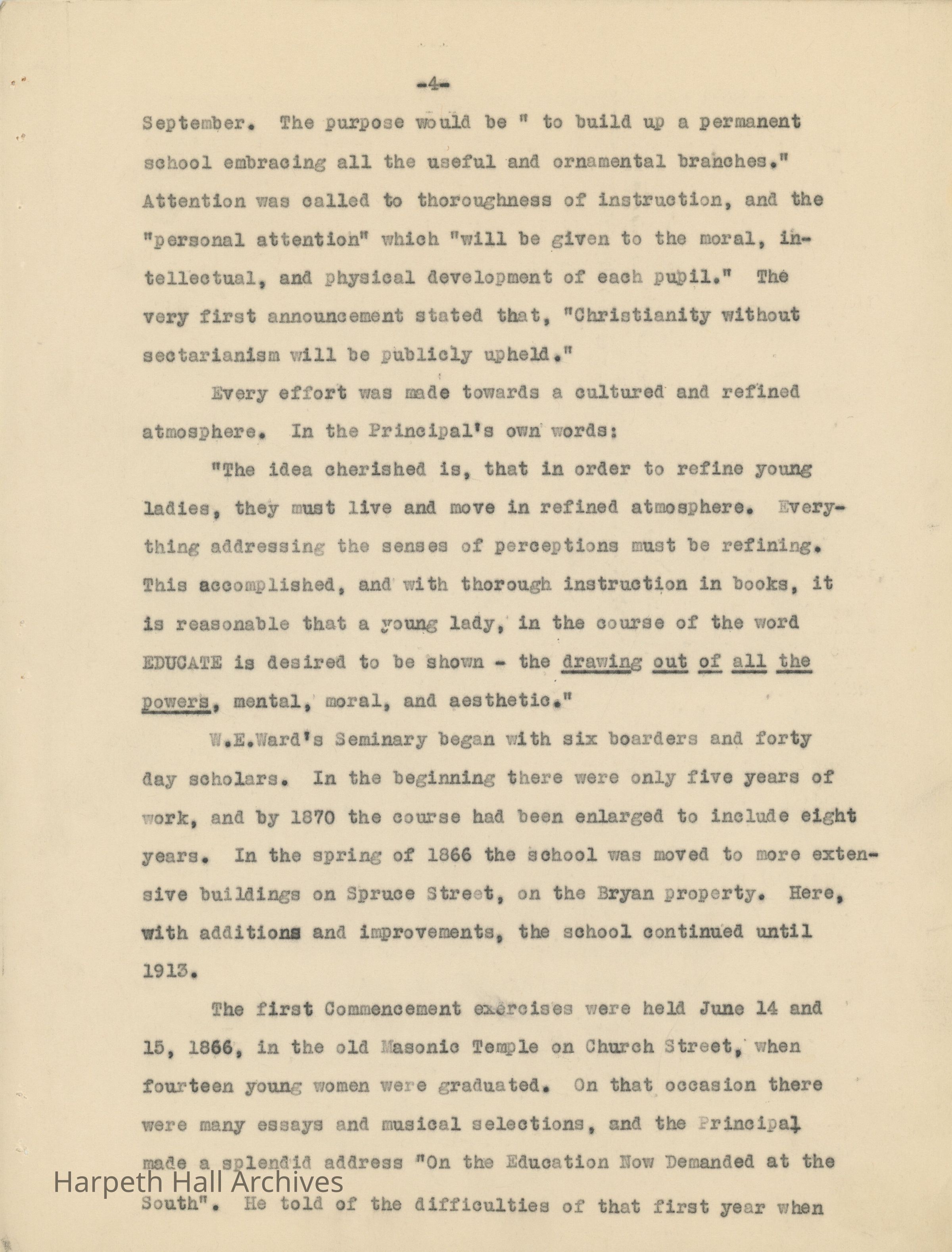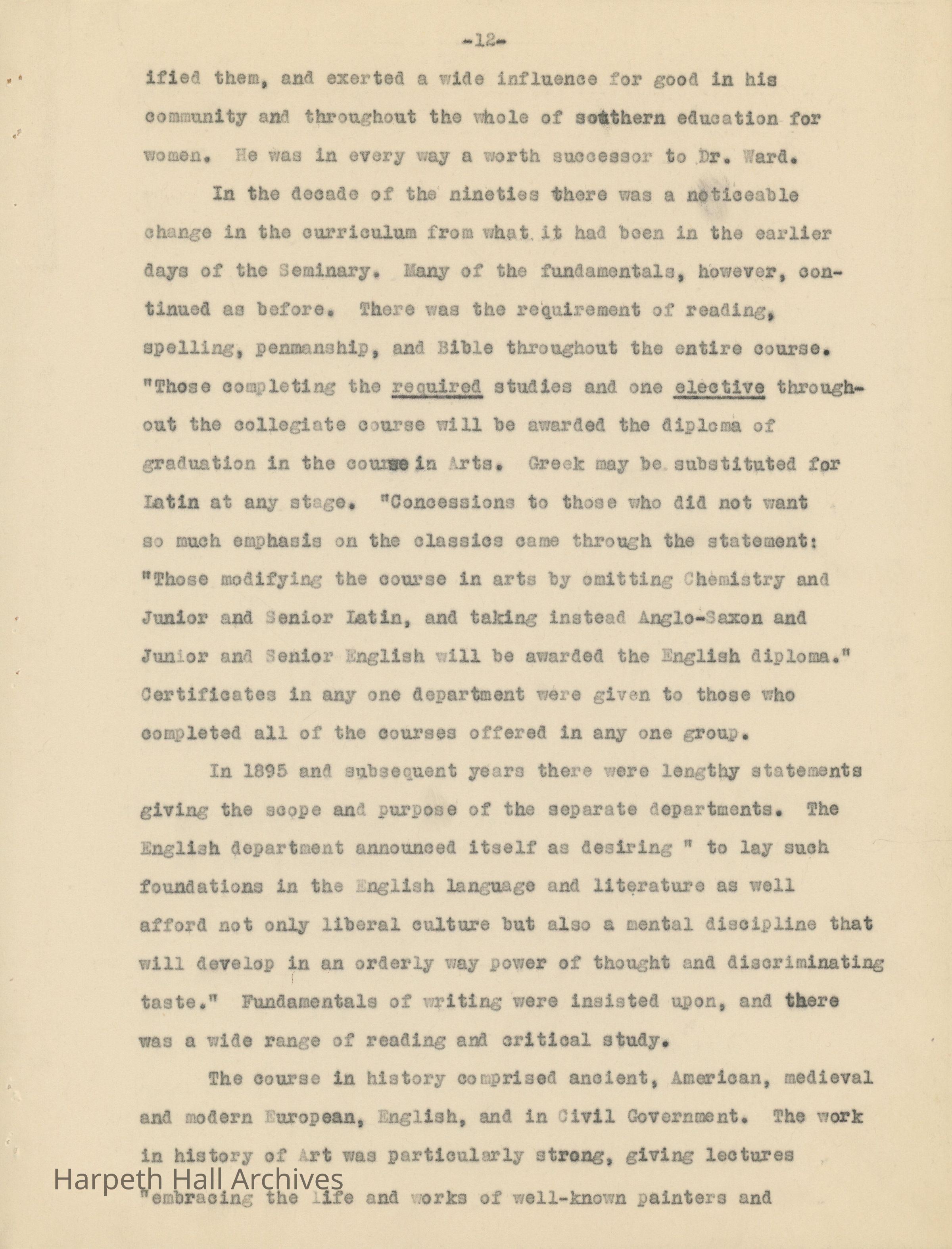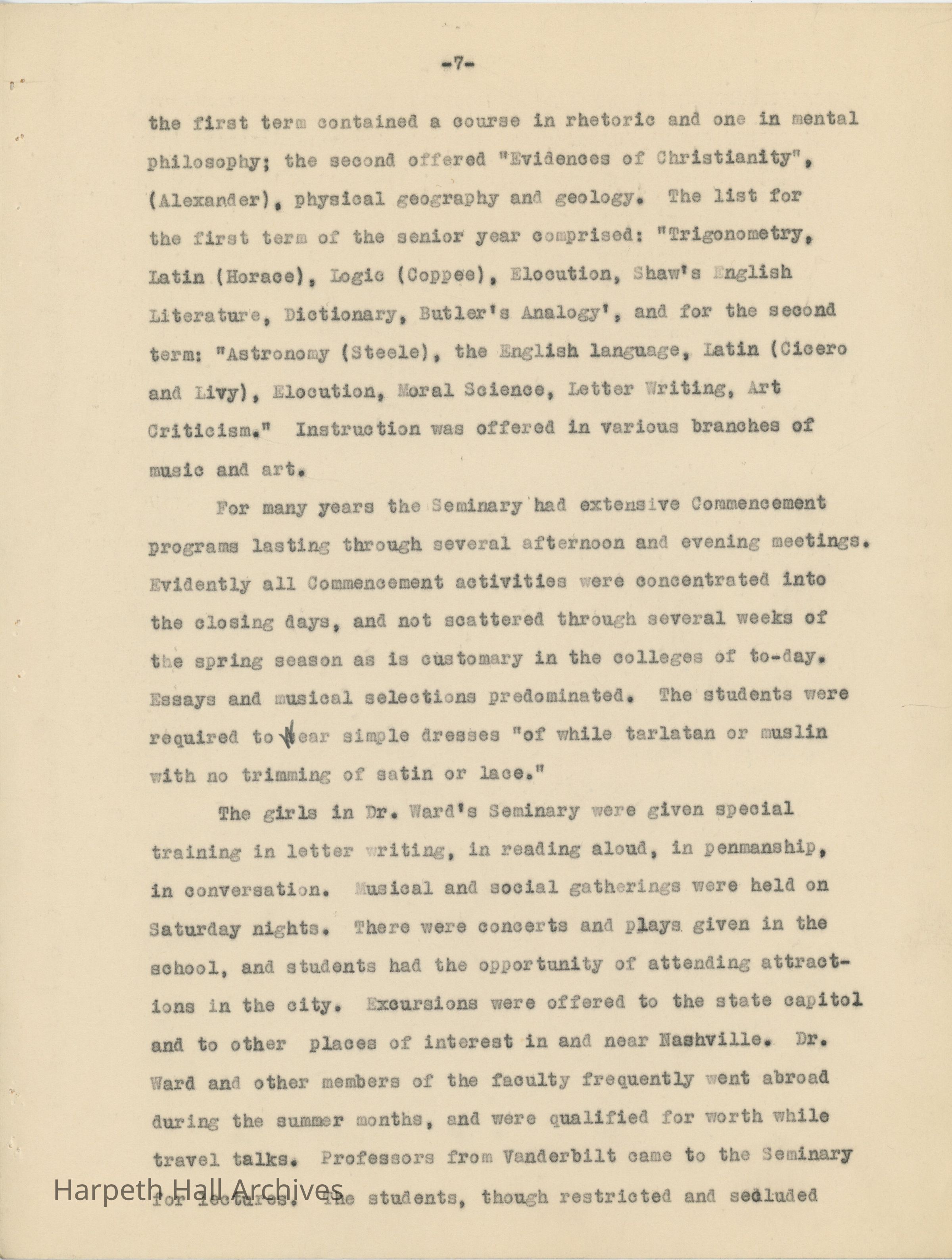 The historical sketch of Ward-Belmont School. The essay was to be completed by September 1st, 1935. The essay was submitted to the Southern Association of Colleges for Women.Collection