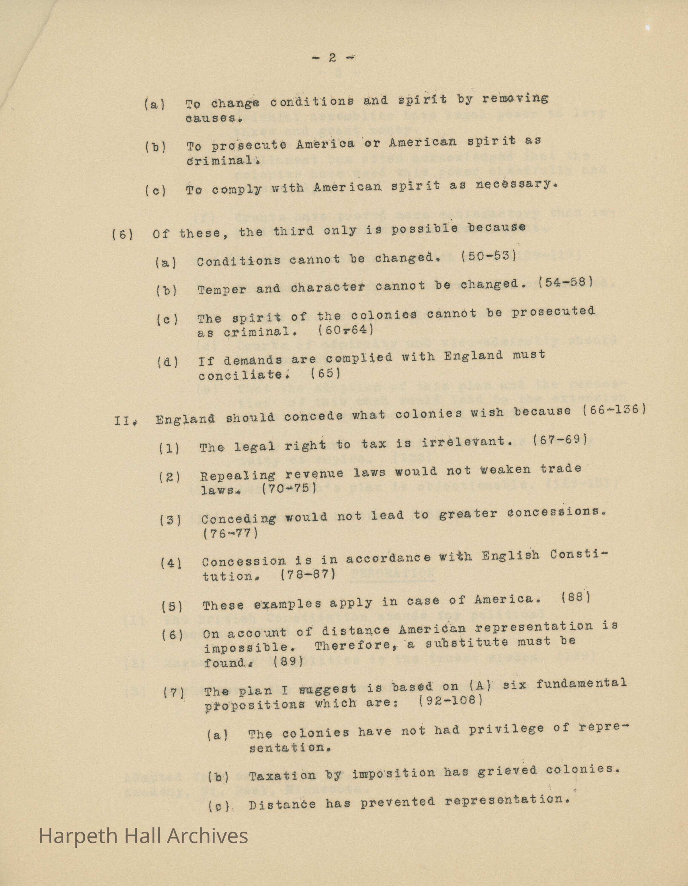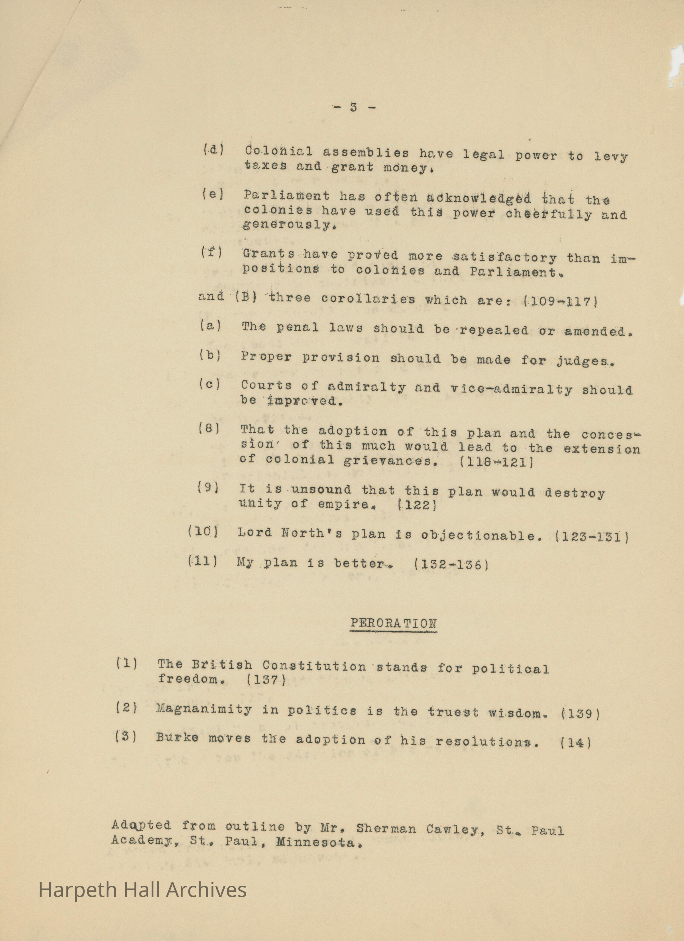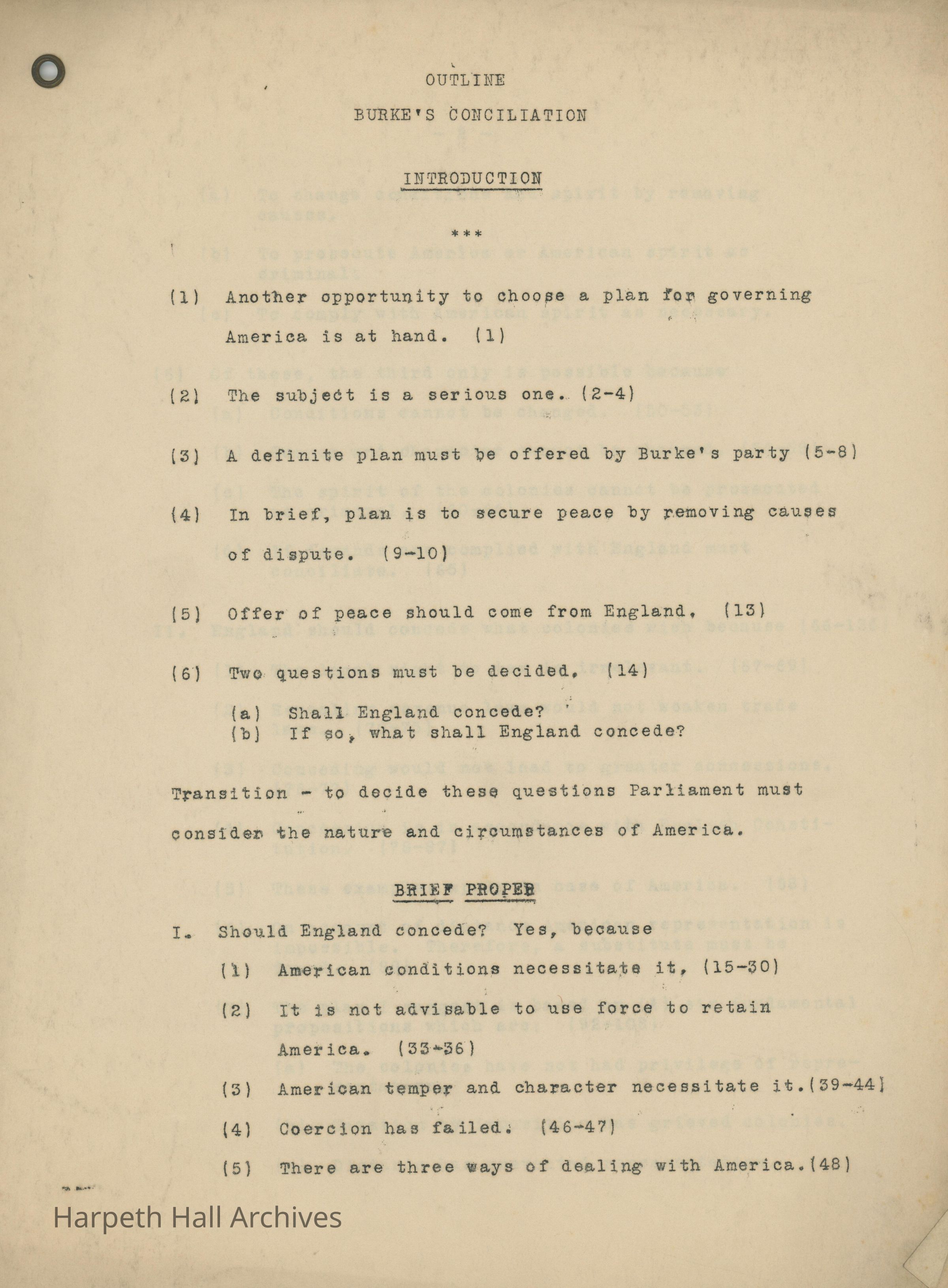 Notes taken on Burke's Conciliation in a Ward-Belmont class.