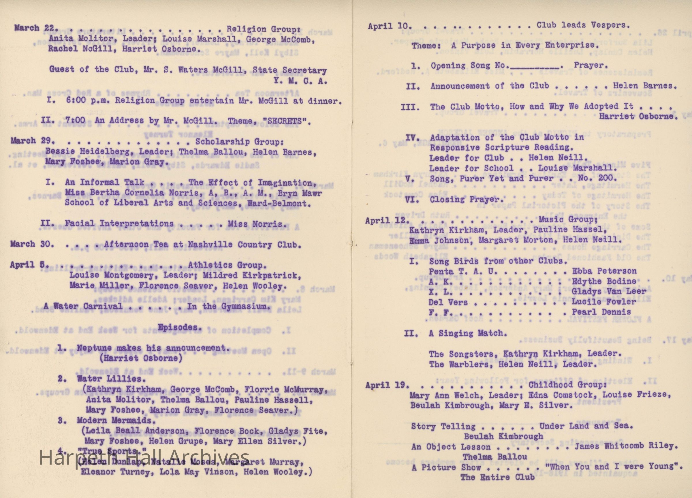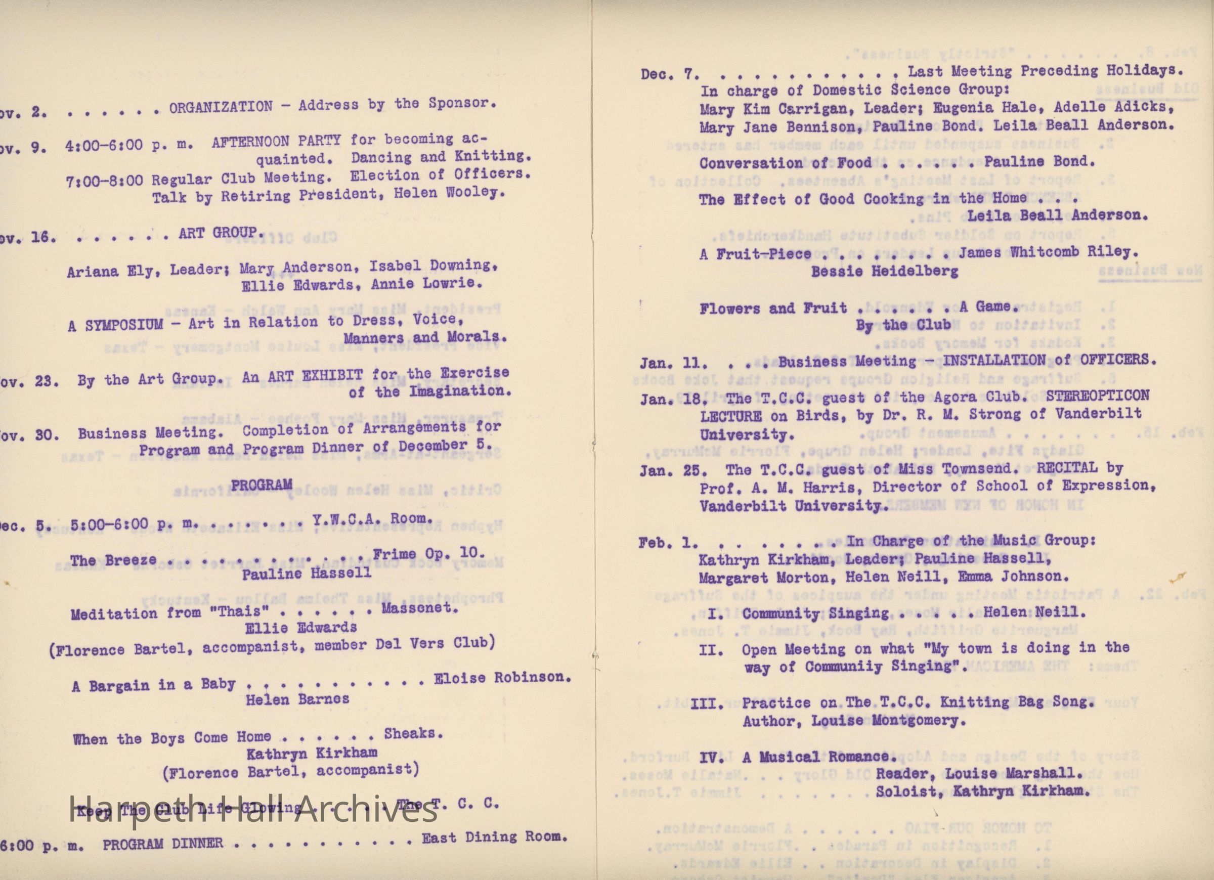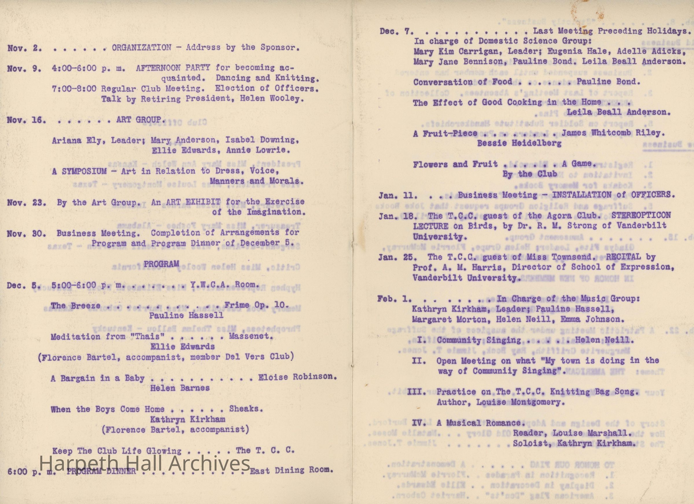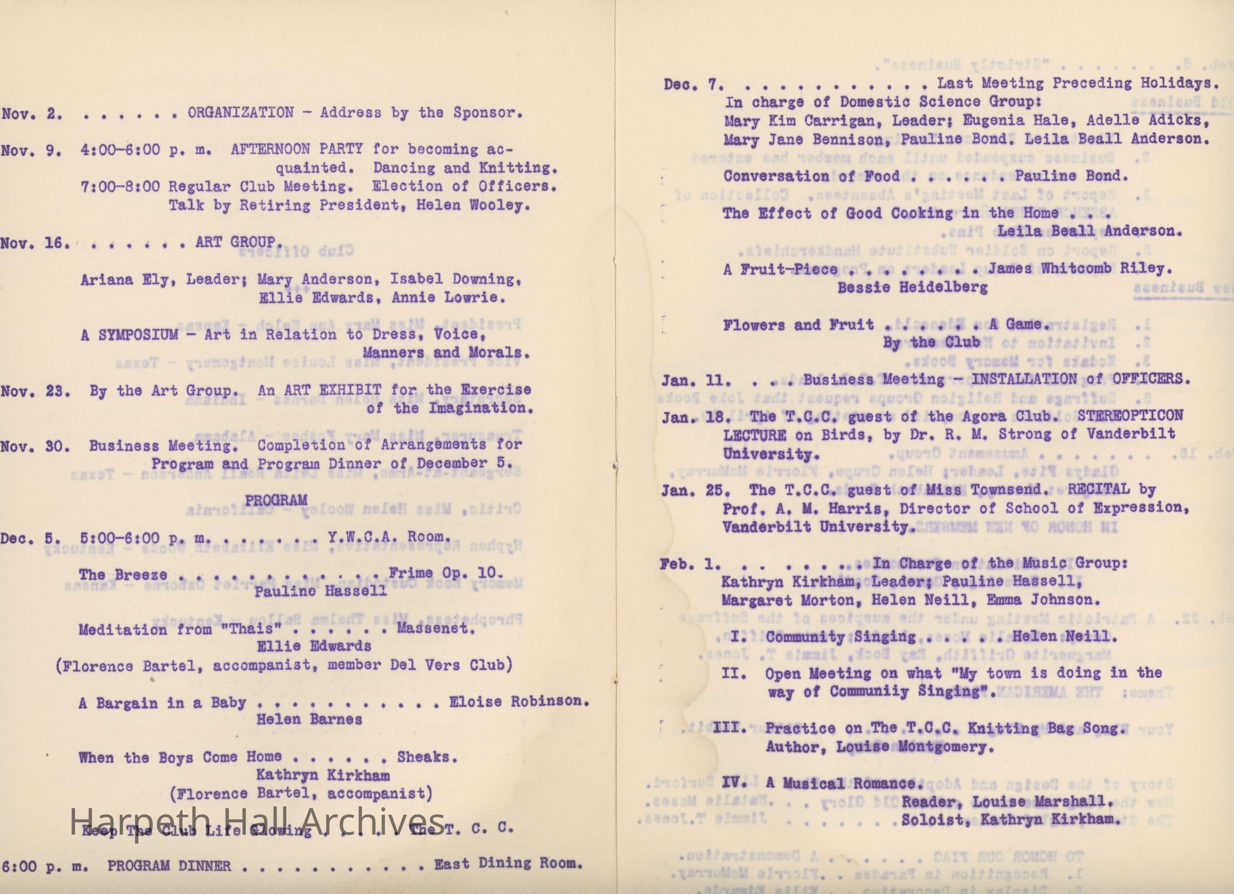 Ward-Belmont, Twentieth Century Club, 1917, 1918