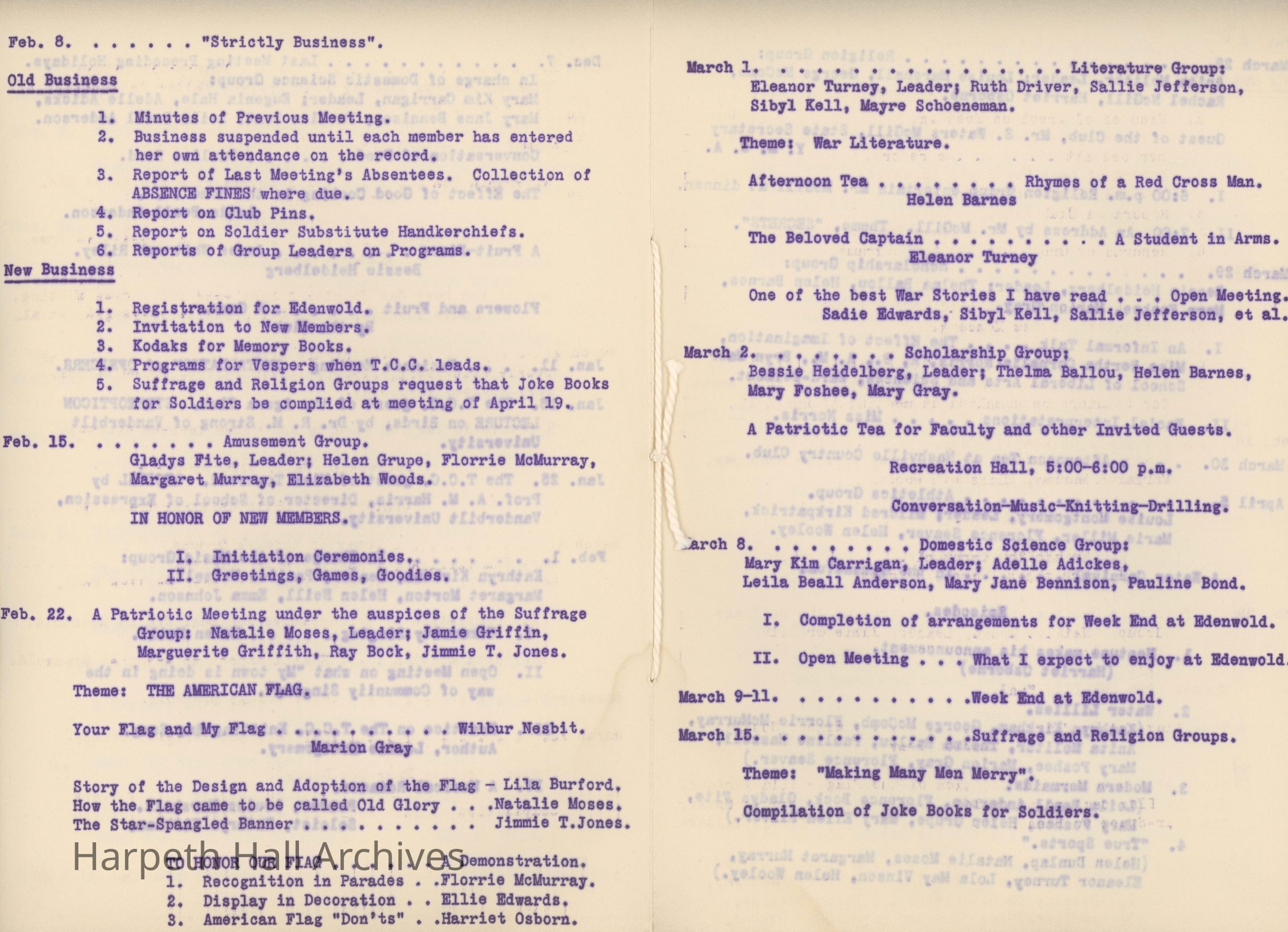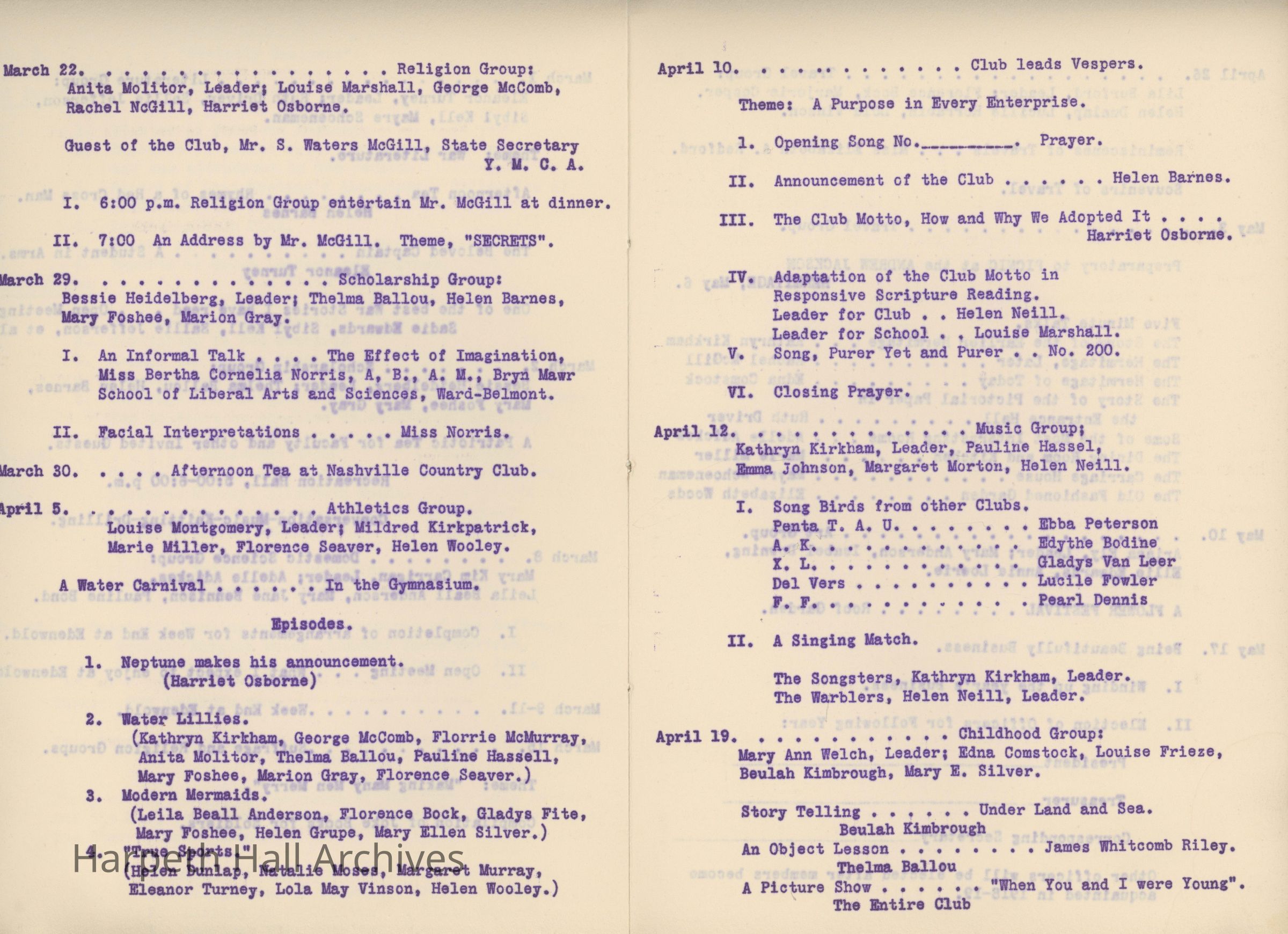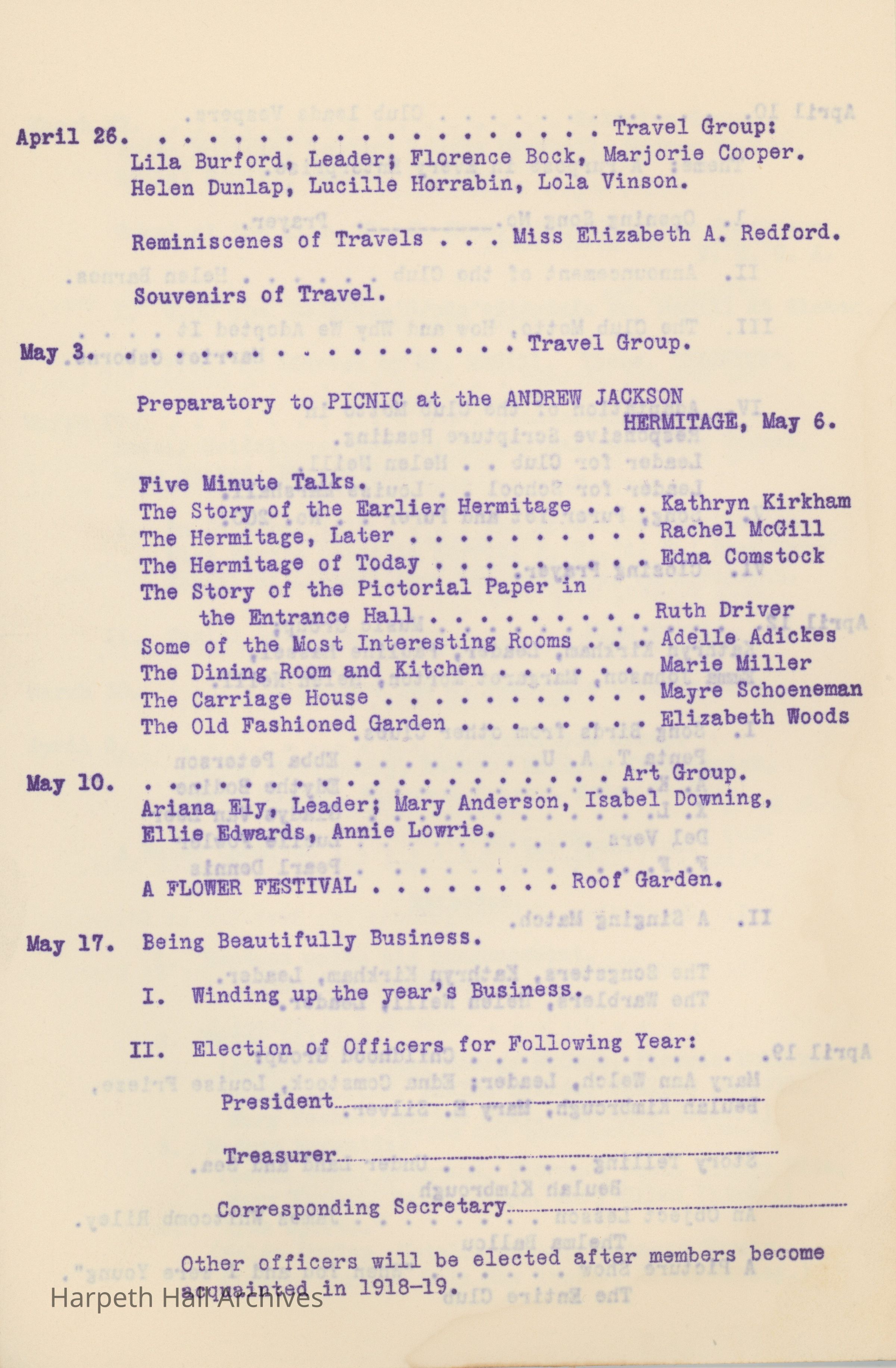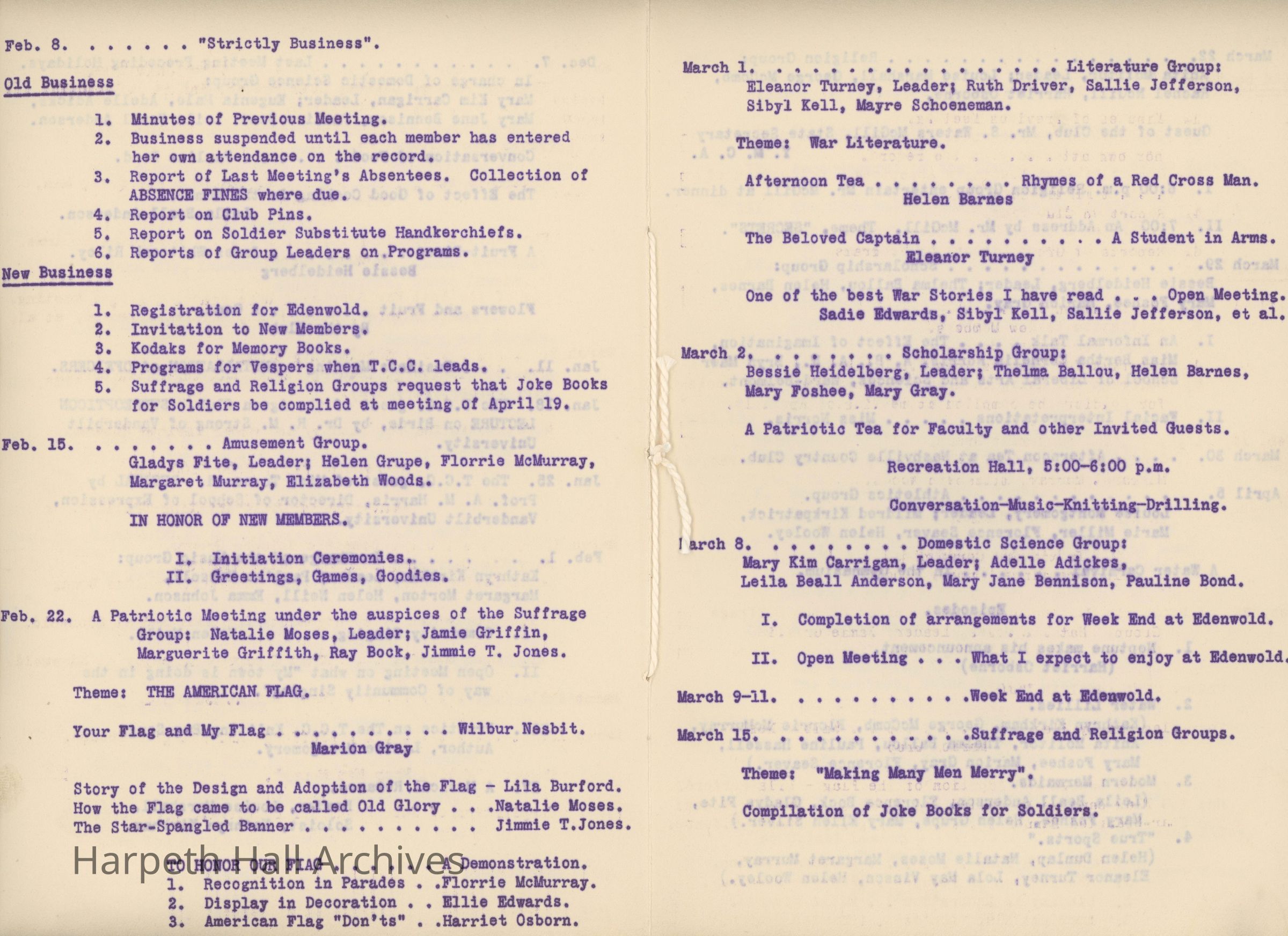 Ward-Belmont, Twentieth Century Club, 1917, 1918