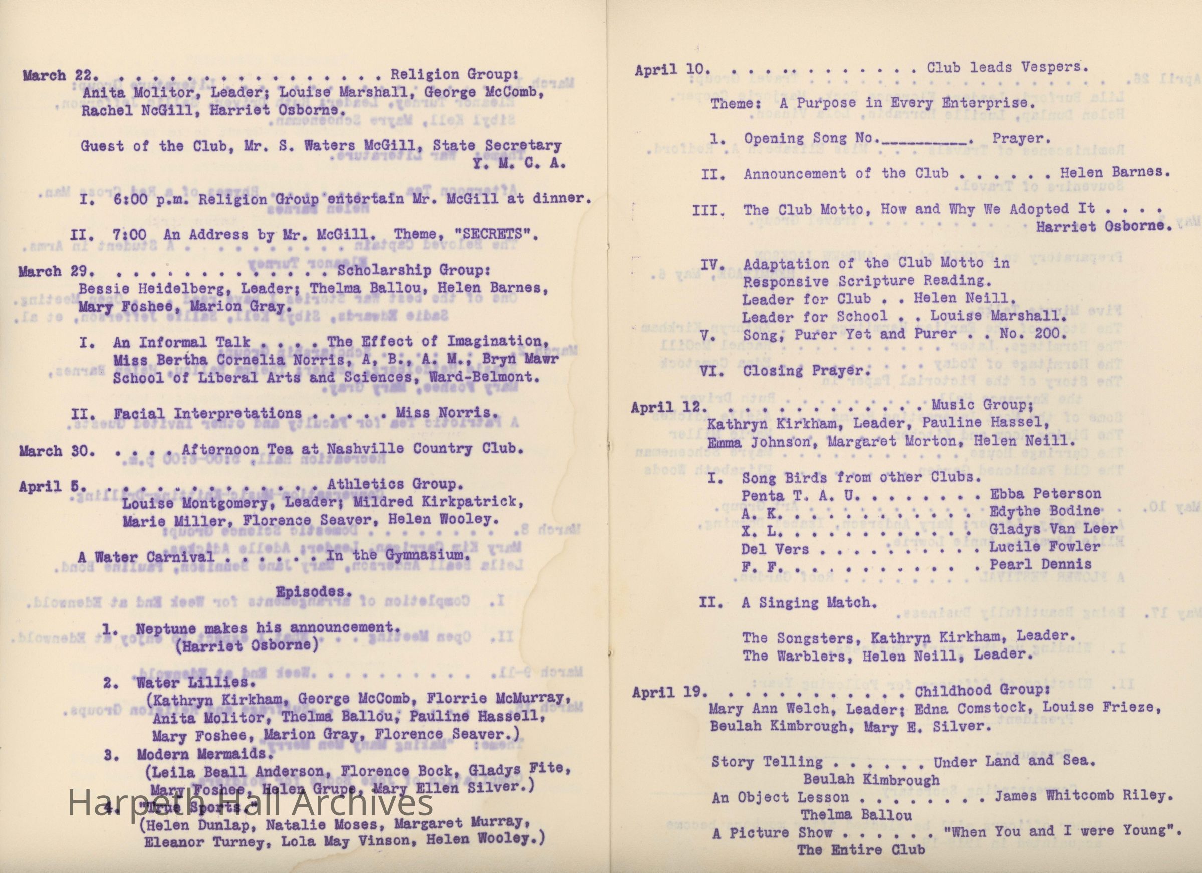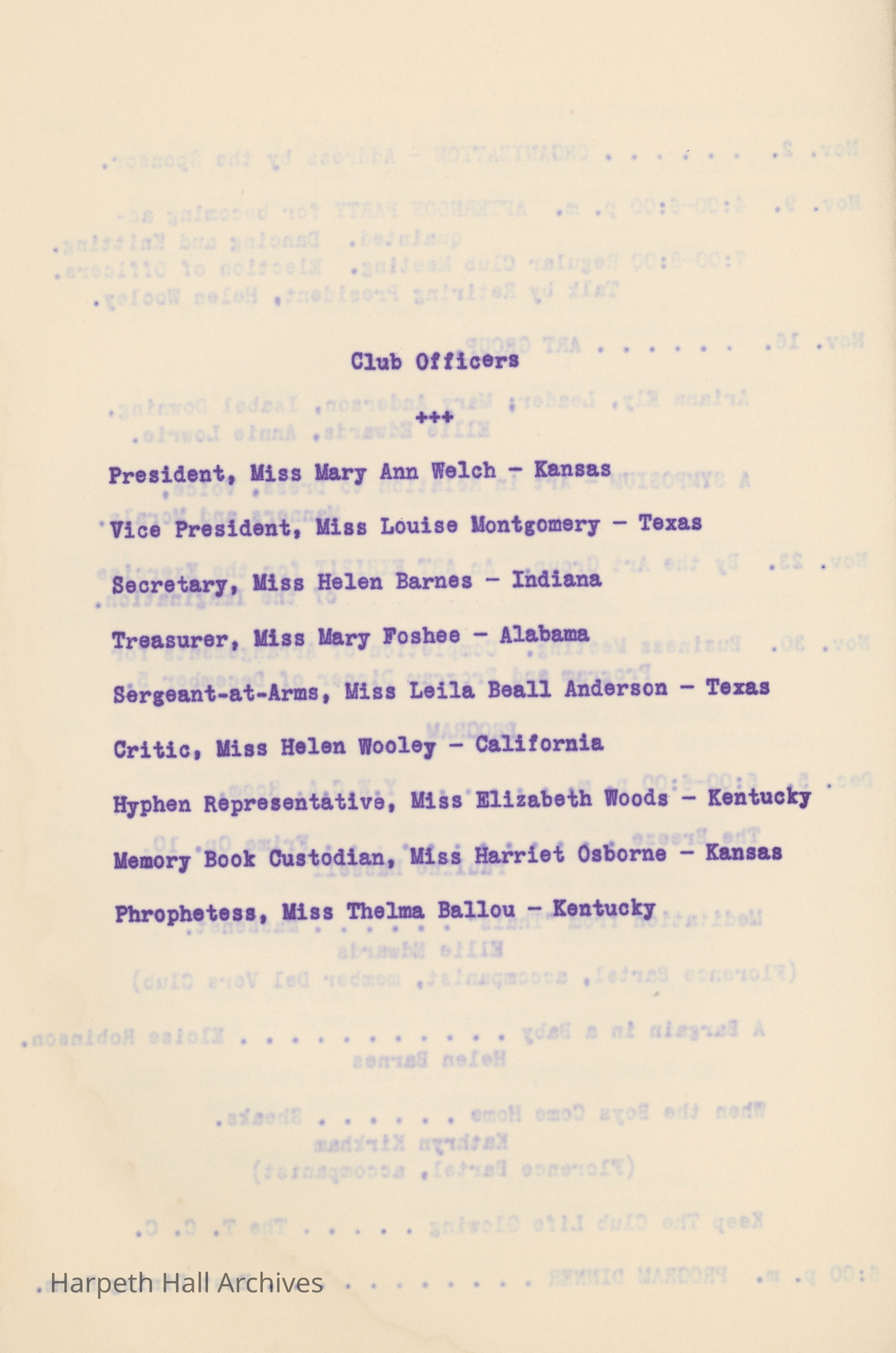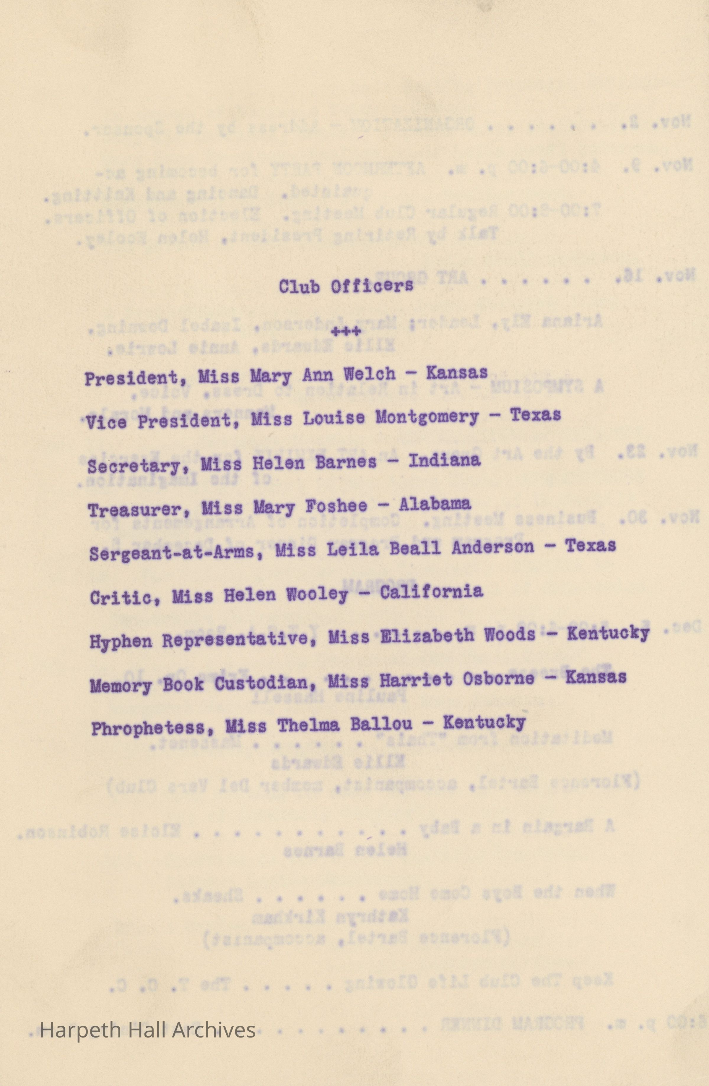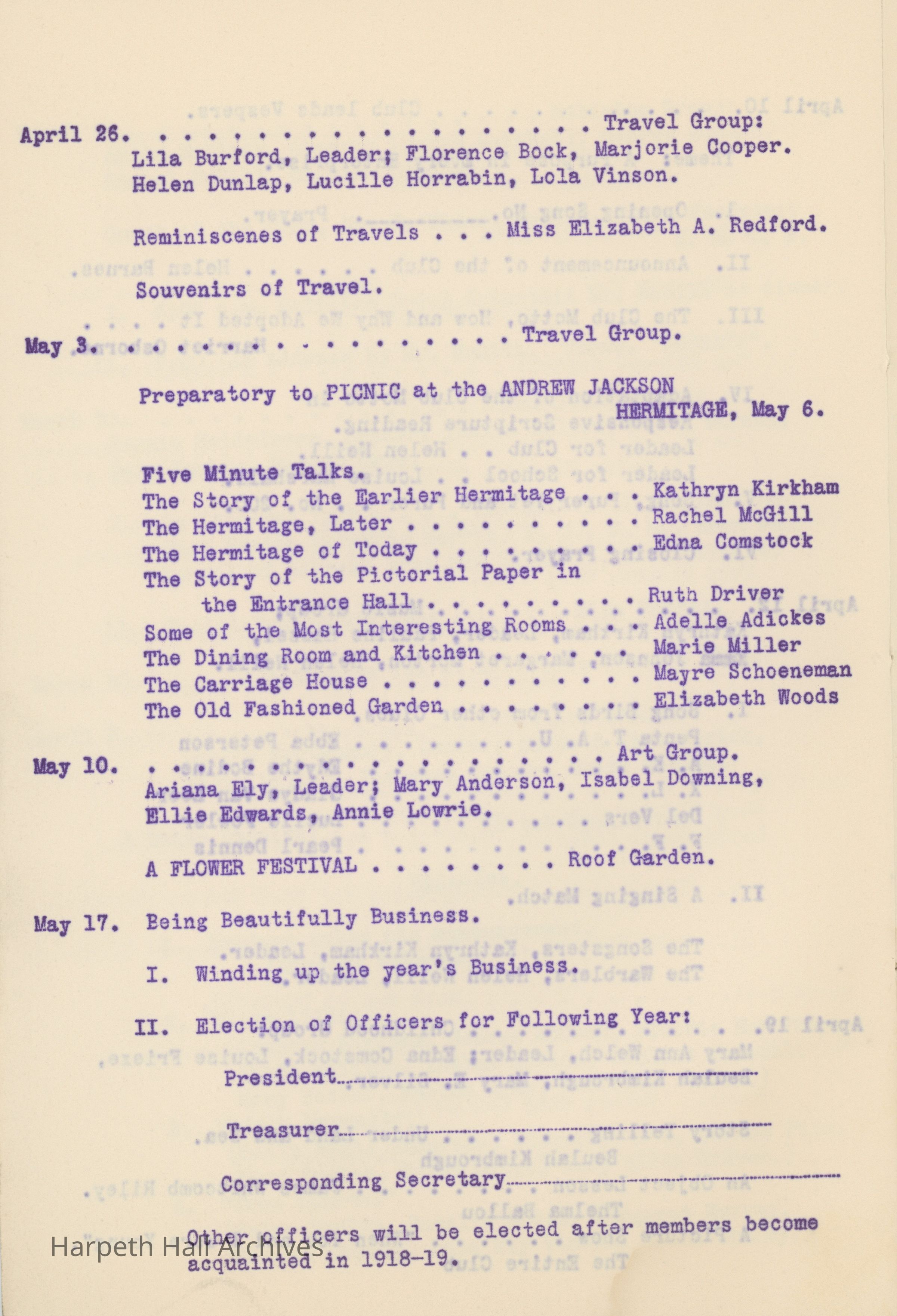 Ward-Belmont, Twentieth Century Club, 1917, 1918