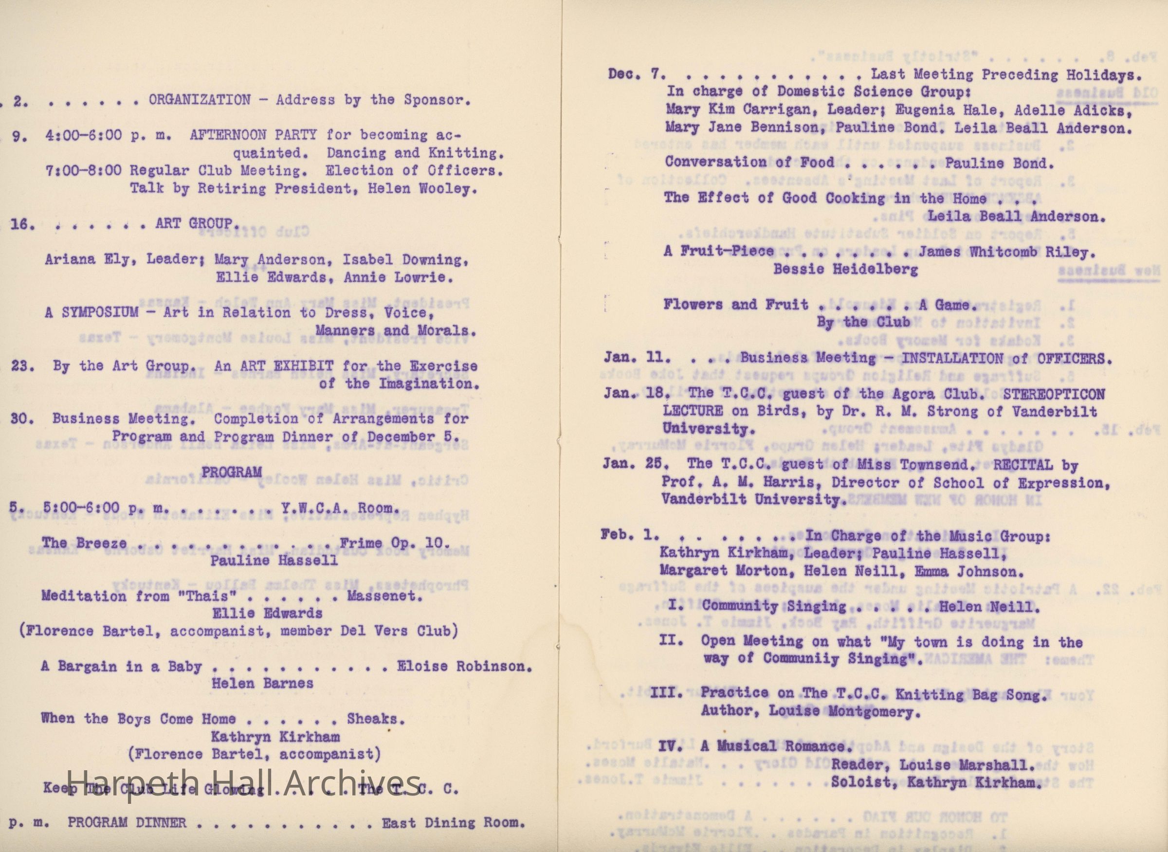 The Twentieth Century Club of Ward-Belmont - Programs by Club Groups 1917-1918Entry/Object ID