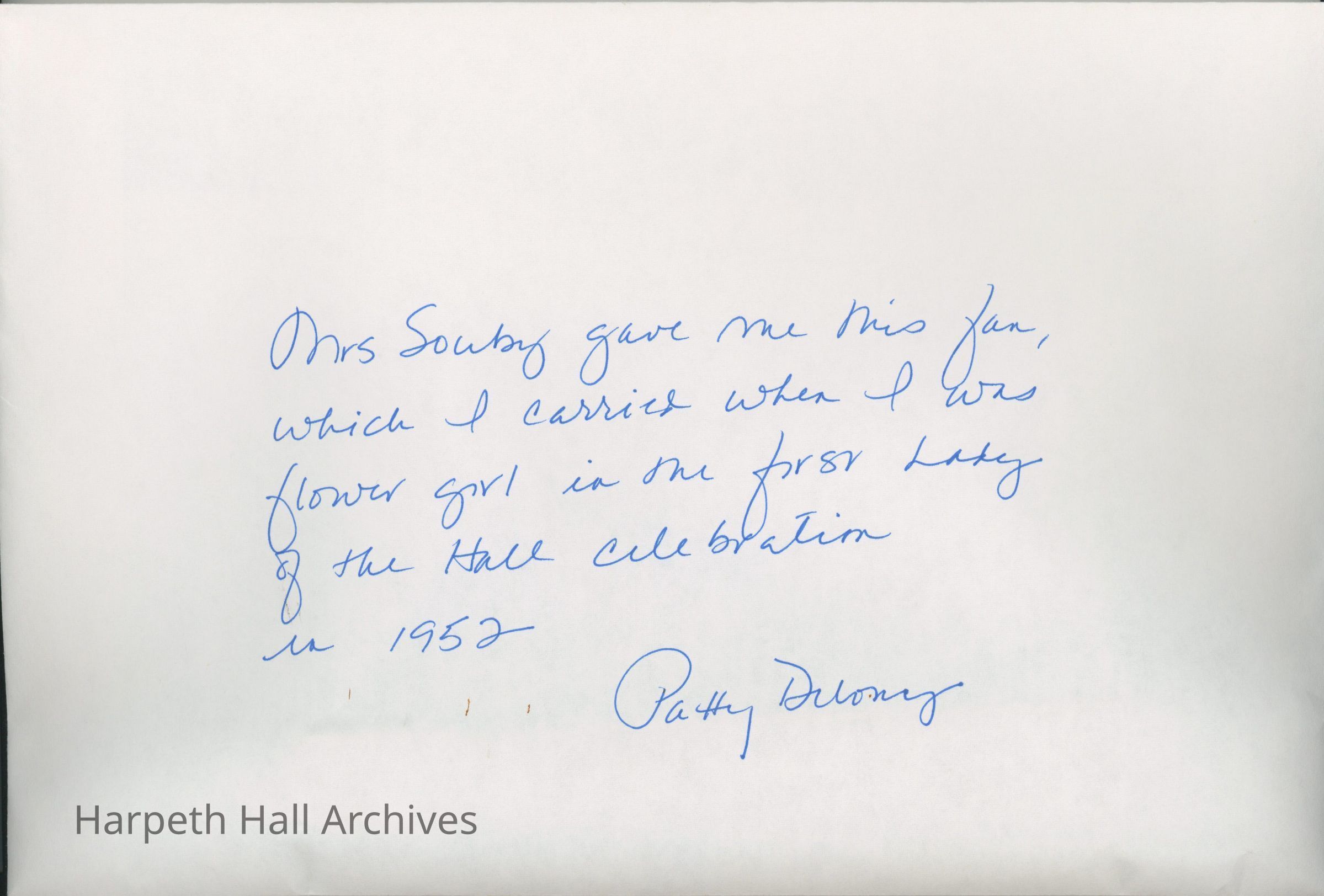 "Mrs. Souby gave me this fan, which I carried when I was flower girl in the first Lady of the Hall Celebration in 1952," Patty Delony.Collection