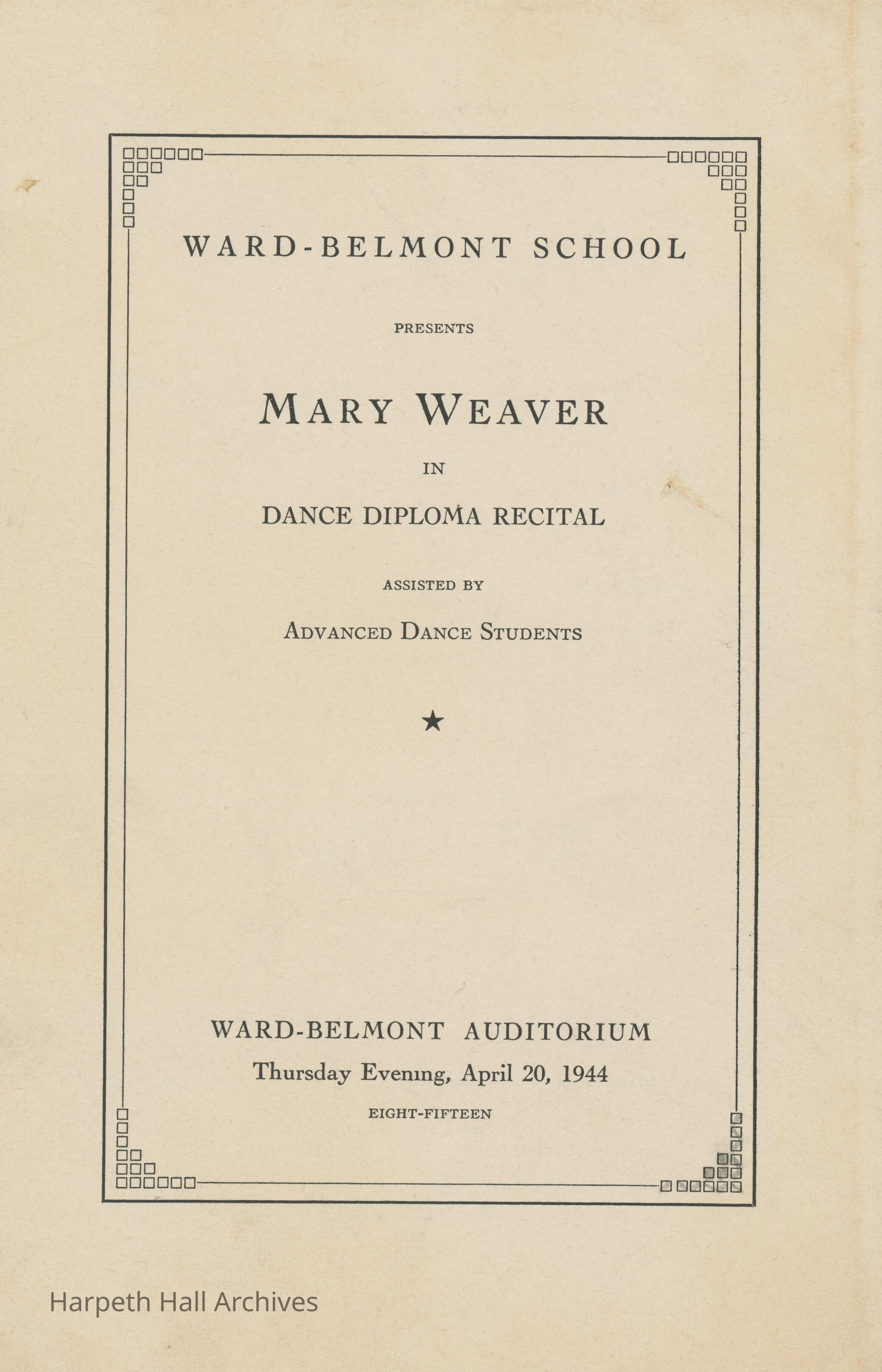 Mary Weaver 1944 Dance Diploma Recital Program (Ward-Belmont)Entry/Object ID