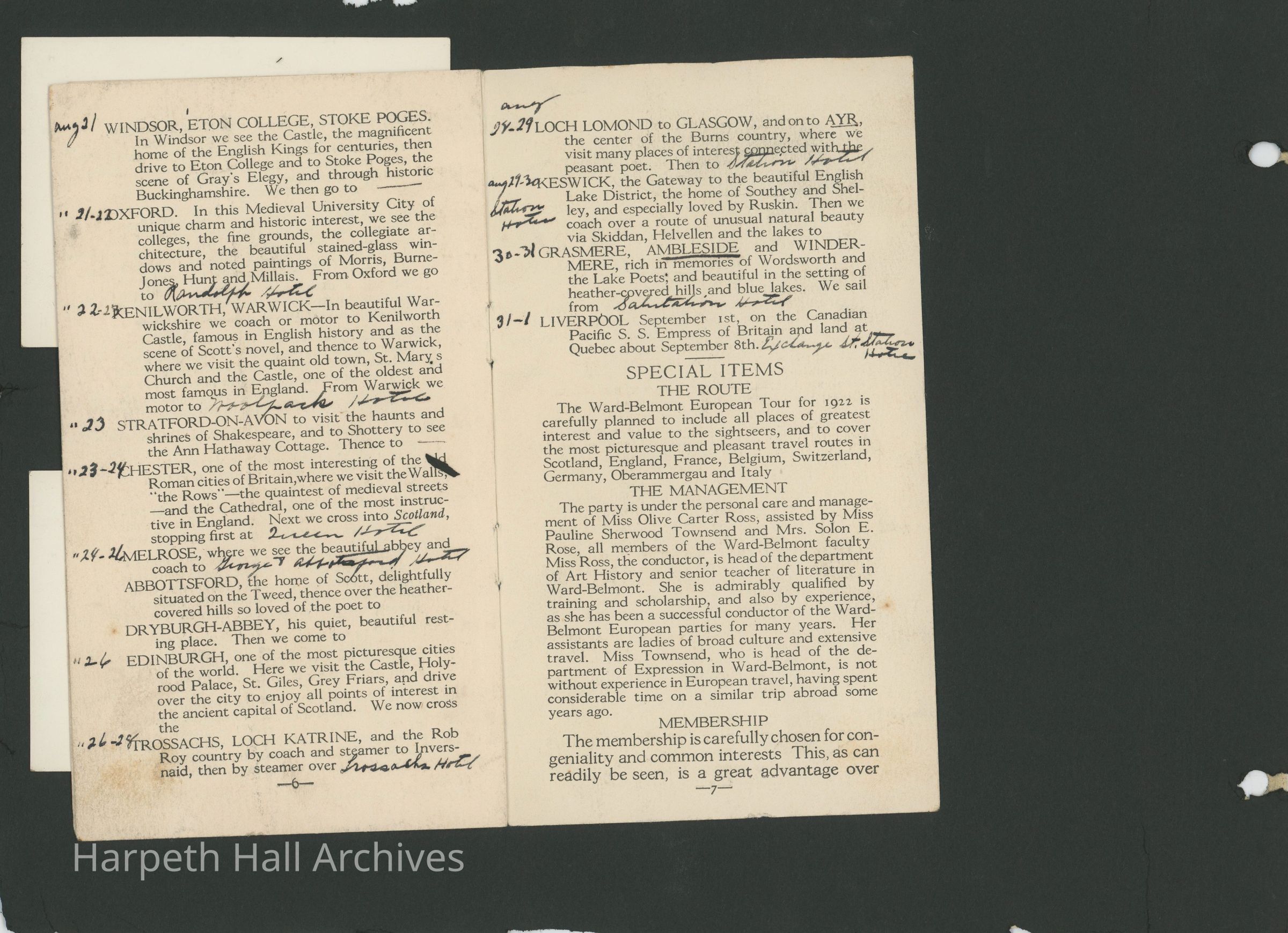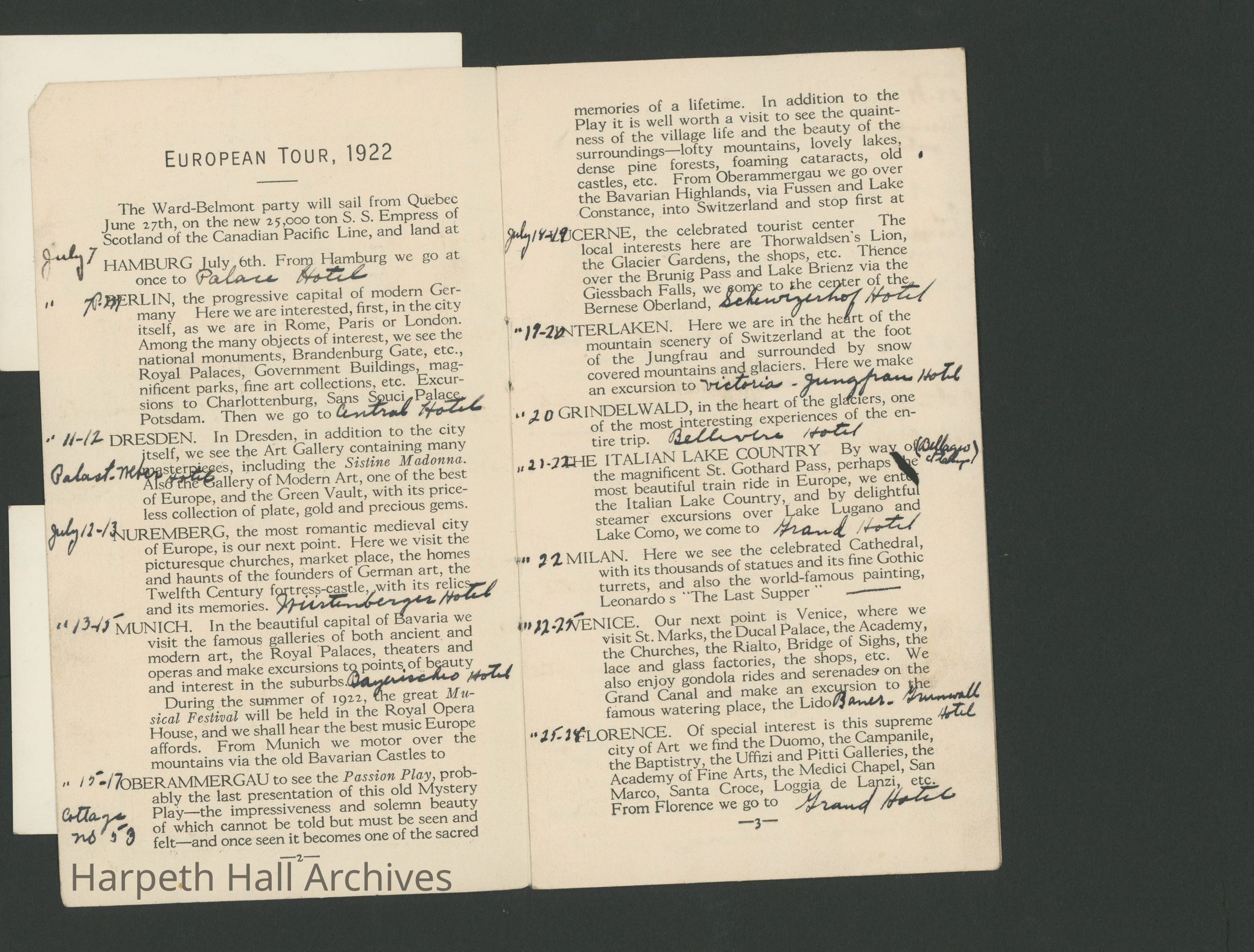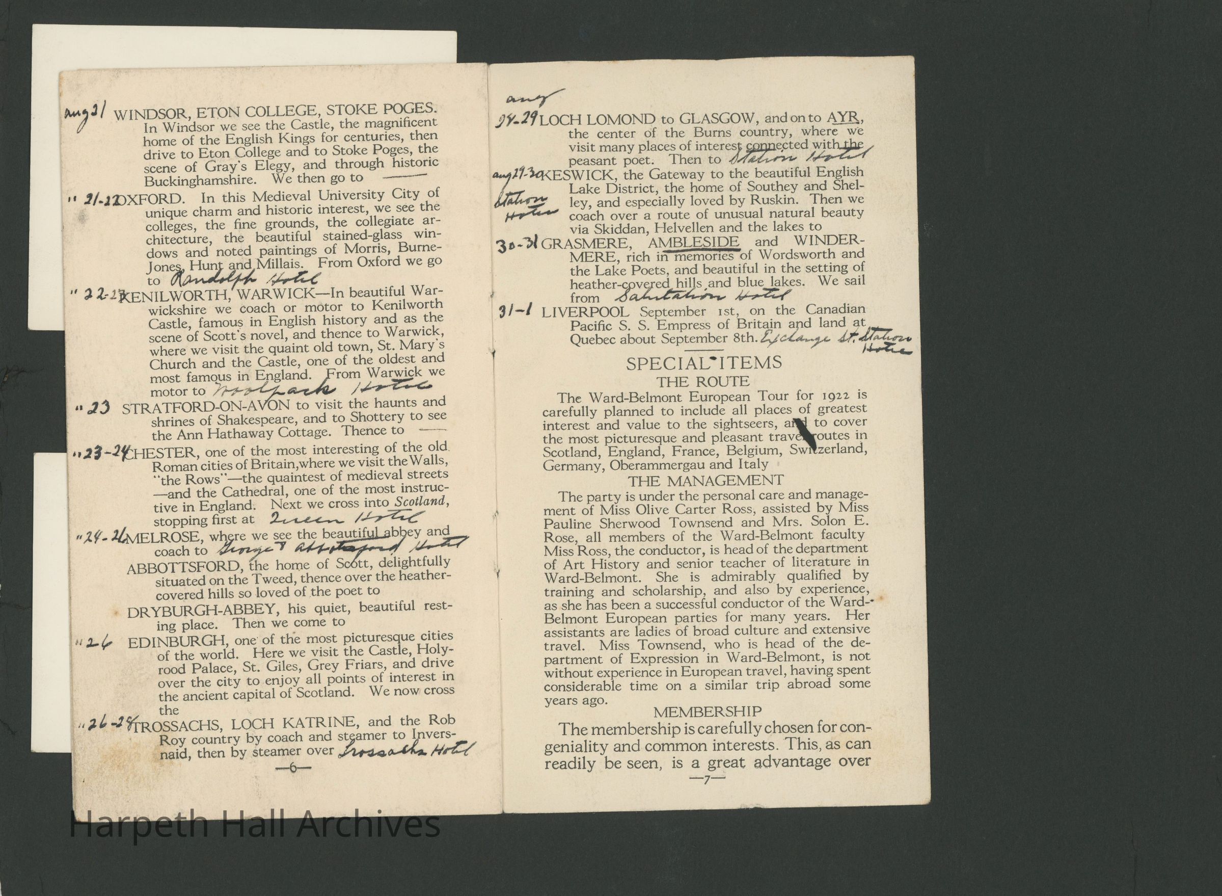Ward-Belmont 1922 European Tour of Scotland, England, Belgium, France, Switzerland, Germany, Oberammersau, ItalyCollection