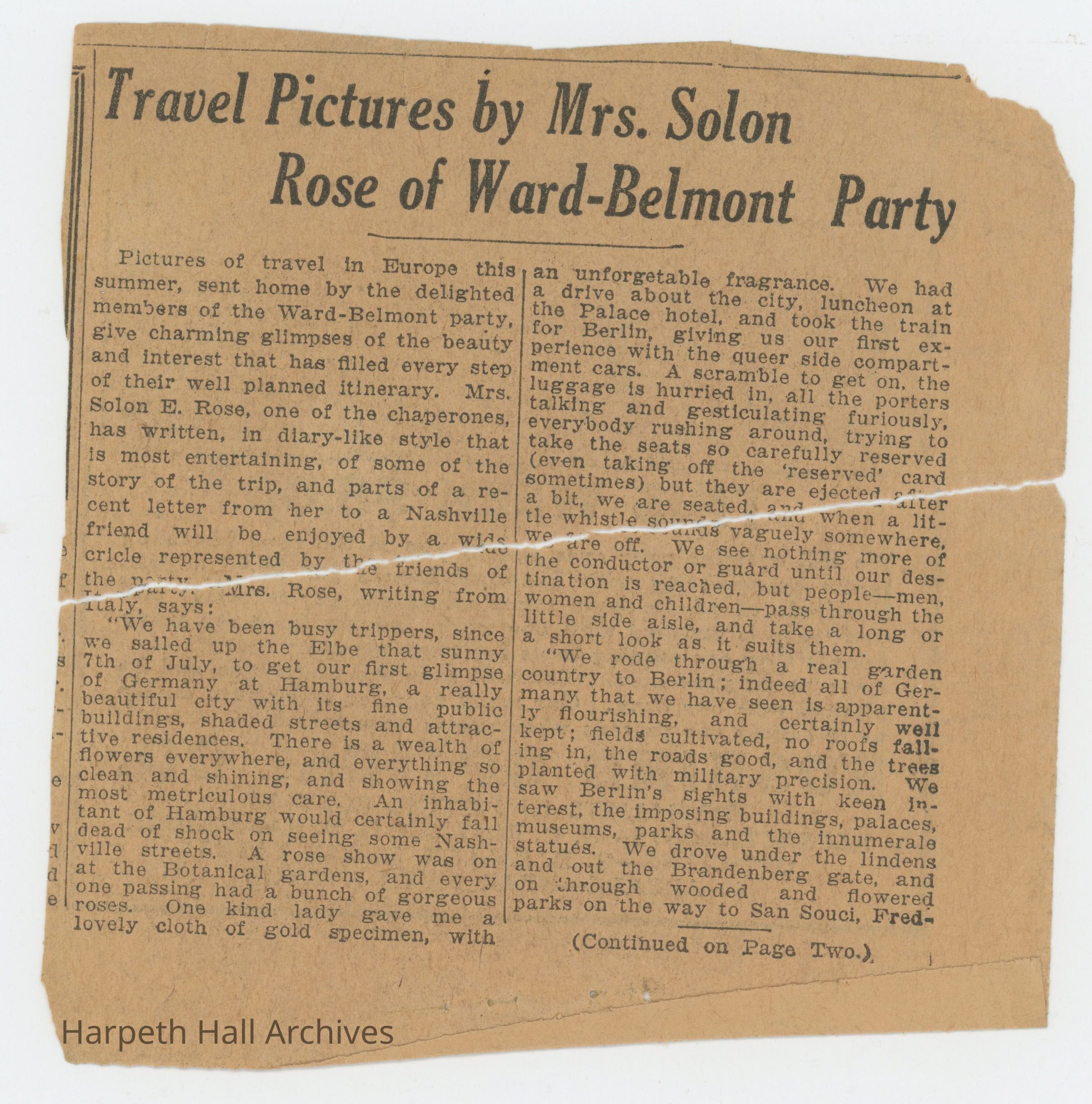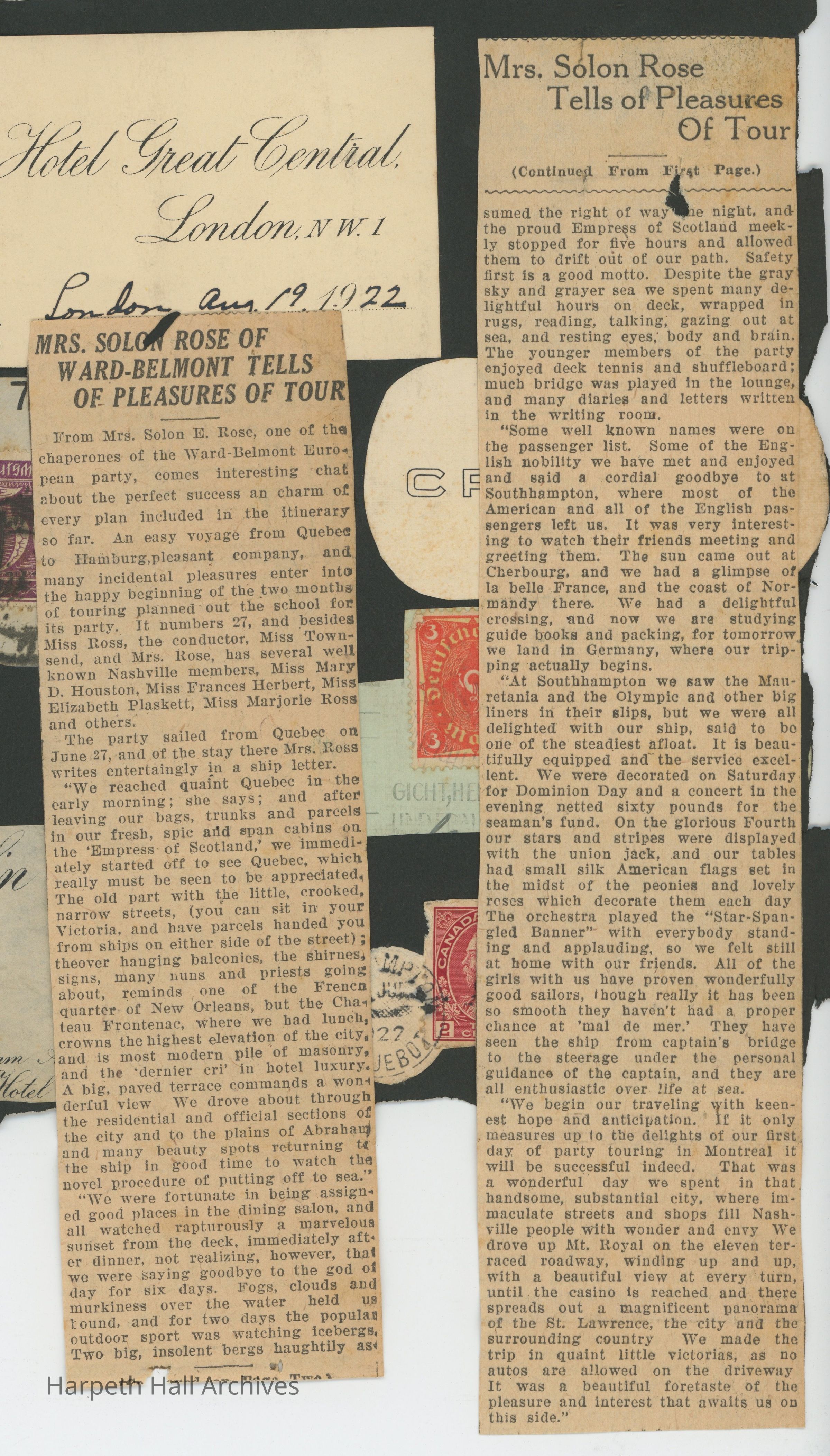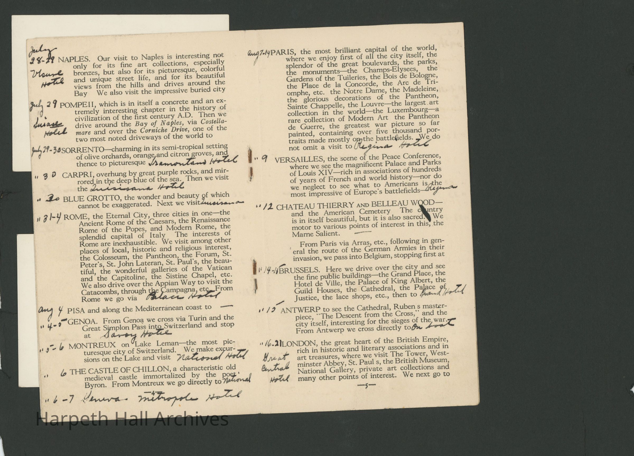 Ward-Belmont 1922 European Tour of Scotland, England, Belgium, France, Switzerland, Germany, Oberammersau, ItalyCollection